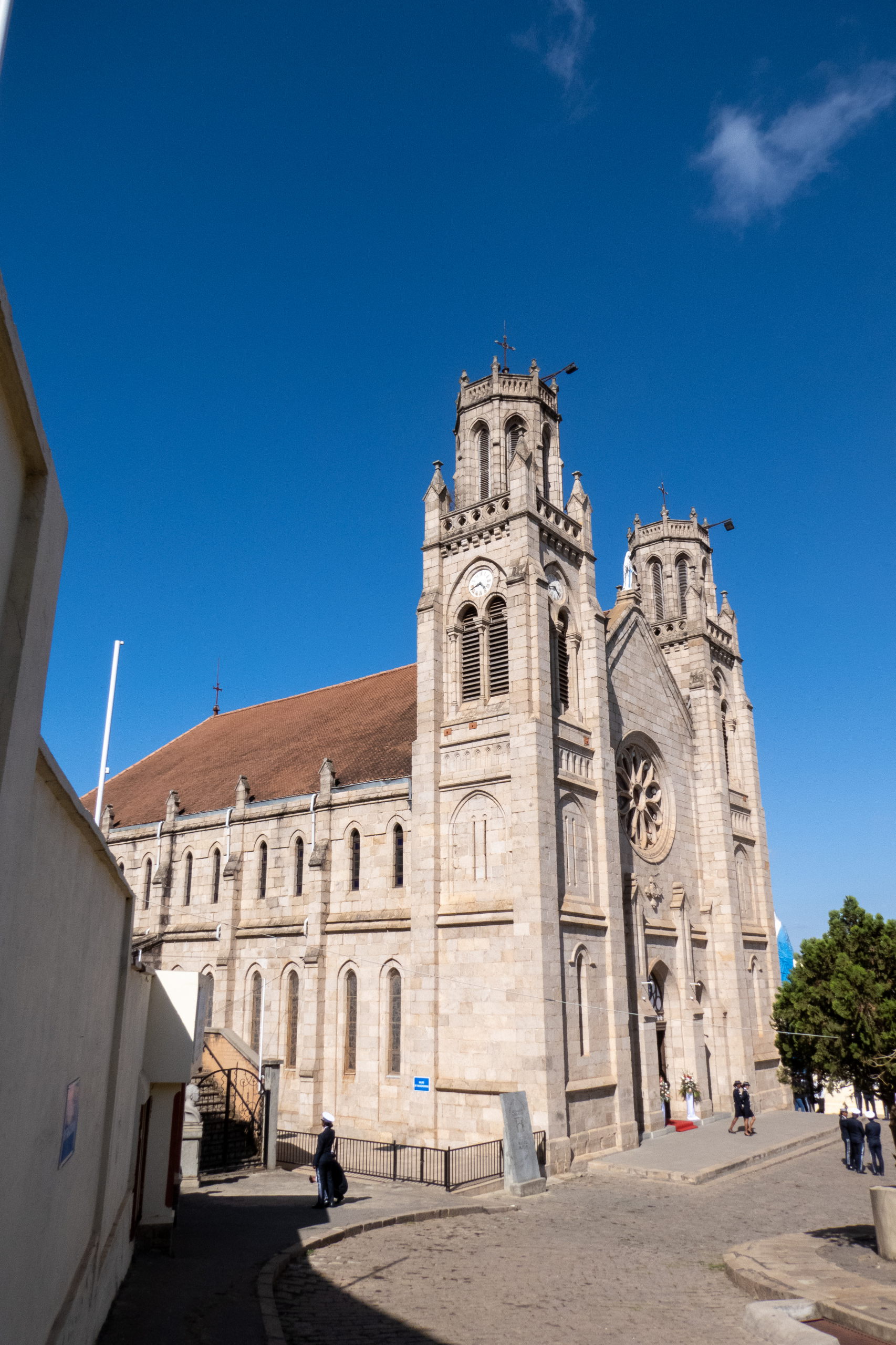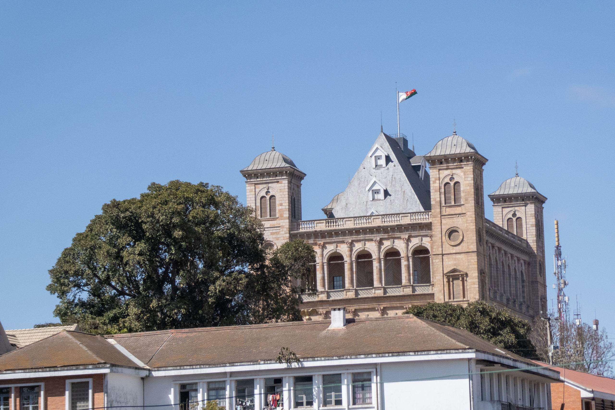 Der letzte Tag in Madagaskar ist angebrochen, denn heute geht es weiter nach Malaysia. Aber zuerst starte ich mit meiner gestern ausgearbeiteten, kleinen Runde zu den wichtigsten Gebäuden der Stadt. Ich gehe den Analamanga, den blauen Hügel, hoch, wo mir einiges an Polizeiaufgebot entgegen kommt. In der Cathedrale catholique d Andohalo findet eine Zeremonie der Polizei statt und auf Anfrage ist das Fotografieren heute nicht erlaubt. Na toll. Ich gehe ein kleines Stück weiter und Klick. No risk, no fun. Der Königspalast Rova d Antananarivo ist ebenfalls geschlossen, da er immer noch renoviert wird. Immerhin ist die Bude 1995 abgebrannt. Ein Mann, der an der Palastmauer sitzt, zeigt mir gegen ein kleines Trinkgeld die Spots, von denen man den Palast dennoch fotografieren kann. Auch das Museum Andafiavaratra Palace ist geschlossen. Hmmm, ziemlich schlechte Ausbeute.