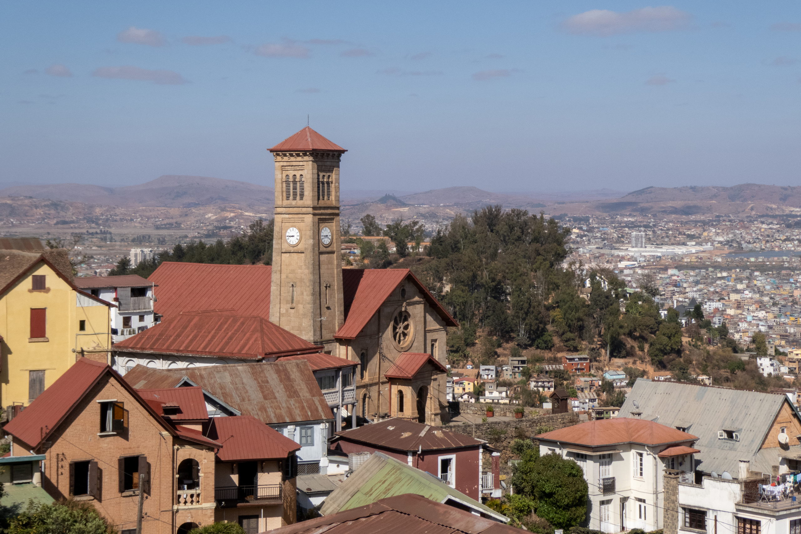 Am Rückweg kaufe ich gebackene Bananen und verspeise gleich eine. Mjamjam. Ich komme an der Kirche Ekar Faravohitra vorbei und gehe zum Hotel vom letzten Mal, um meinen großen Rucksack abzuholen. Zwar habe ich schon die halbe Stadt leer gefuttert, aber ein wenig fürs Abendessen muss noch sein. Jetzt noch schnell Bari Bescheid geben, dass ich morgen im anderen Hotel abzuholen bin und schon kann der Video-Call mit meinen Eltern losgehen. Nachdem ich das Administrative für die Einreise nach Neuseeland erledigt habe, erkundige ich mich bei Ute, der Krankenschwester meines Vertrauens, ob tatsächlich weitere Impfungen notwendig sind, oder ich mir den Heckmeck sparen kann. Ich nutze das gute Internet und erledige auch noch einige andere Dinge. Super, heute ist gut was weiter gegangen.
