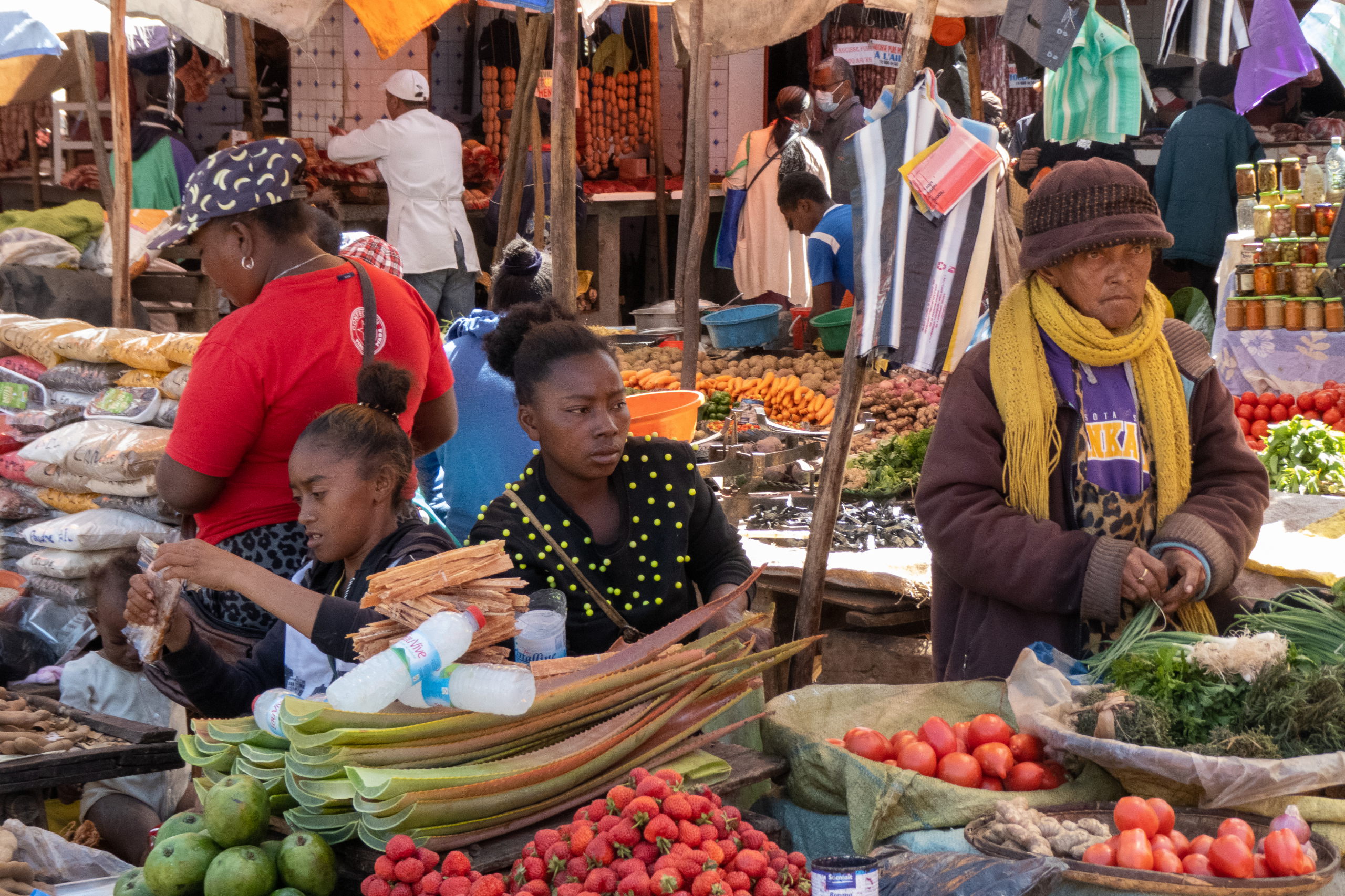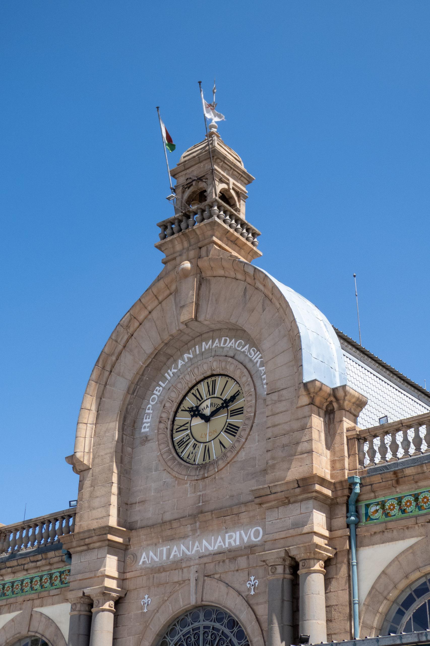 Na dann gehe ich eben zum Analakely Market und weiter zum alten Bahnhof. Hier ist eine Art Markt mit hochwertigen Produkten und ich esse Kebap und Schokokuchen. Zurück im Hotel gehe ich duschen, schamponiere mich ein und dann … kein Wasser mehr. Grrr. Ich plärre einmal quer durchs Hotel und es kommt jemand, der einem Kanister Wasser bringt. Tja und jetzt? Er bringt einen riesigen Kübel. Tja und jetzt? Er bringt eine Kaffeetasse. Ok, dann eben mit dieser. Bari ist inzwischen auch schon eingetroffen, um mich zum Flughafen zu bringen.