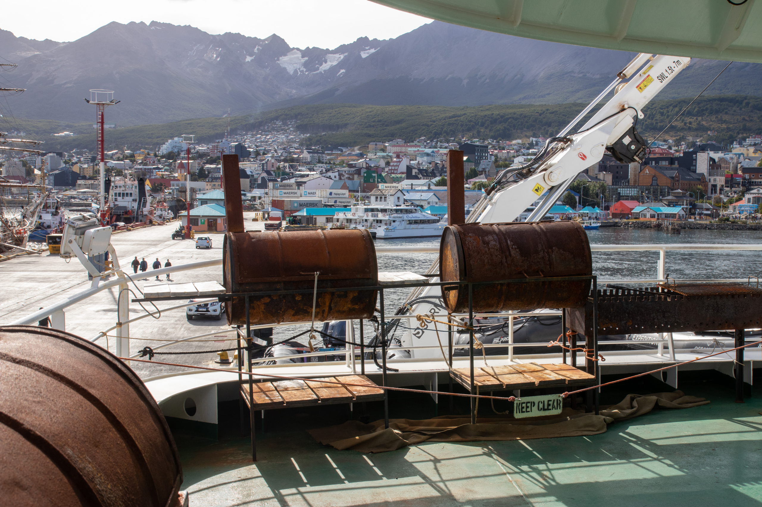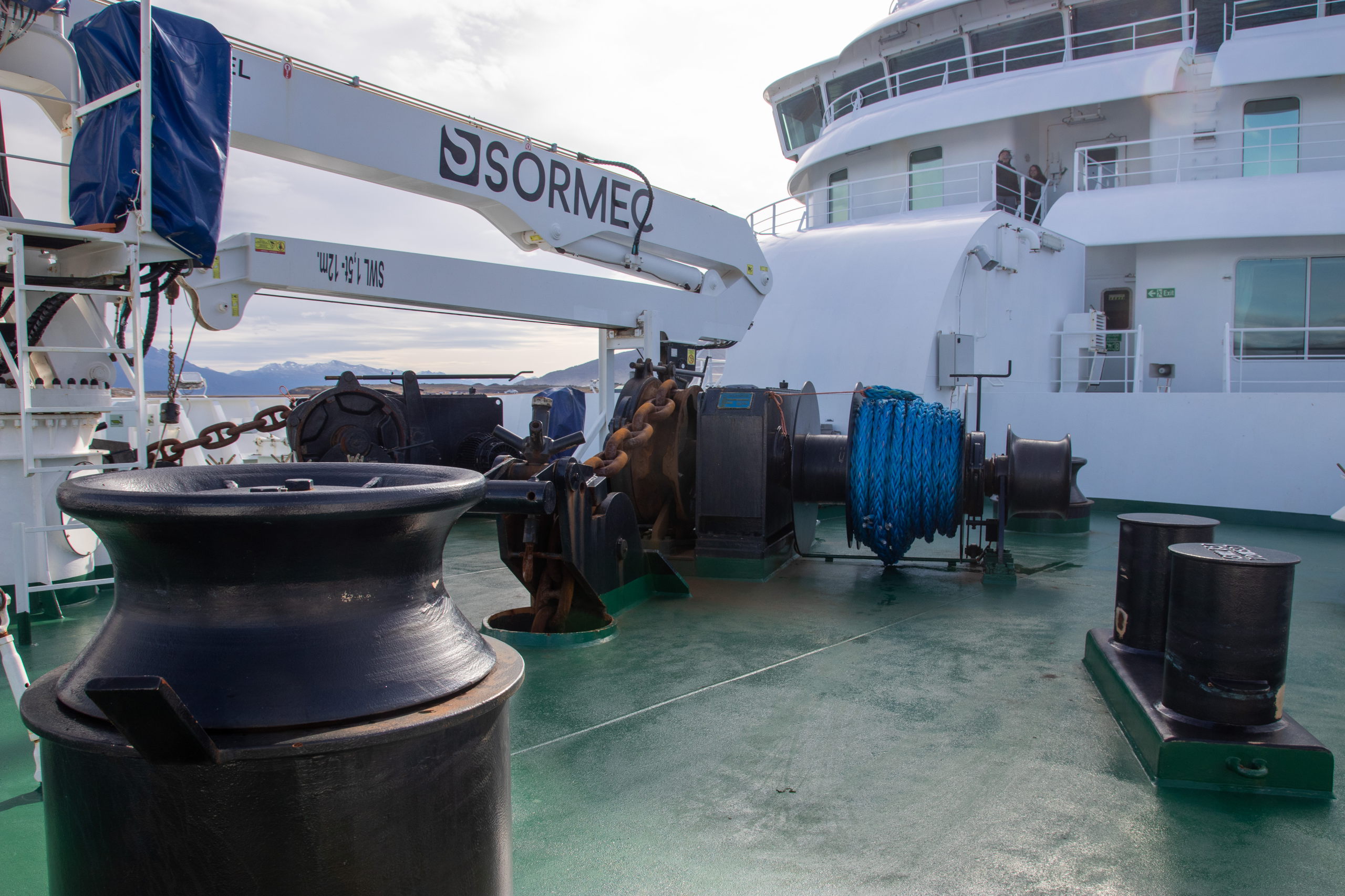 Kurz nach sechs Uhr am Abend legen wir ab. Wow, es geht los. Ich kann es noch gar nicht richtig fassen, dass ich nun in die Antarktis unterwegs bin. Anders als in Hawaii ist es immer noch voll hell und wird es auch bis spät am Abend sein. Immerhin bin ich nun wieder sehr weit im Süden und es ist Sommer. Bis zum Abendessen ist noch genug Zeit um das Schiff zu erkunden und so gehe ich innen und außen von Deck zu Deck und entdecke den ein oder anderen interessanten Gegenstand, wie zum Beispiel die Griller am Heck. Hmmm, grillen in der Antarktis. Klingt super.