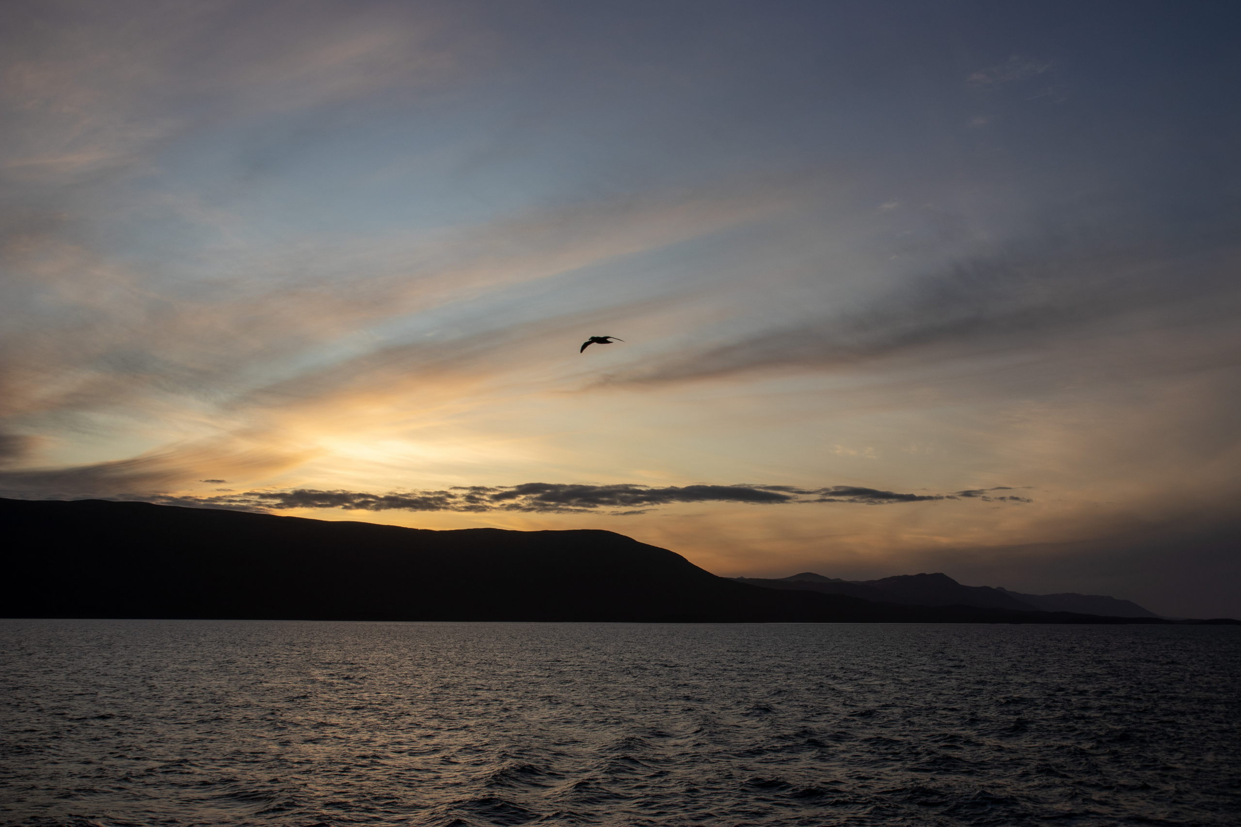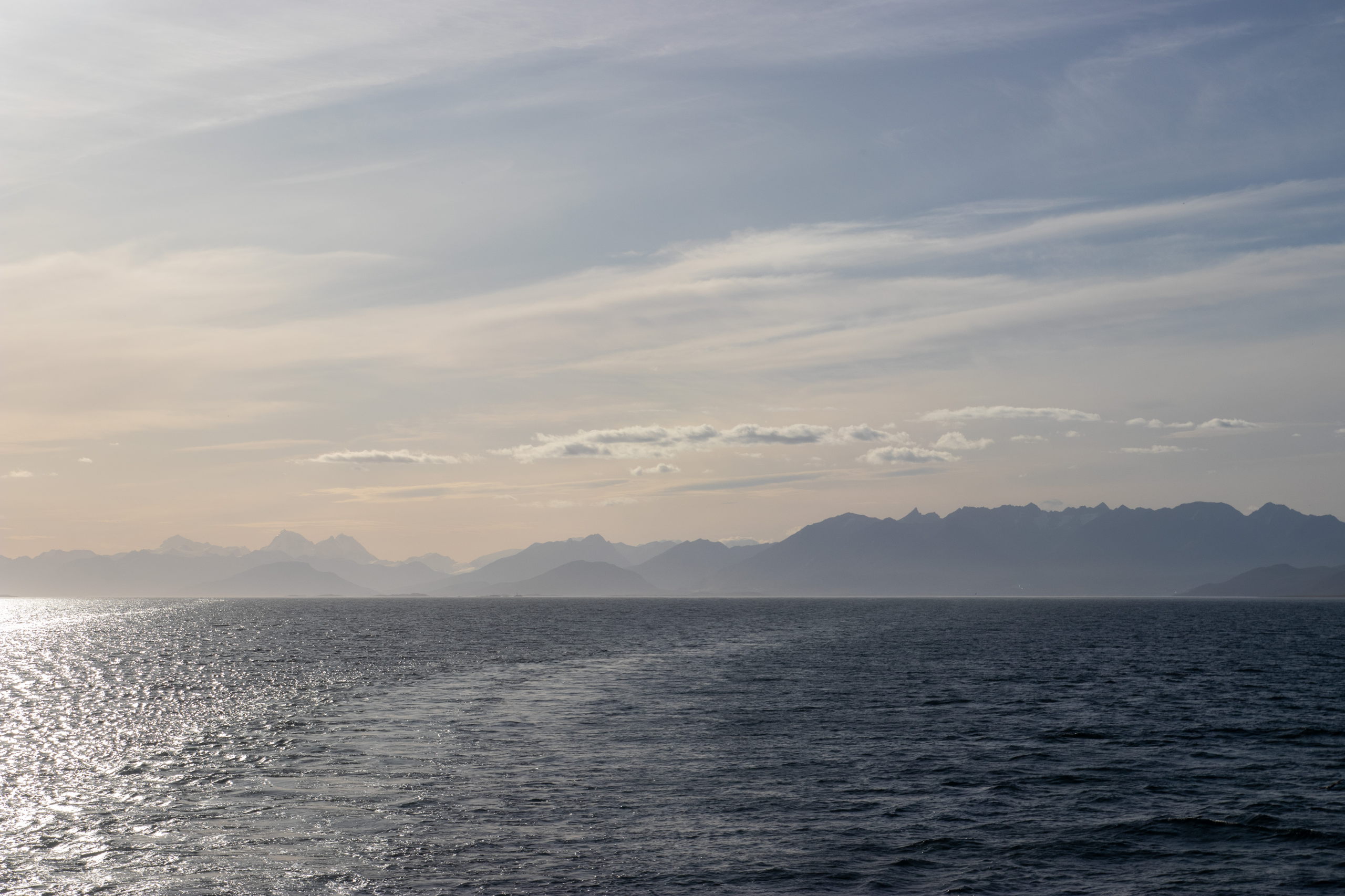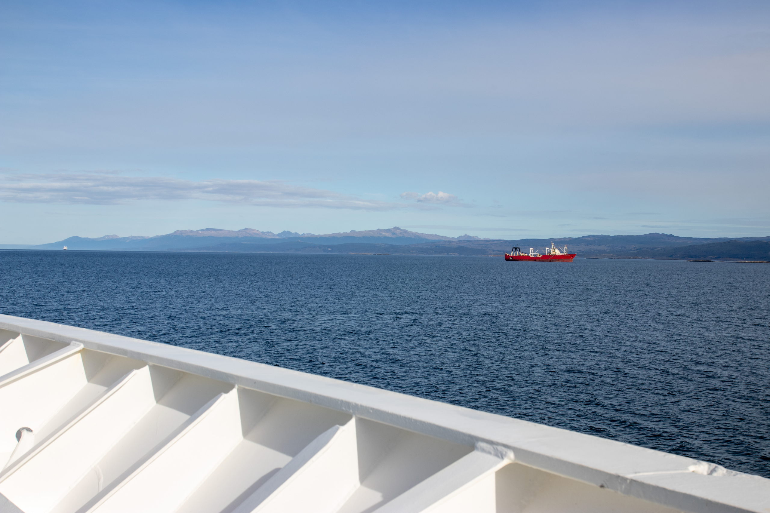 Bereits entlang des Beagle Channels sehen wir Wale und springende Delfine. Wow. Ich setze mich in die Lounge und sortiere eine Weile lang Fotos aus. Dann unterhalte ich mich mit Michael aus Wien, dem Hotelmanager des Schiffs. Cool, ein zweiter Österreicher an Bord. Er erzählt ein wenig aus der Coronazeit und wie der Transfer der Schiffe von Süden mit einem Stopp im Trockendock in Holland und der Fahrt zur Sommersaison in Spitzbergen abläuft, echt interessant. Ich wusste nicht, dass das die gleichen Schiffe sind. Mit dickem Geldbeutel ist so eine lange Überfahrt sogar buchbar. 😳 Um halb zwölf Uhr begebe ich mich in die Kabine, wo meine zwei Zimmergenossen bereits lautstark um die Wette schnarchen. Zum Glück ist der Luftfilter lauter als die beiden und so schlafe ich bald ein.
