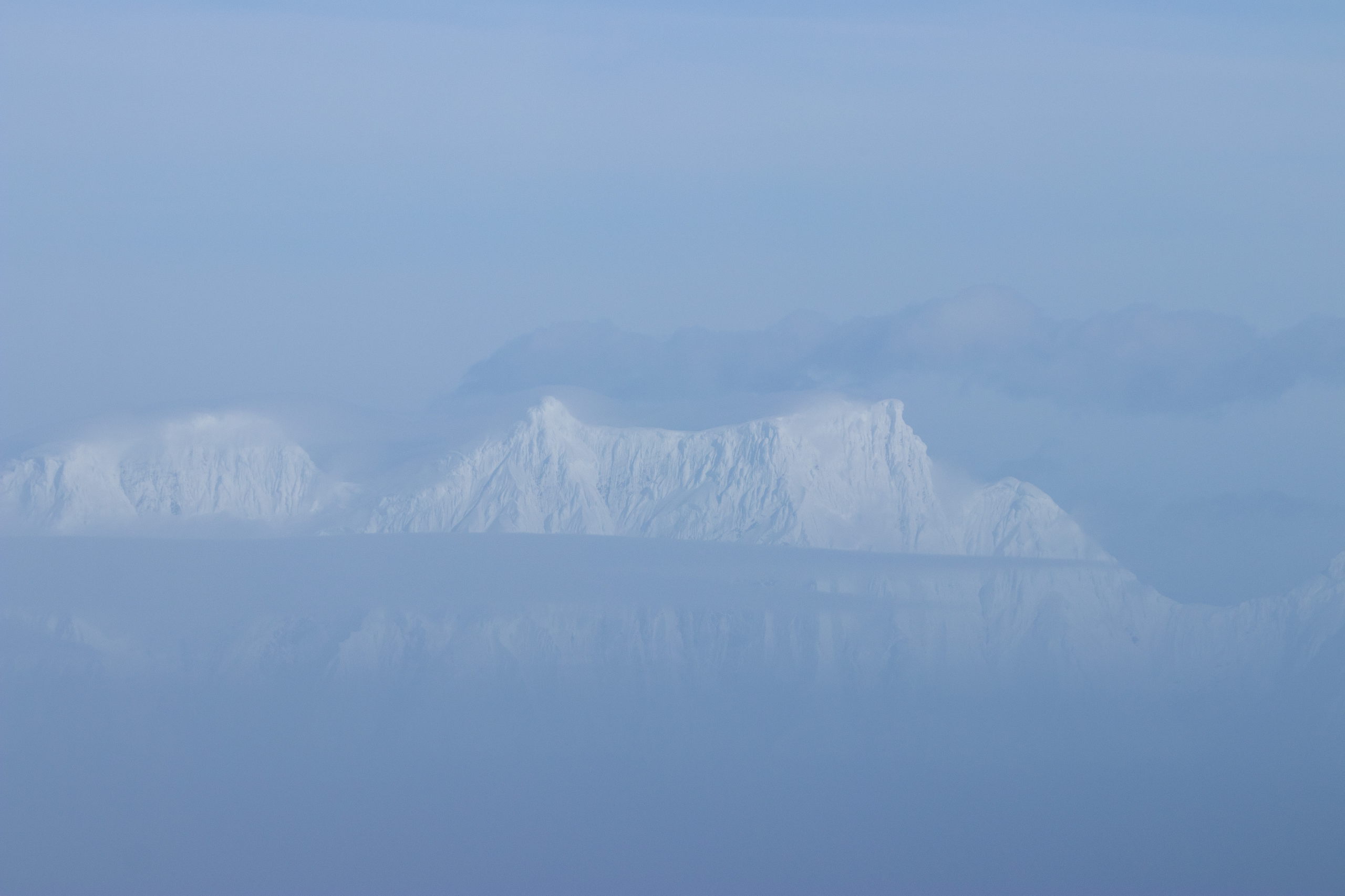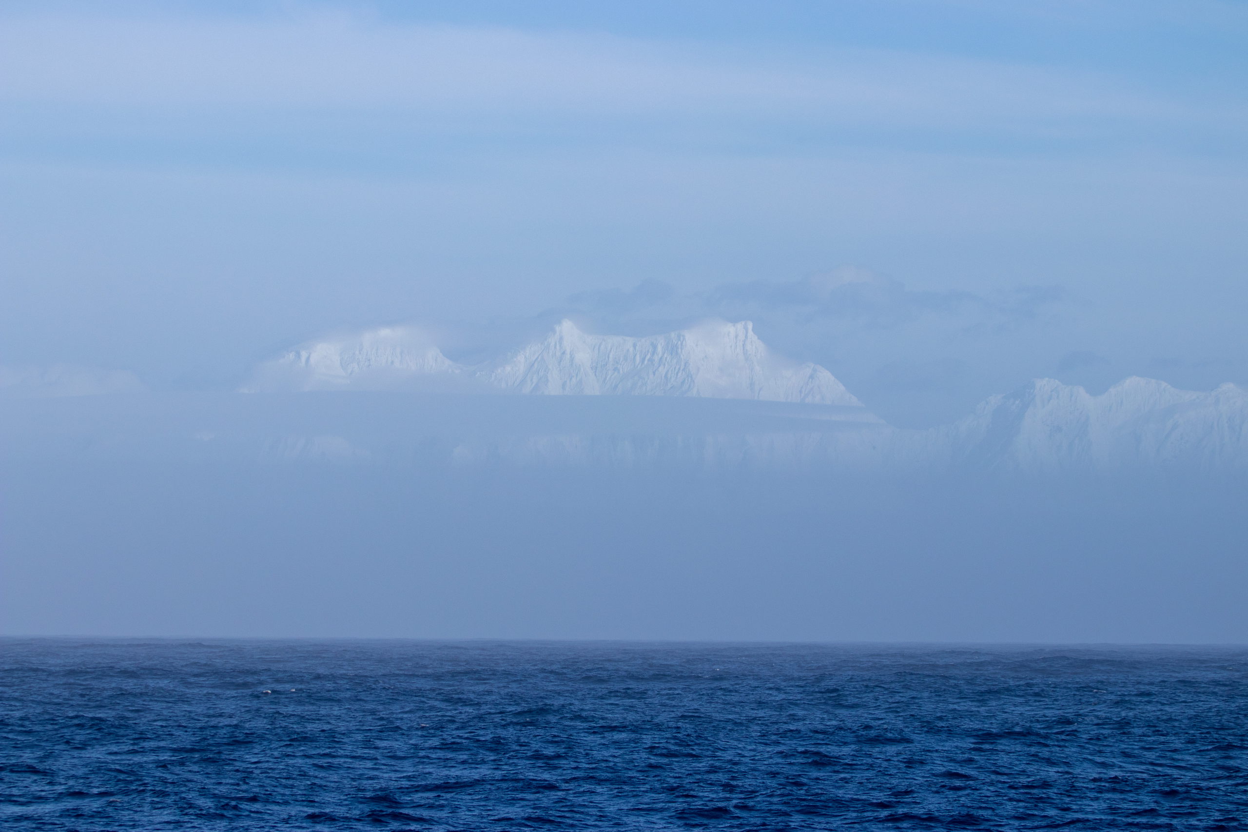 Der allgemeine Vortrag über die Antarktis in der Lounge ist nicht ganz so prickelnd, weshalb ich dabei auch einschlafe. Zum Recap werde ich wieder wach und es werden Fotos und ein Video vom ersten Tag gezeigt. Außerdem gibt es Informationen über das für morgen geplante Programm, unseren ersten Tag an der Antarktischen Halbinsel. Cool. Kurz vor dem Abendessen ist Land in Sicht. Zart heben sich hohe Berge von den Wolken ab. Jupidu, wir haben die Antarktische Halbinsel erreicht. Das erklärt auch, warum wieder mehr Vögel zu sehen sind.