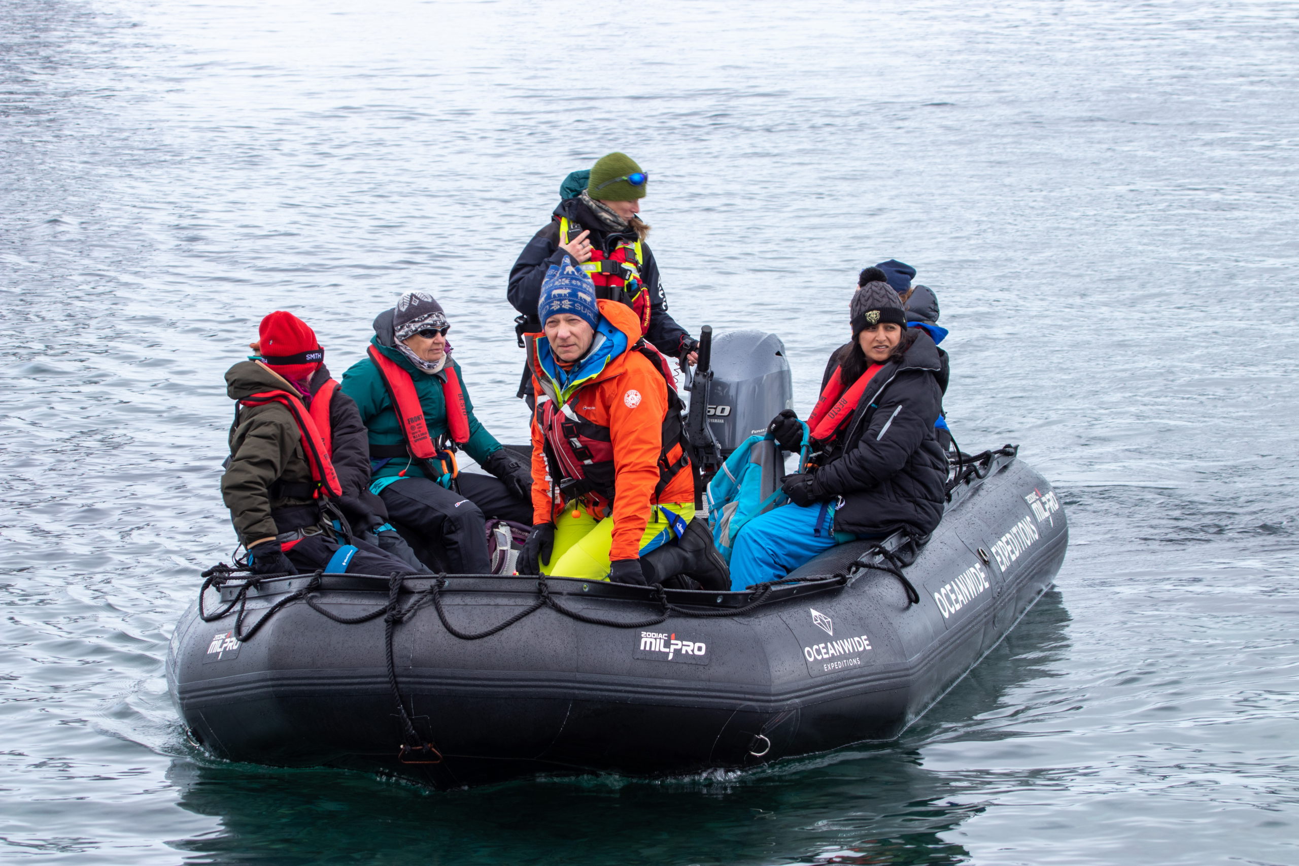 Teilweise scheint die Sonne durch und die Landschaft ist einfach nur atemberaubend. Bald müssen wir wieder hinunter, denn zur Halbzeit tauschen wir mit den anderen beiden Gruppen und machen einen Zodiac Cruise in der Bucht.