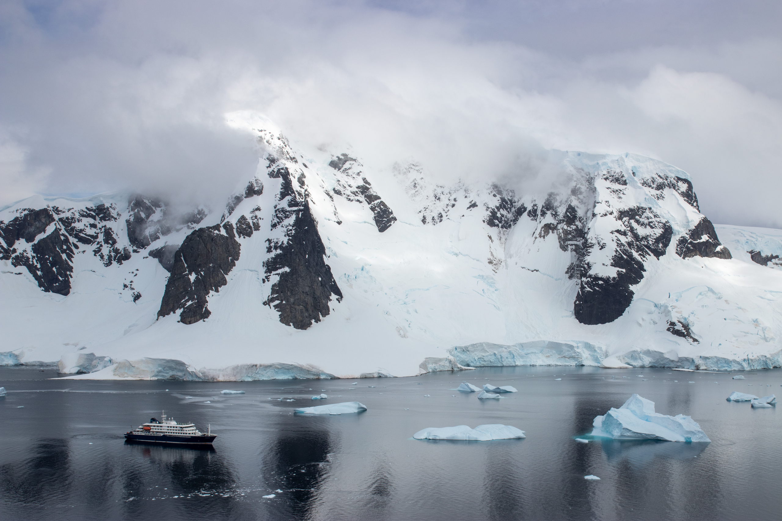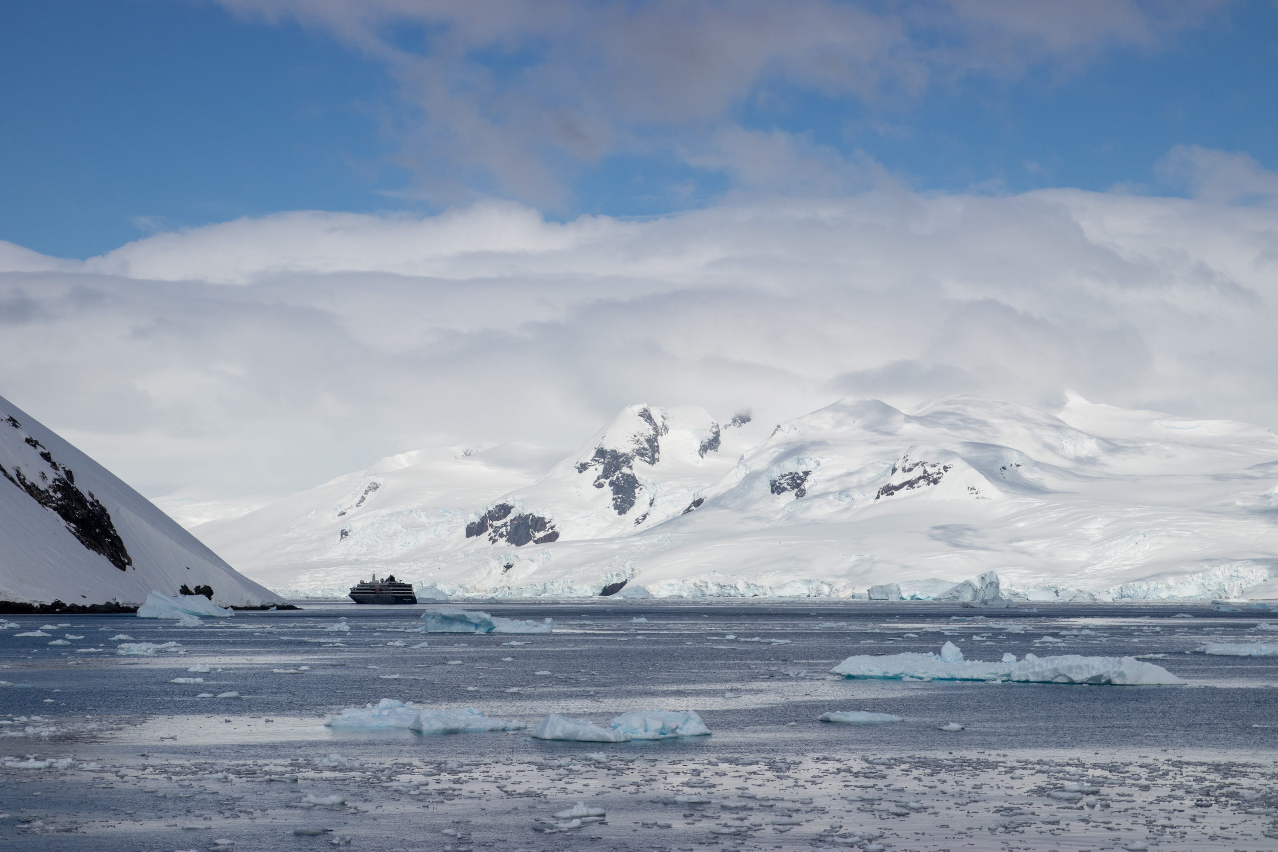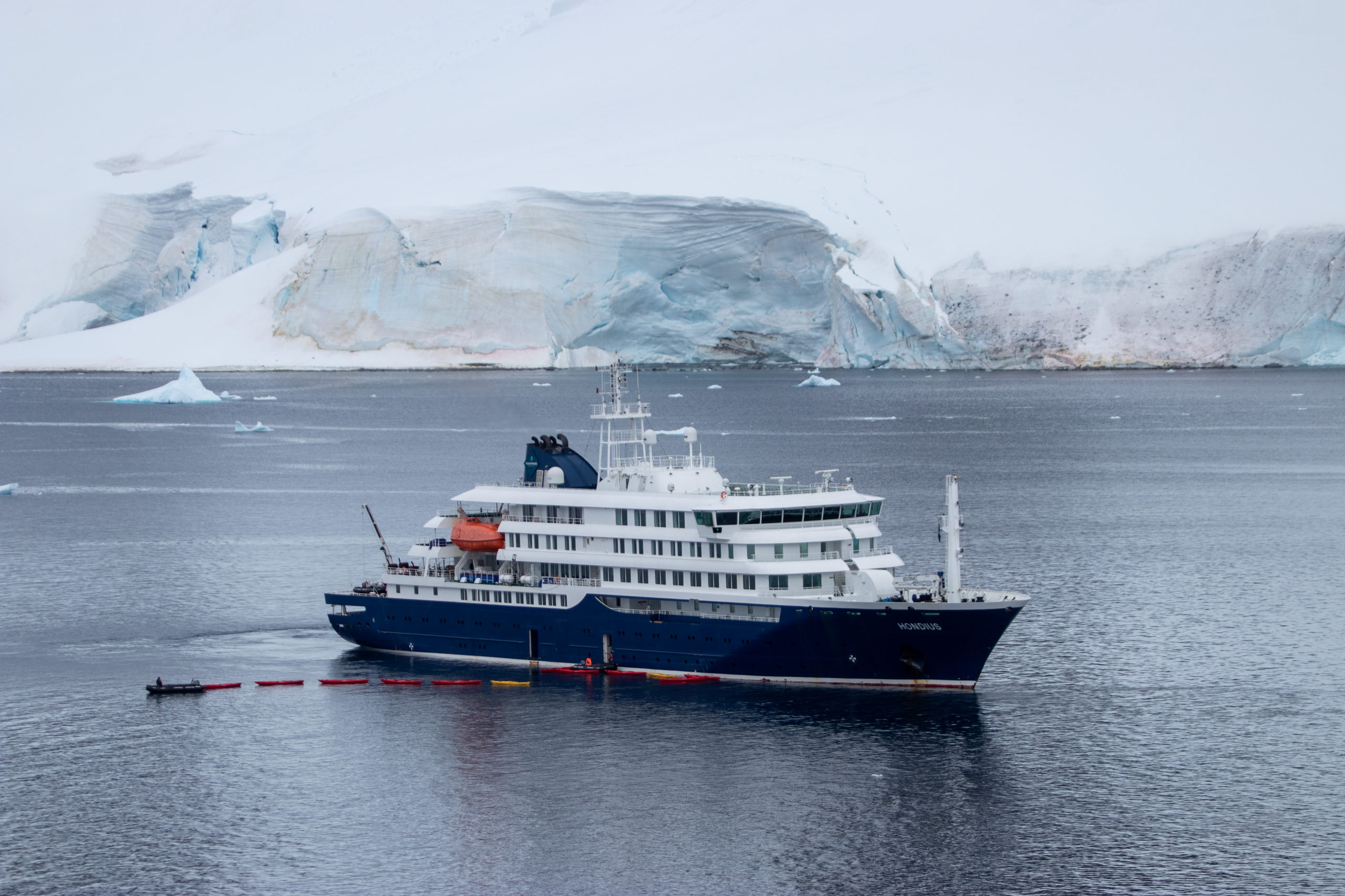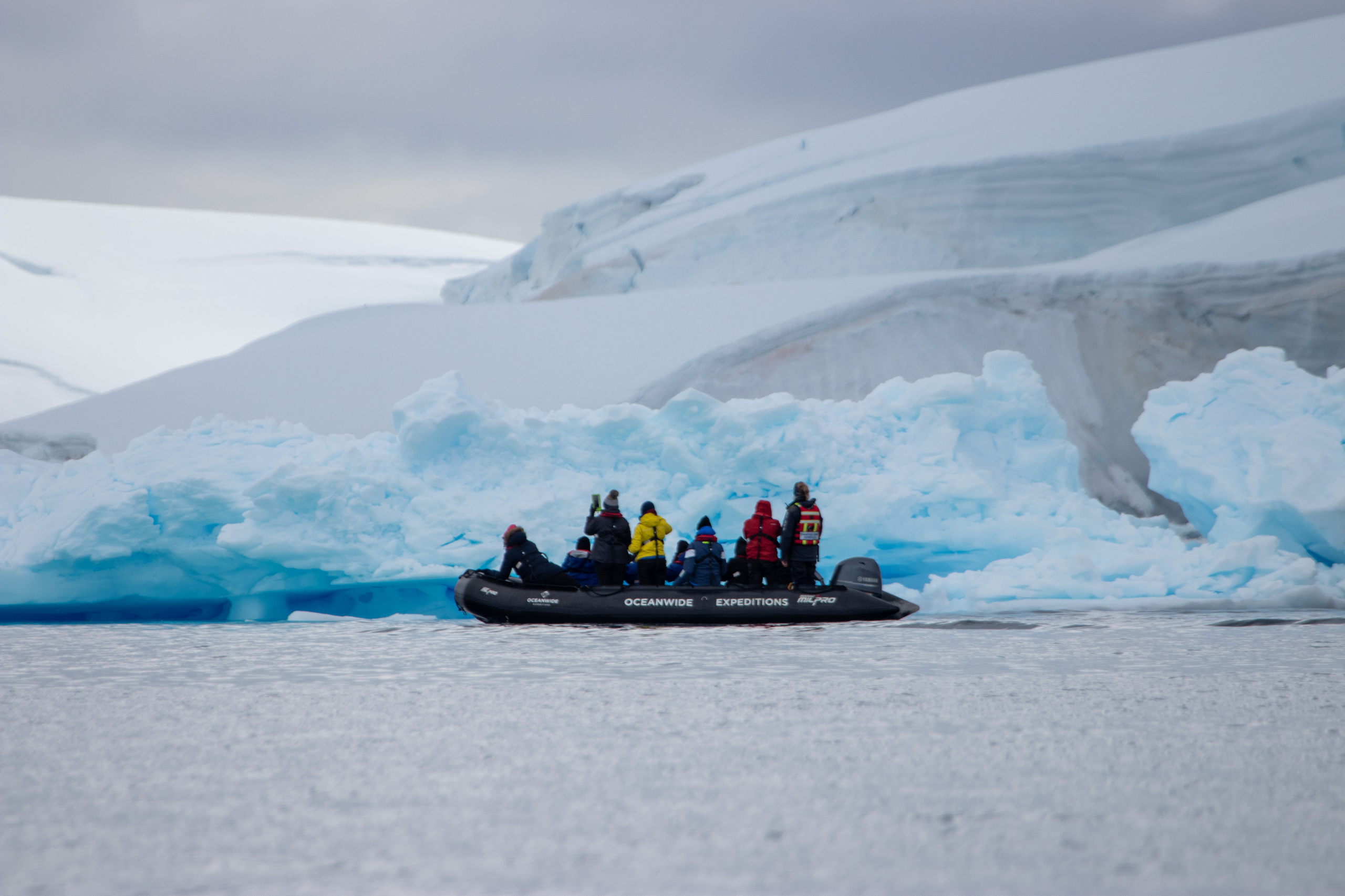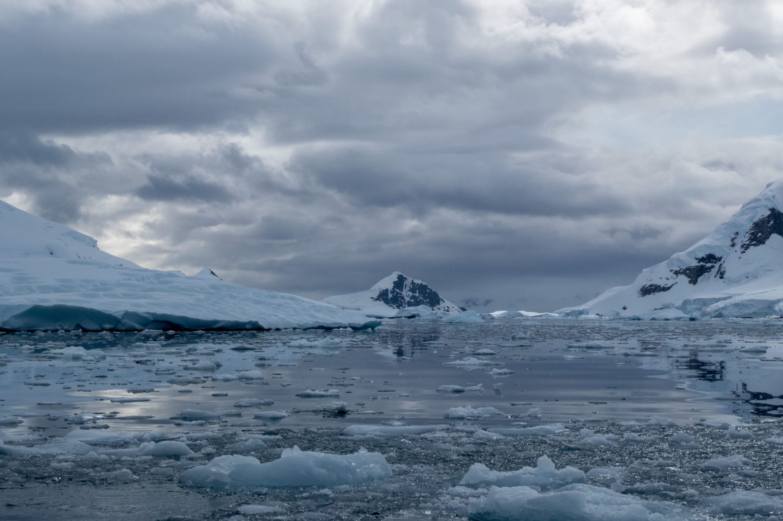 Am späten Nachmittag geht es zum Zodiac Cruise am Skontorp Cove. Dabei kommen wir an der Brown Station, einer argentinischen Forschungsstation, vorbei. Über Funk hören wir, dass ihnen bald das Trinkwasser ausgehen wird. Kurz darauf sehen wir ein Boot vom Land aus starten. Ein zweites, mit Fässern beladenes, startet von der Hondius um diese auf das andere Boot umzuladen. Die übliche Versorgung mit Trinkwasser, denn Eis oder Schnee zu schmelzen, würde viel zu viel Energie und Treibstoff verbrauchen.