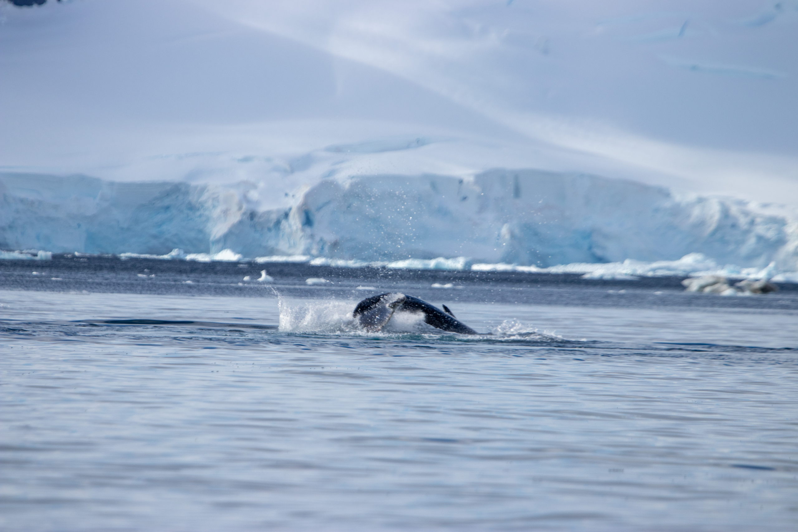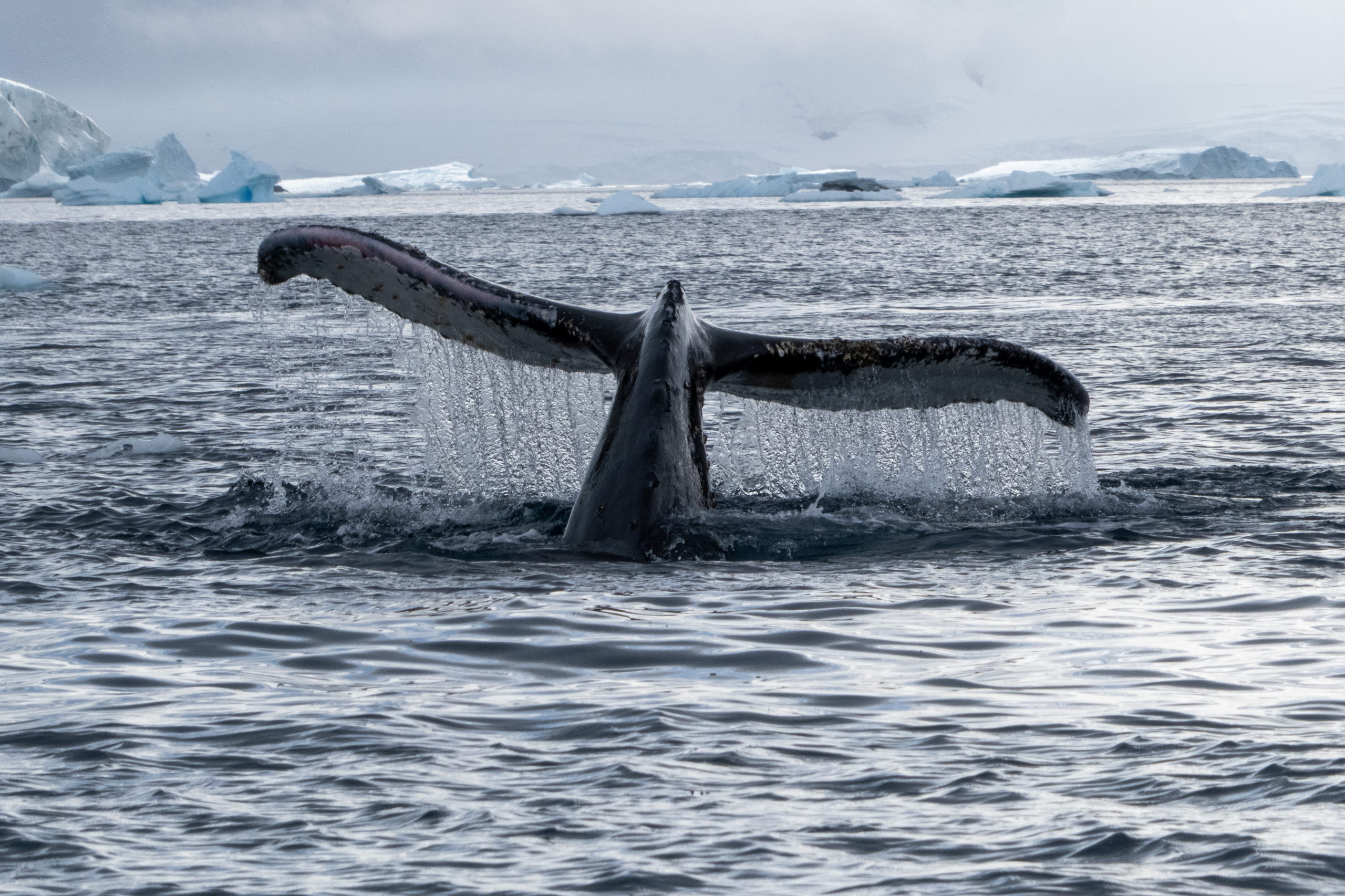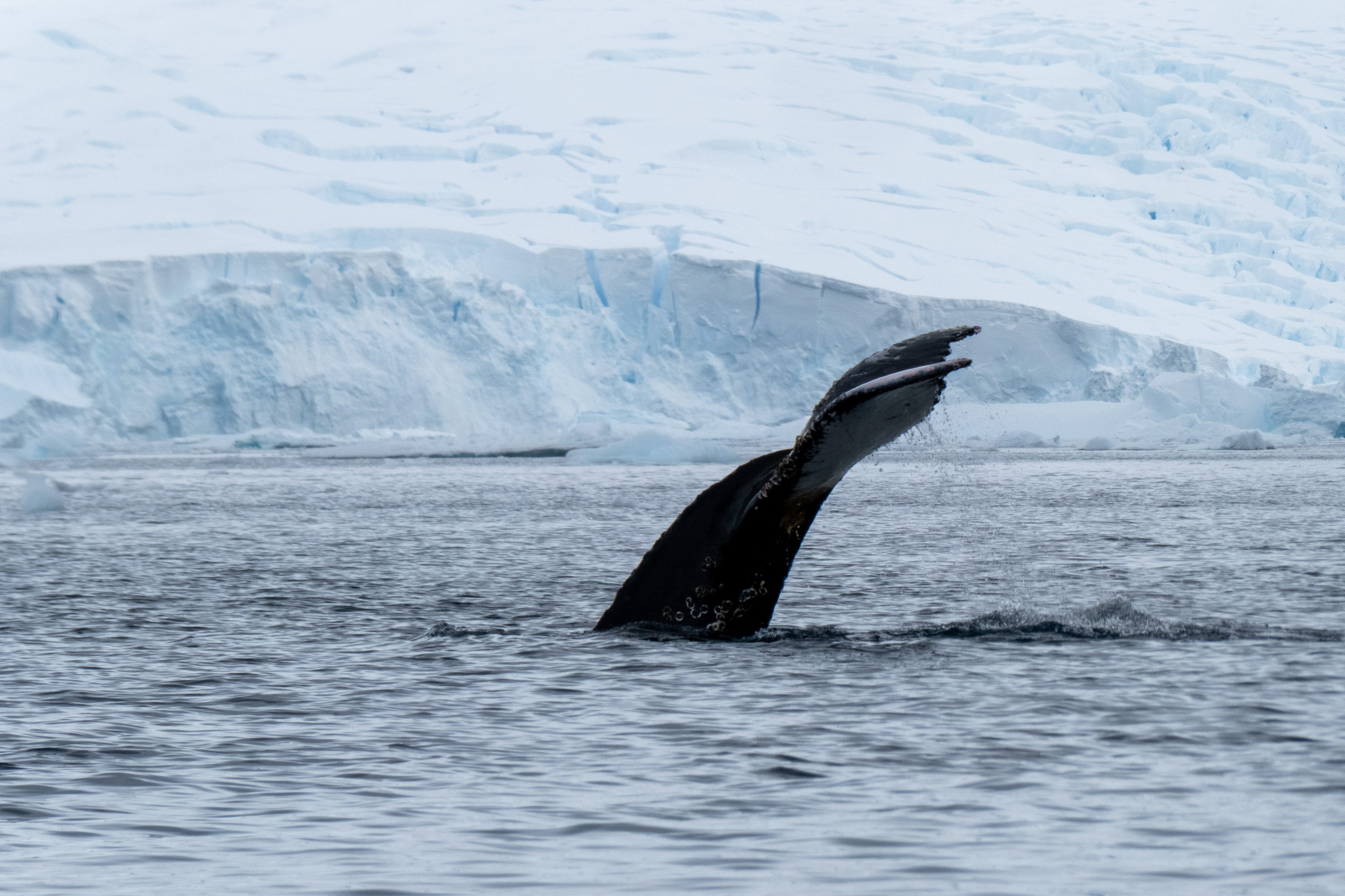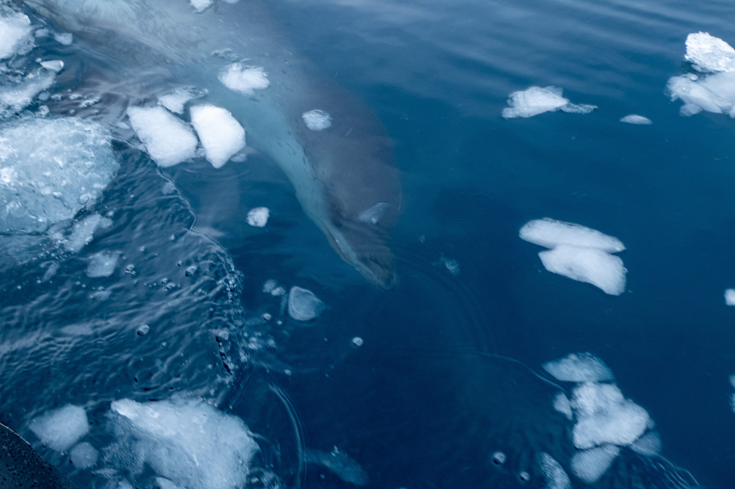 Es ist unglaublich, wie viele Tiere zu sehen sind. Ich komme aus dem Staunen nicht mehr heraus. Kurz bevor wir zur Hondius zurückkommen, sehen wir dann noch einen Buckelwal, wie er mehrmals mit der Schwanzflosse aufs Wasser schlägt. Wahnsinn.