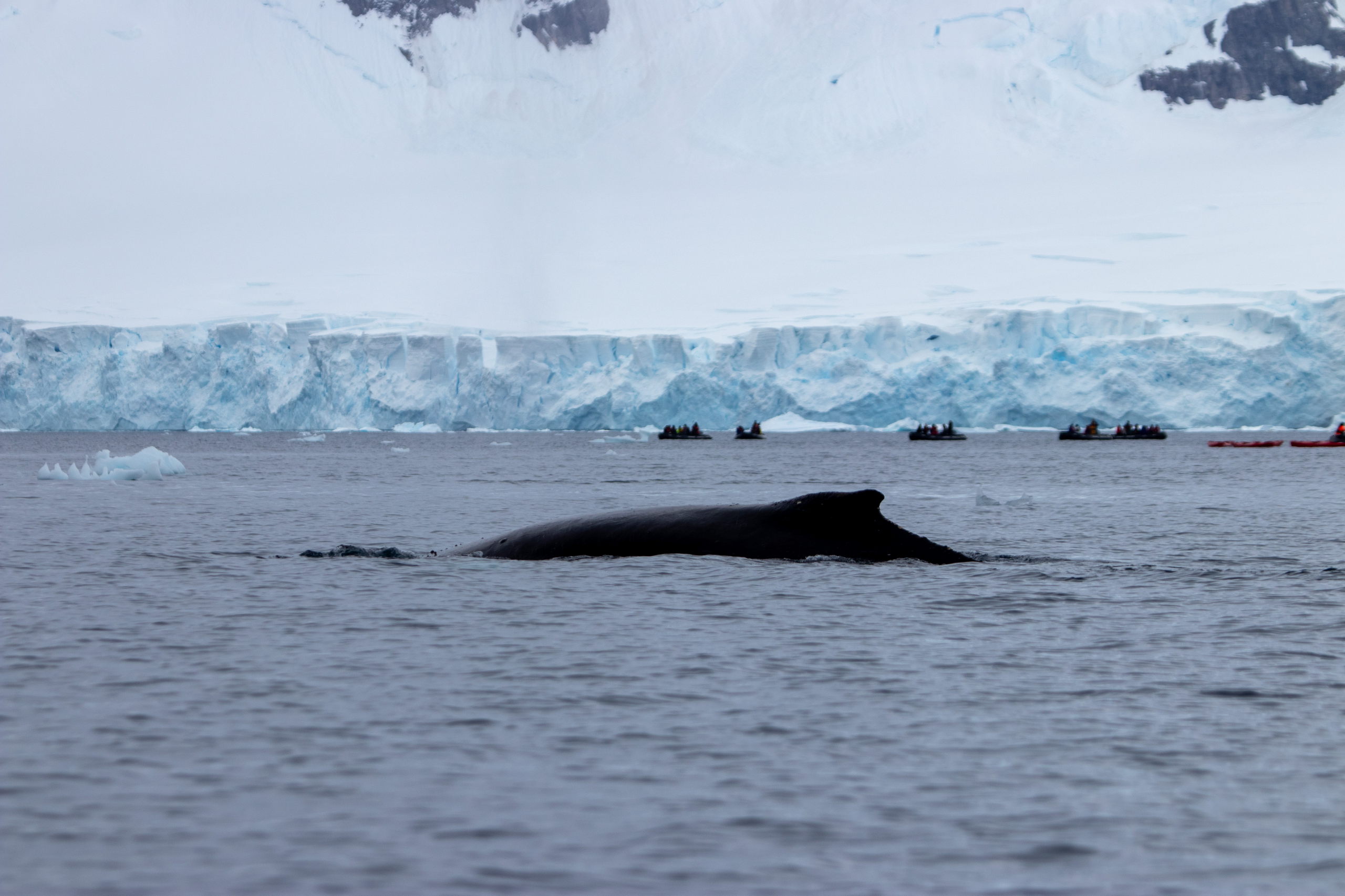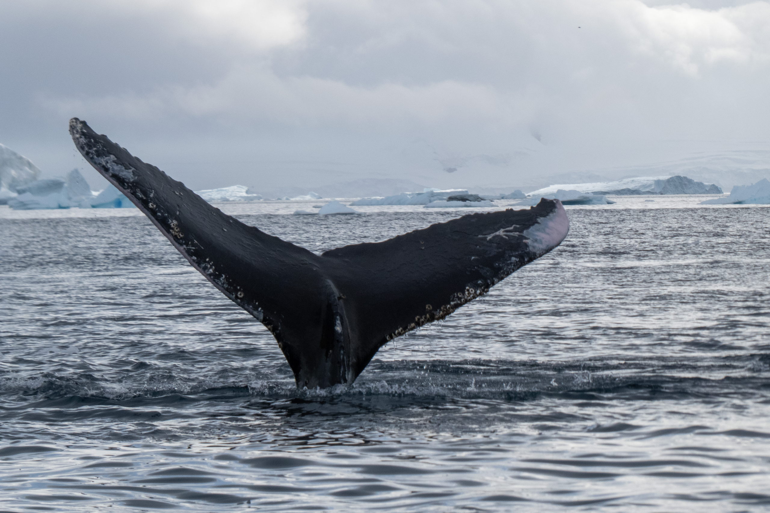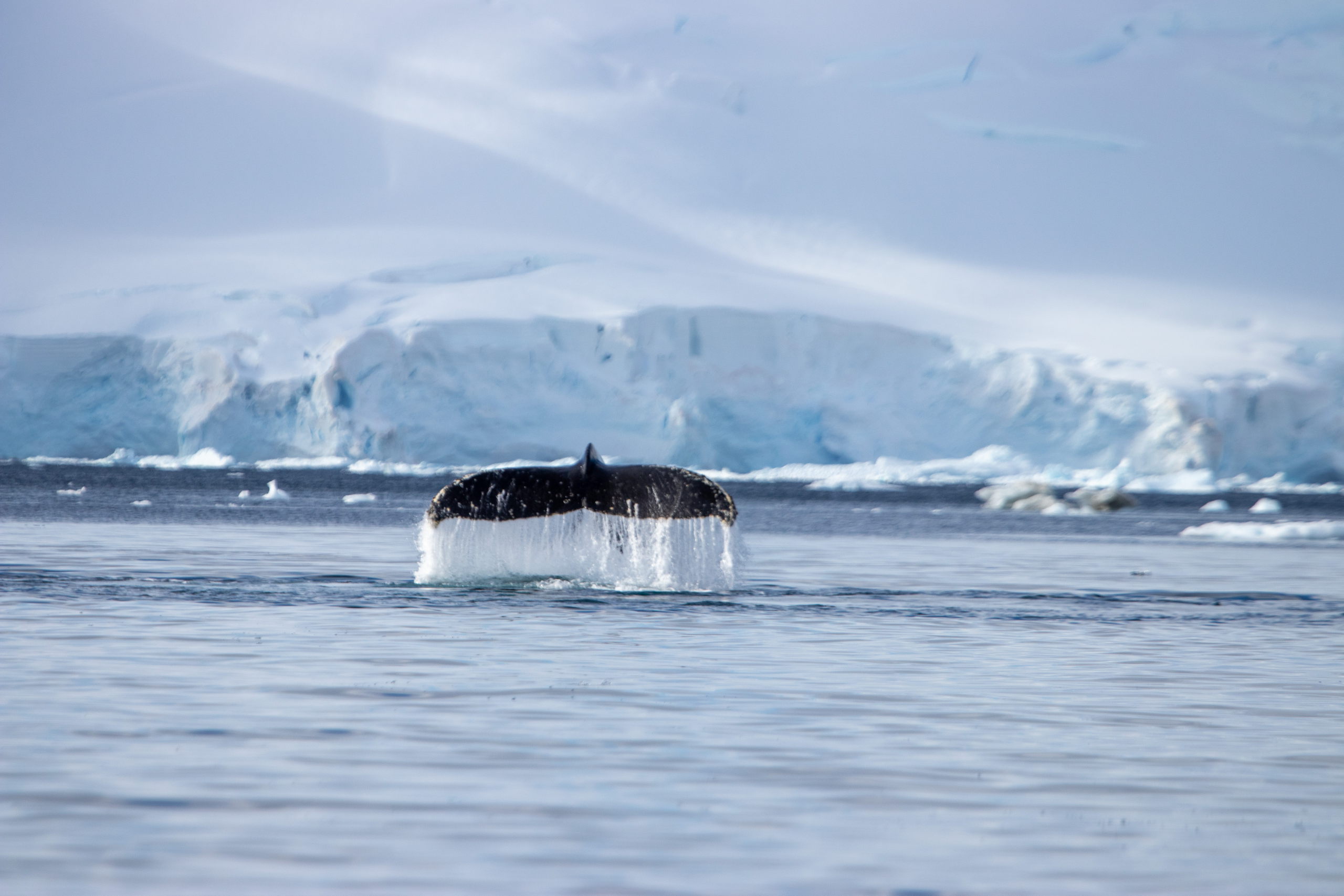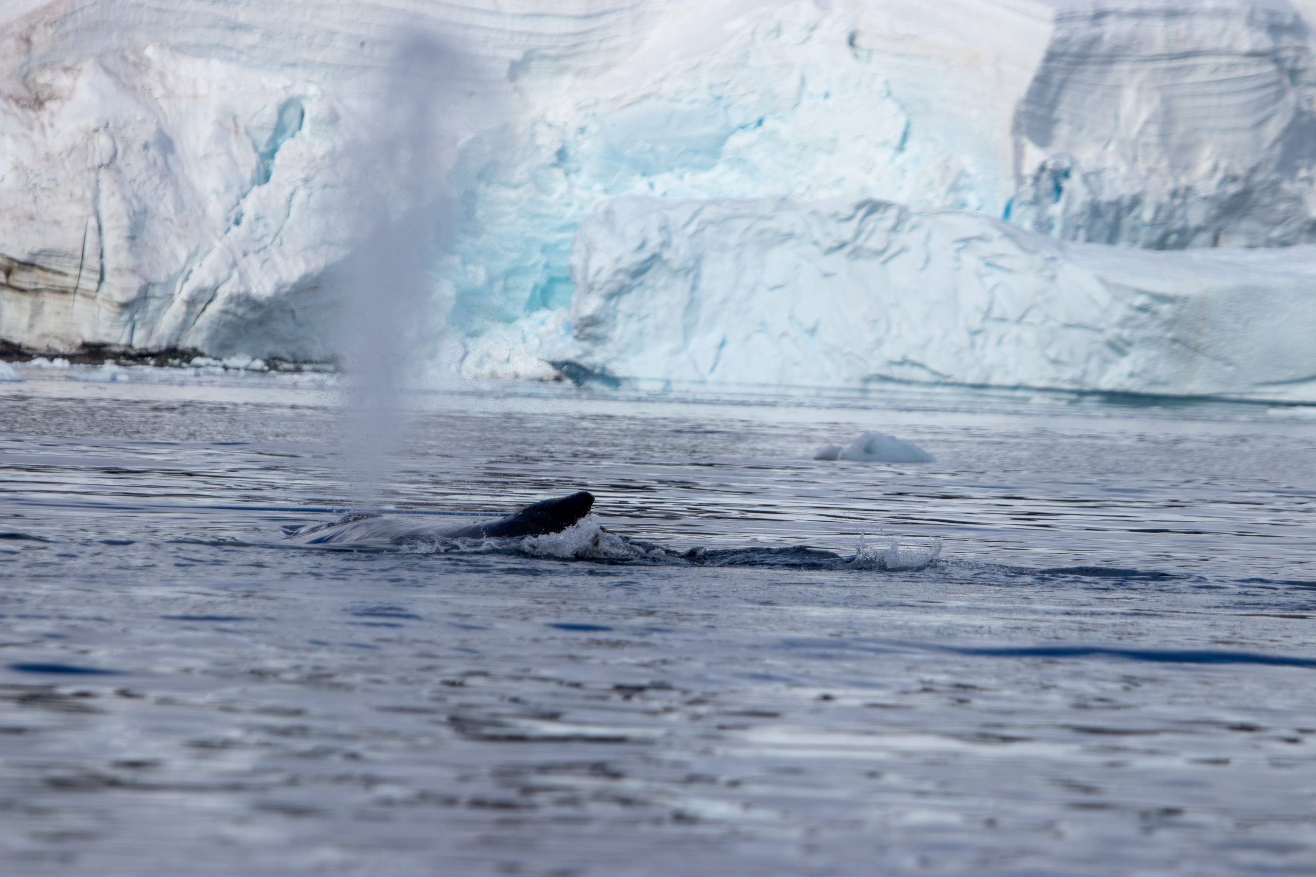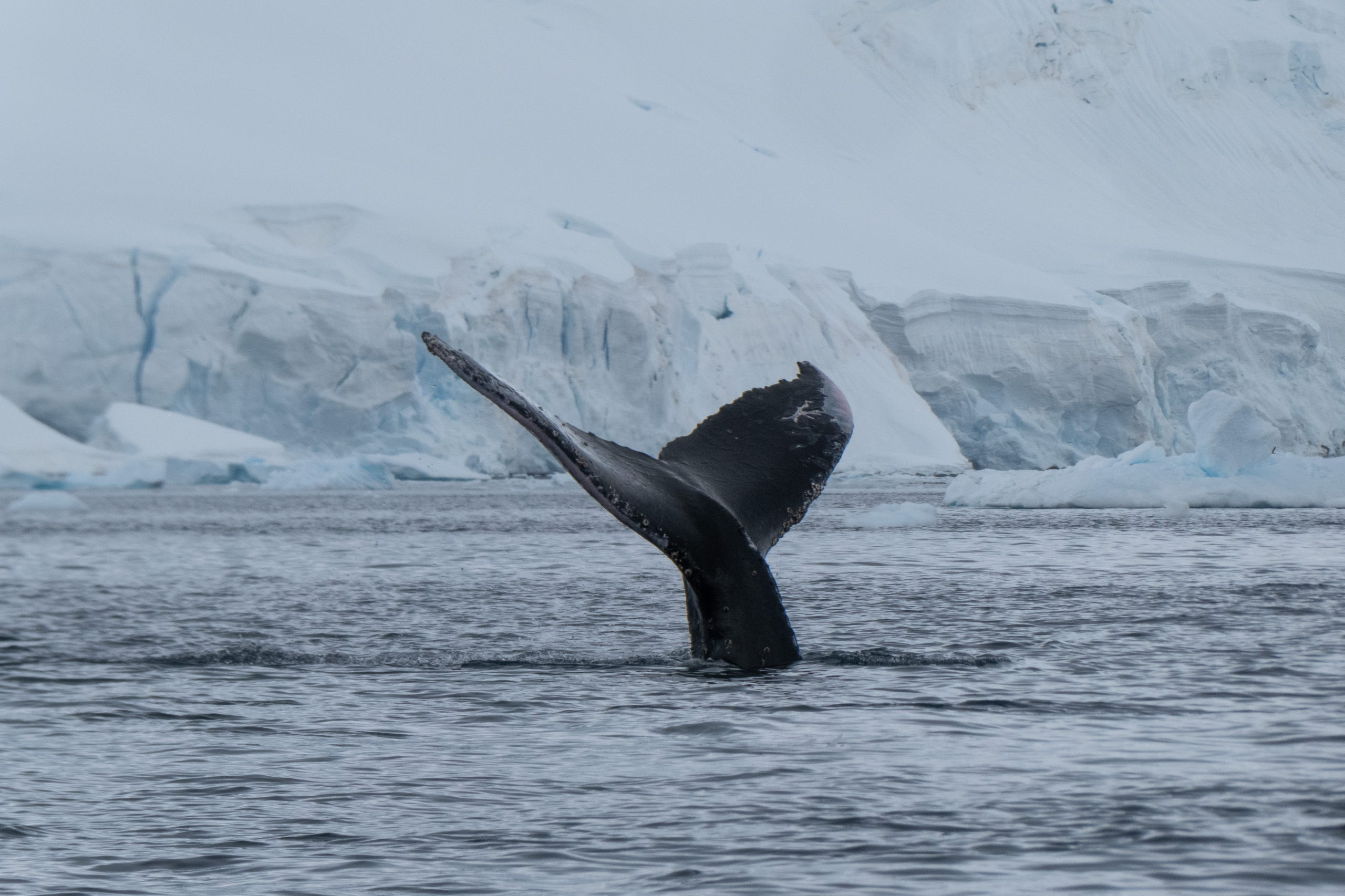 Es ist unglaublich, wie viele Tiere zu sehen sind. Ich komme aus dem Staunen nicht mehr heraus. Kurz bevor wir zur Hondius zurückkommen, sehen wir dann noch einen Buckelwal, wie er mehrmals mit der Schwanzflosse aufs Wasser schlägt. Wahnsinn.