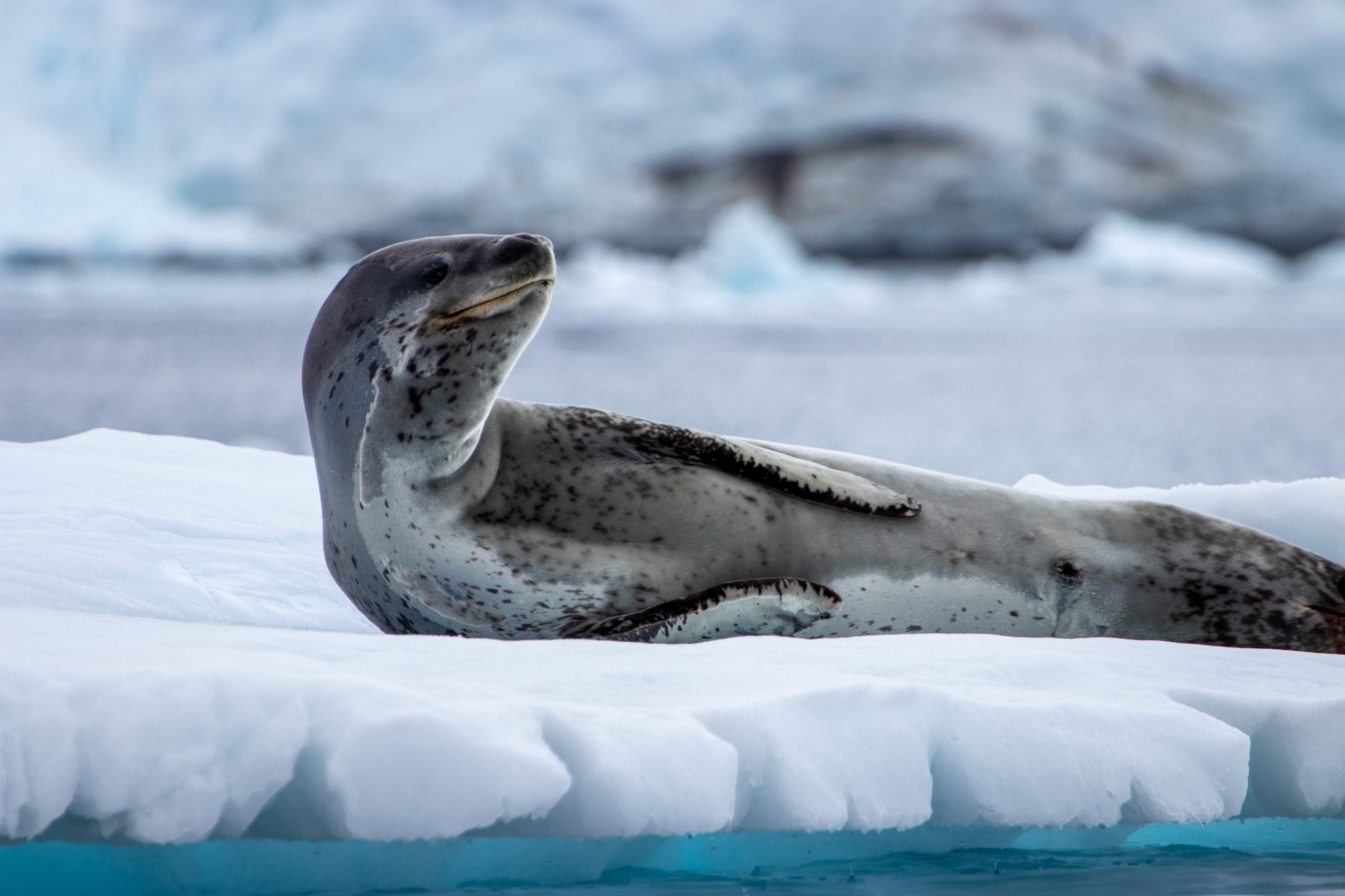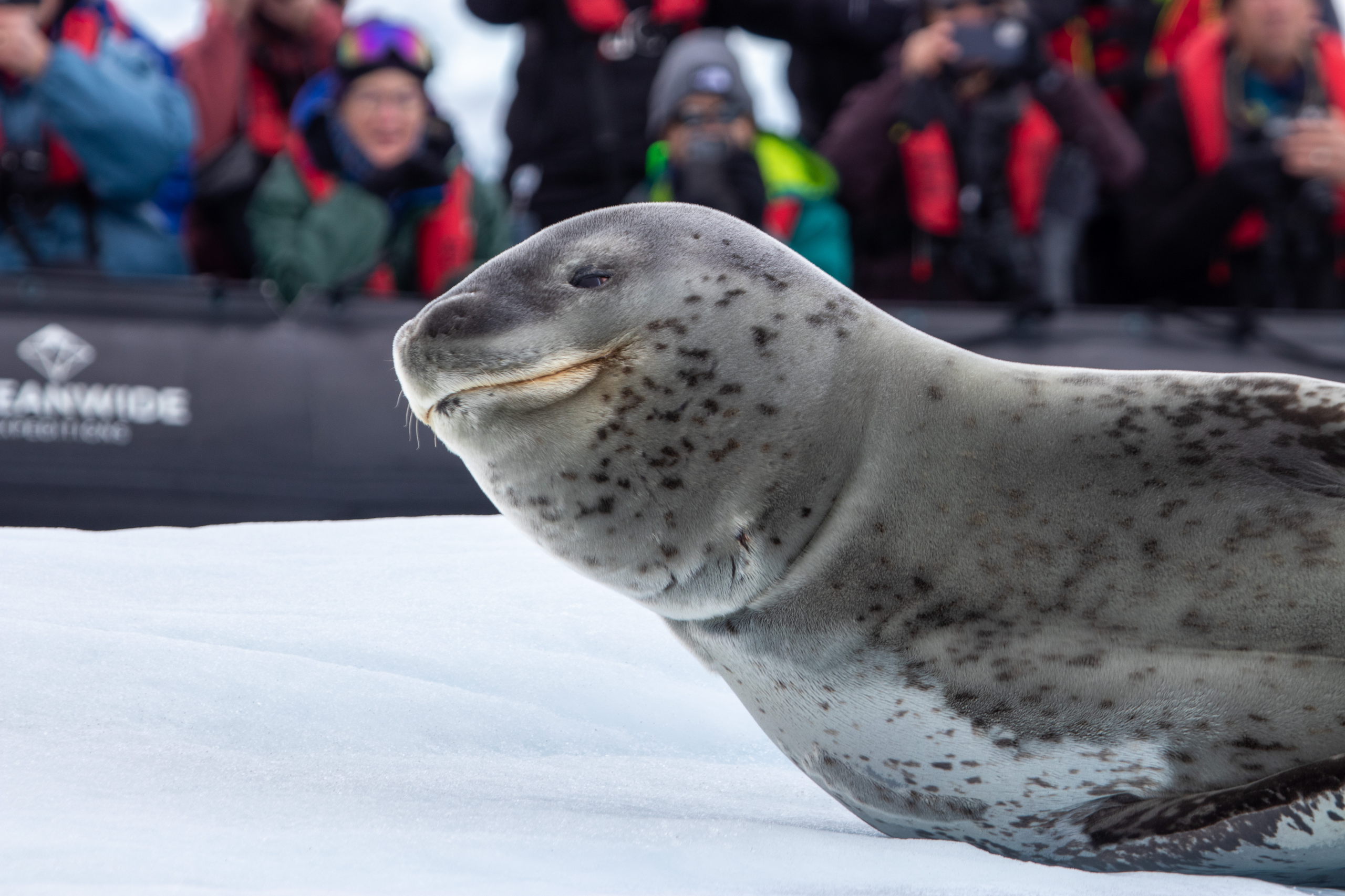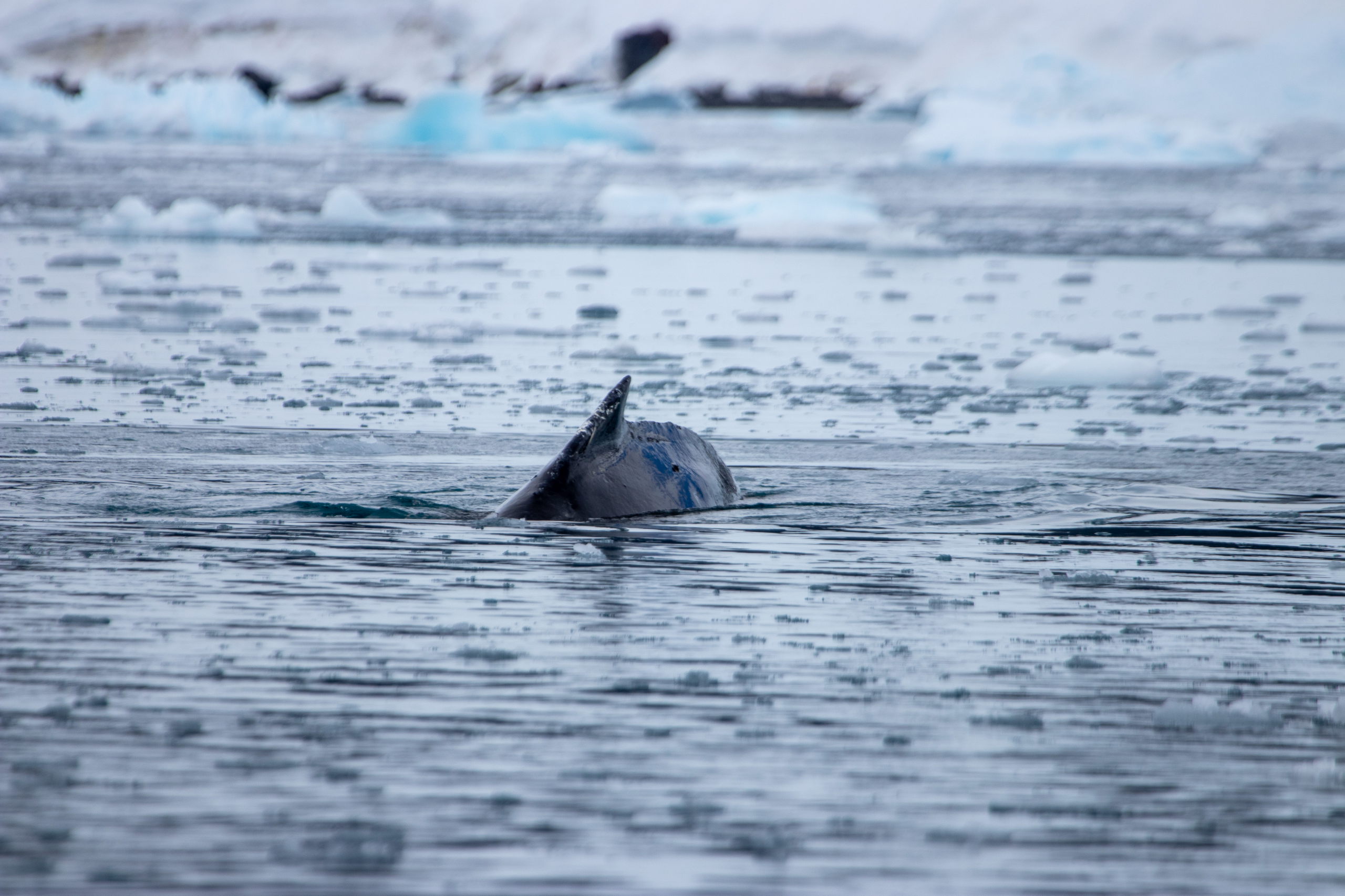 Zuerst fahren wir mit super Speed zu einigen Buckelwalen. Zwischendurch springen immer wieder Pinguine aus dem Wasser. Die sehen dabei echt lustig aus. Ein Stück weiter in der Paradise Bay sehen wir einige Seeleoparden rasten, als es plötzlich neben uns faucht. Ein riesiger Seeleopard schwimmt neben unserem Zodiac her und taucht immer wieder auf. Er macht unglaubliche Unterwasserkunststücke und reibt sich sogar den Bauch an unserem Boot. Sascha, unser Zodiac Driver, hat so etwas in seinen sieben Saisonen noch nicht gesehen. Wahnsinn. Er glaubt, dass es sich um ein Männchen handelt und es sich ein wenig in unser Boot verliebt hat. 😃