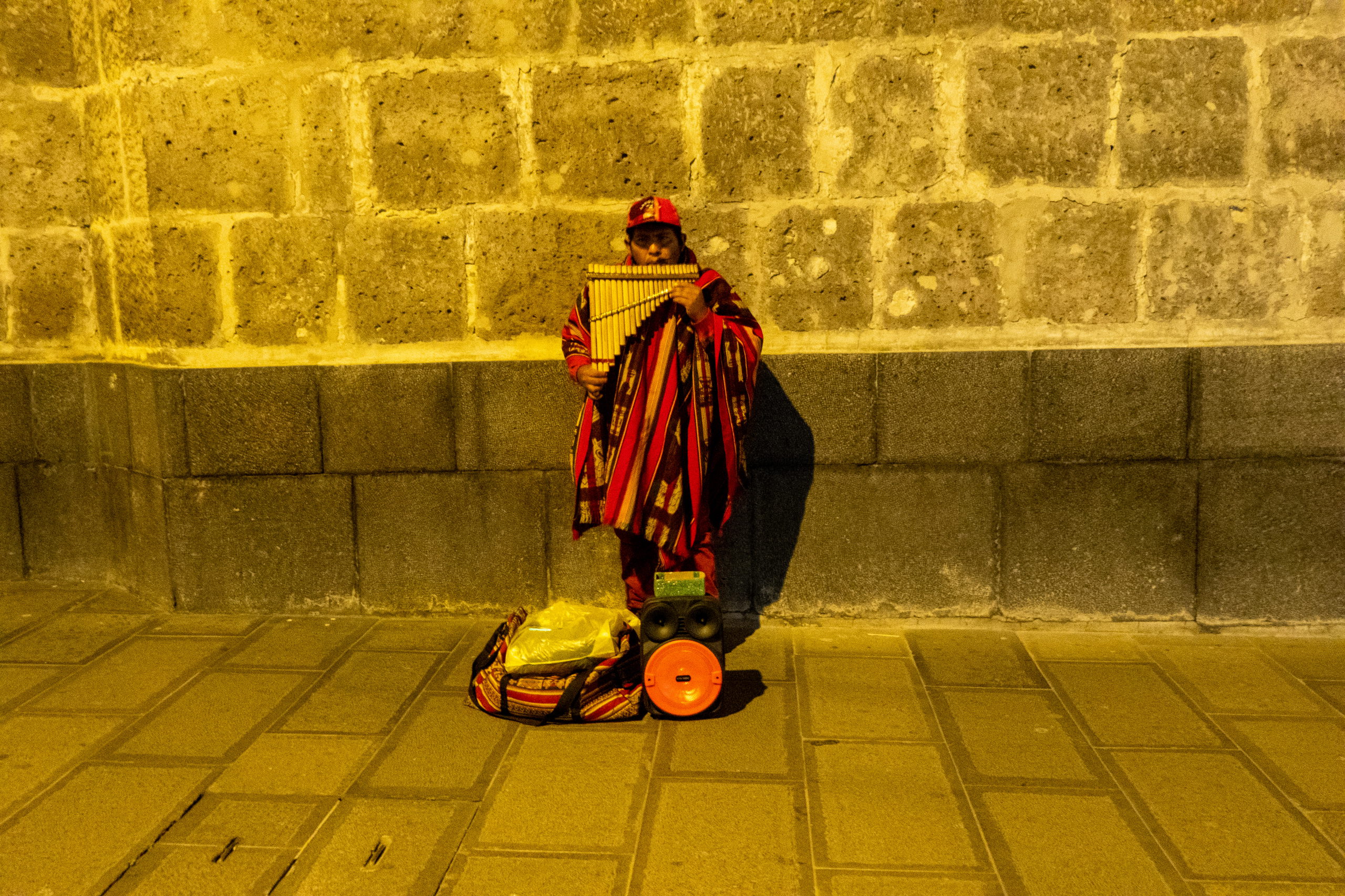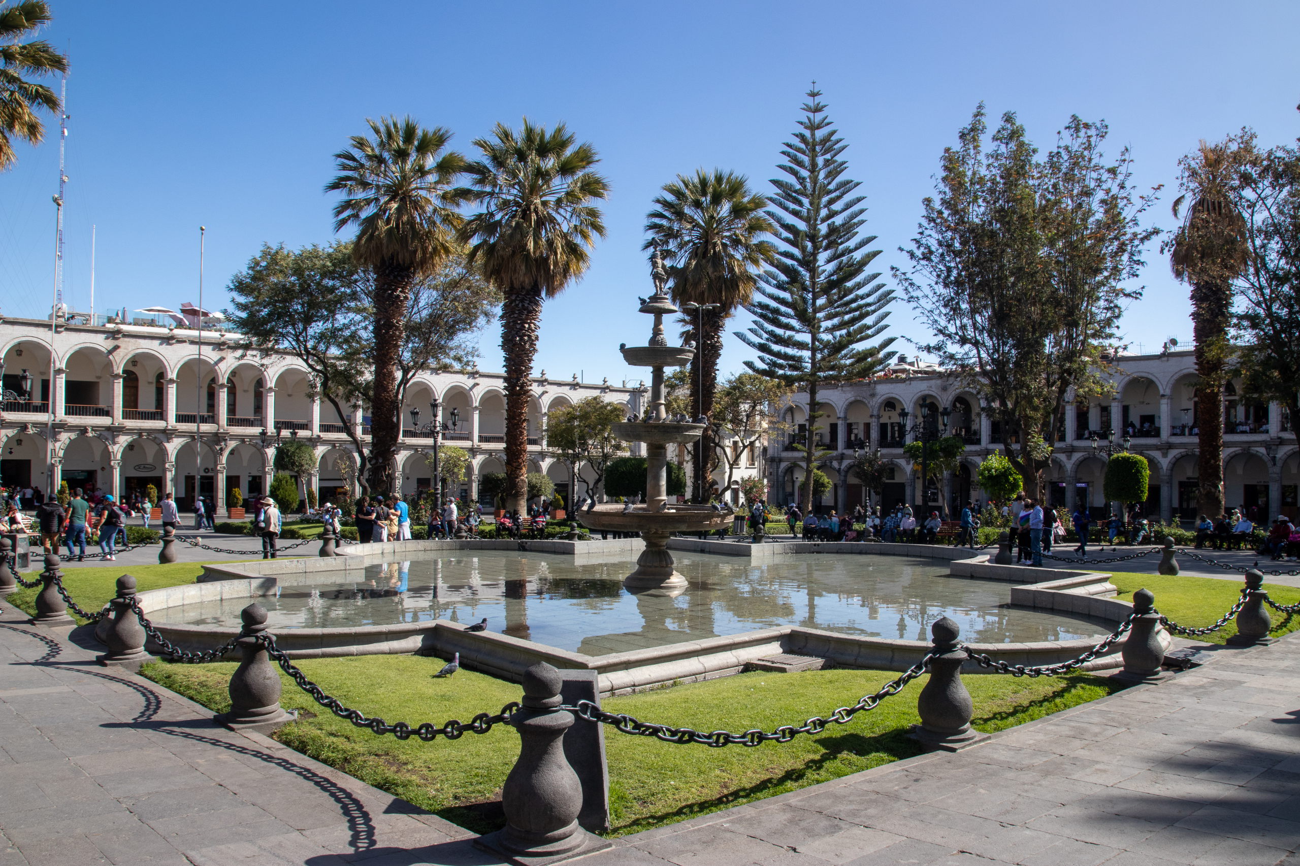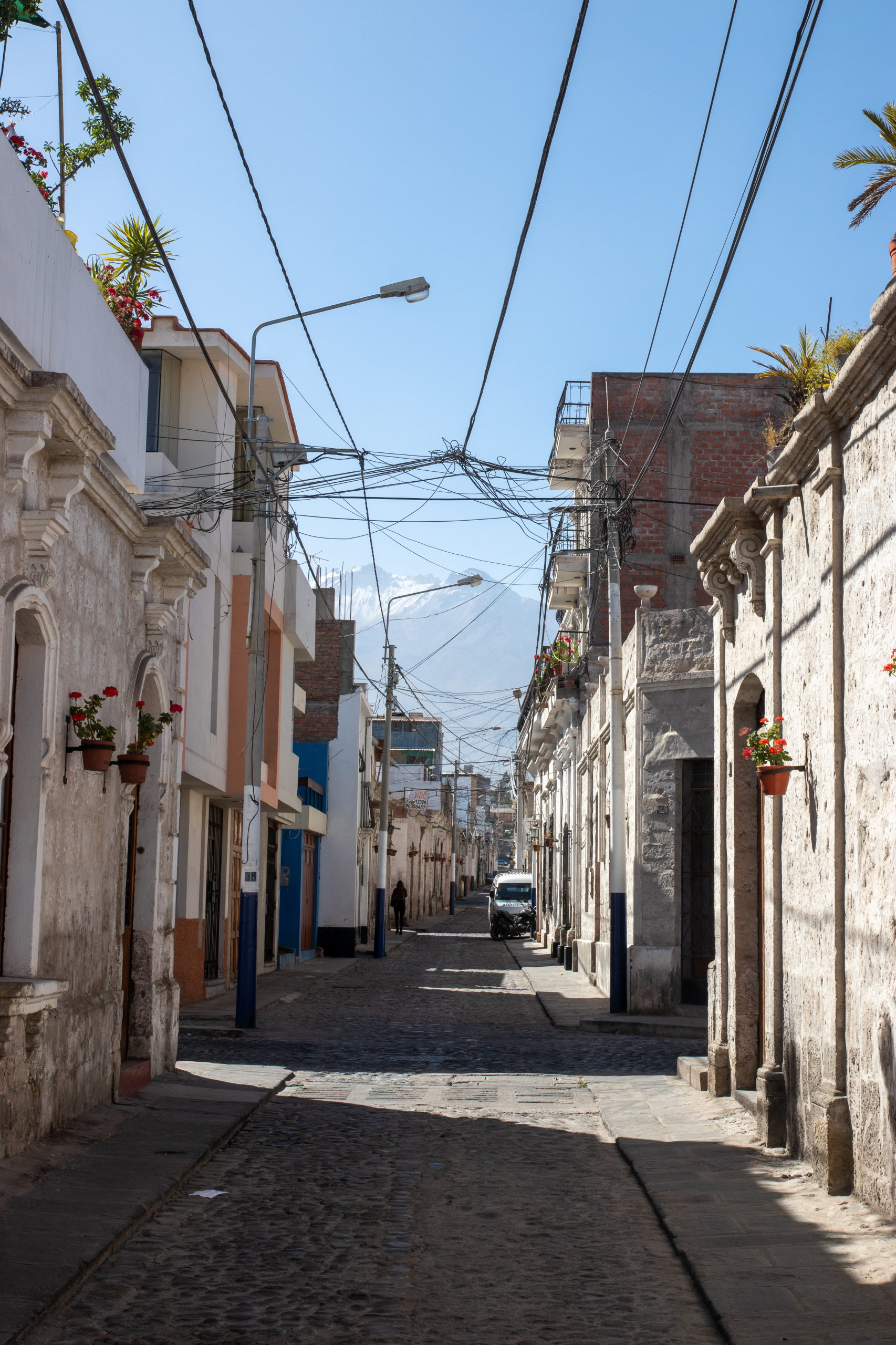 Ich schlendere weiter durch die Stadt, als mir ein Typ mit einem Teleskoprückenkratzer entgegenkommt und ihn gerade zusammenschiebt und weg packt. Wie geil. Als ich die Kathedrale am Plaza de Armas fotografiere habe ich das Gefühl in Cuenca zu sein, so ähnlich sehen sich die Plätze. Vom Dach der Biblioteca Regional Mario Vargas Llosa hat man einen guten Ausblick zum Chachani. Über die Plaza de San Francisco gehe ich zurück zur Unterkunft und besorge noch Verpflegung. Hier gibt es sie wieder, die kleinen, köstlichen Bananen, die mir schon in Ecuador so gut geschmeckt haben. Zugriff.