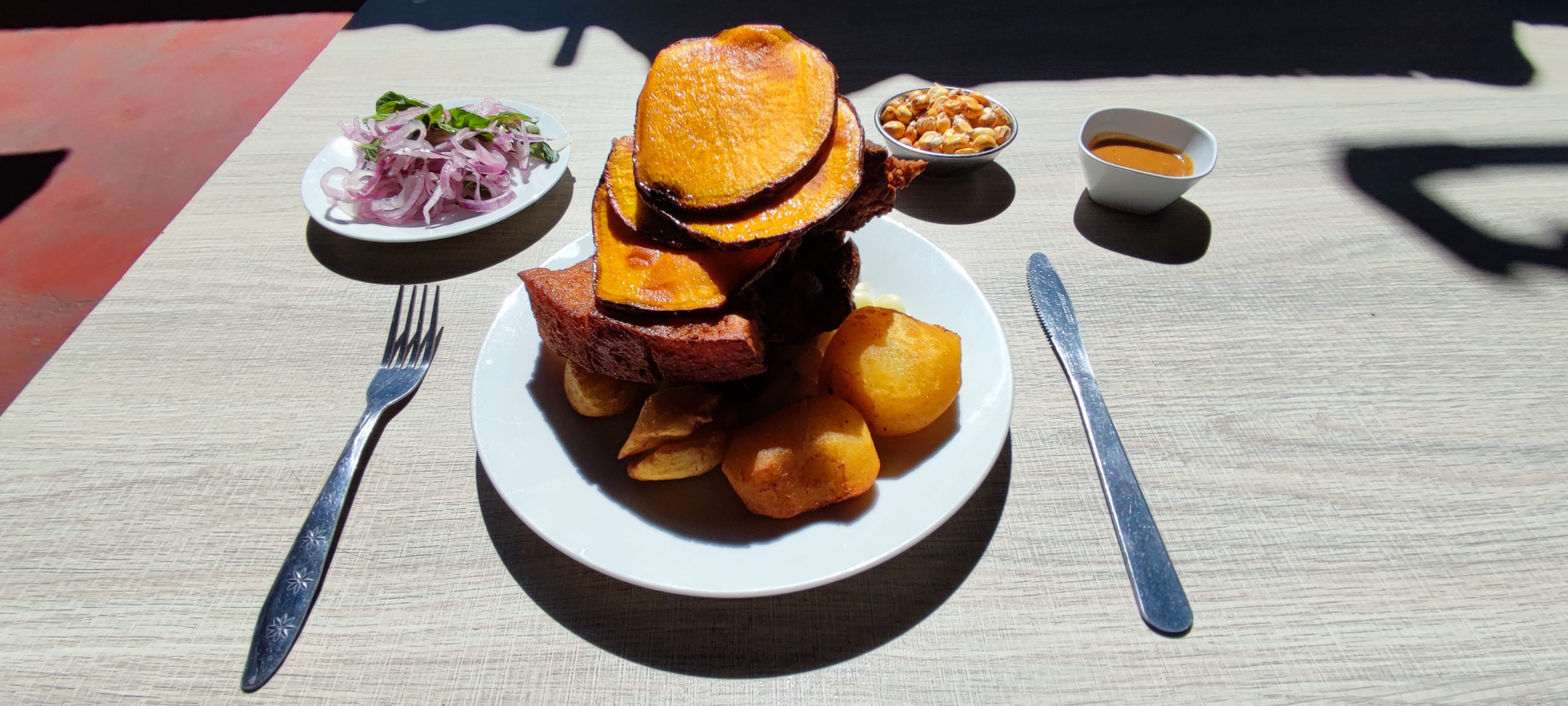Am Vormittag erledige ich ein paar Dinge und buche den Flug nach Kigali. Gleich ums Eck finde ich ein Restaurant, das auf Chicharrón spezialisiert ist und das schmeckt man. Köstlich gebratenes Schweinefleisch mit Süßkartoffel und riesigem Mais. Mjami. Satt und zufrieden gehe ich weiter zur Mundo Alpaca, einem Geschäft für Kleidung aus Alpakawolle, wo gezeigt wird, wie man die Wolle aufbereitet und verarbeitet. Im großen Garten werden auch einige Tiere gehalten, die man füttern darf. Eines sieht ziemlich crazy aus und bekommt von mir den Namen “Carlos el Loco”. 😁 Am Weg zum Mirador Yanahuara schnappe ich ein Helado Queso, das entgegen dem Namen nicht aus Käse besteht, sondern aus Vanilleeis und Kokos. Im Mercado San Camilo kaufe ich eine Packung “Schmeckt wie damals”. Nur sind sie hier in Rautenform und der Kokosraspel ist feiner. Schmecken aber trotzdem genial und die Packung ist gleich verputzt. Also zurück und noch eine gekauft.