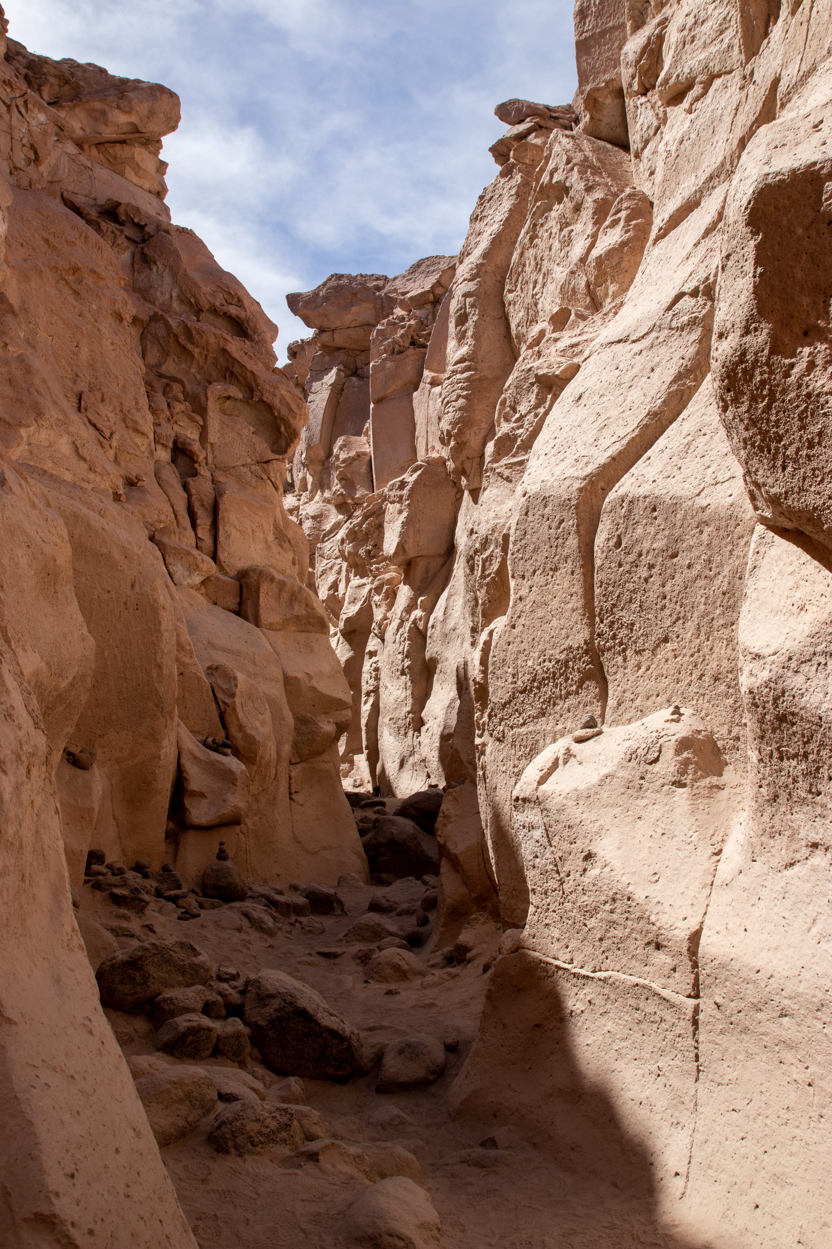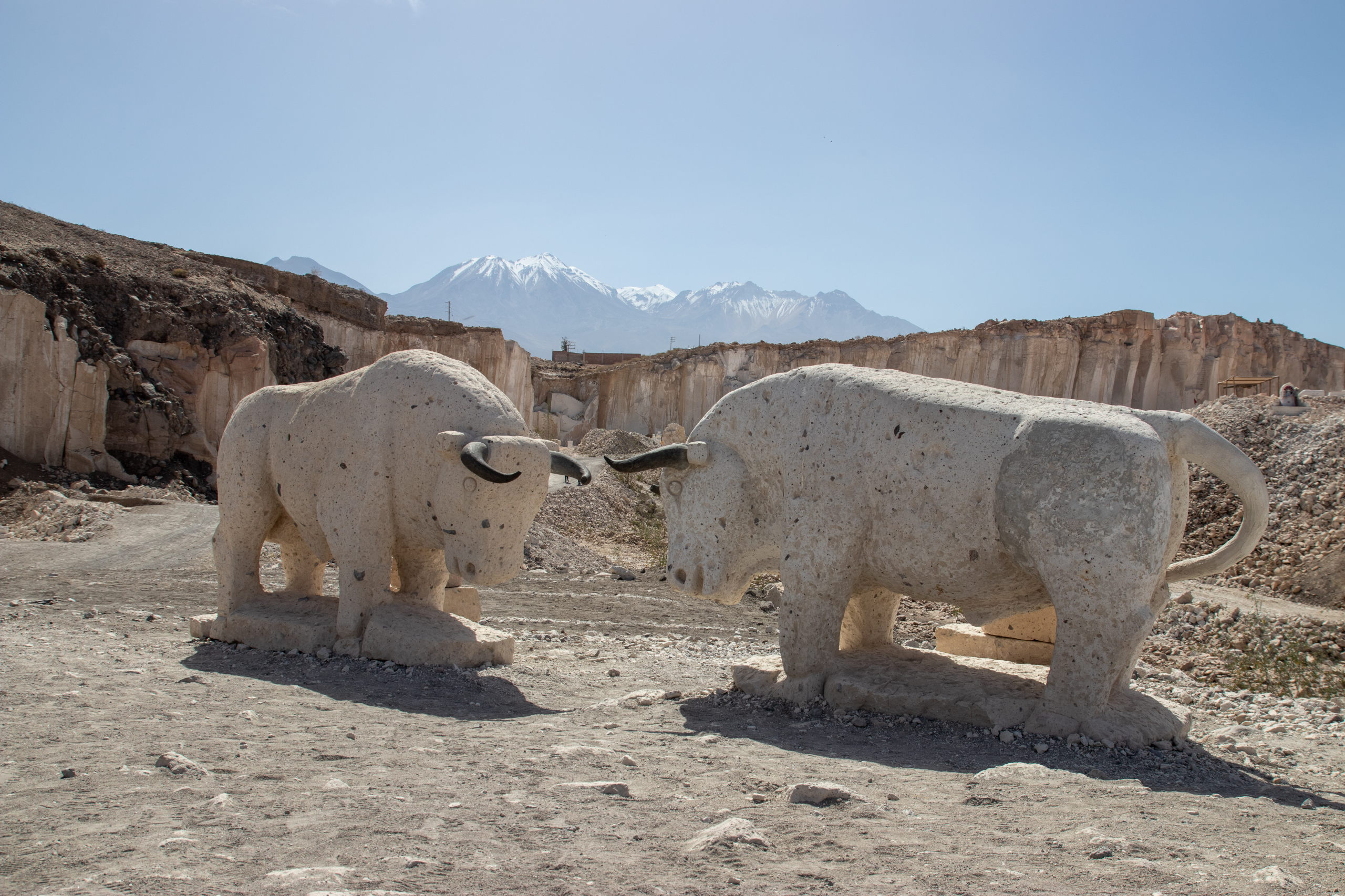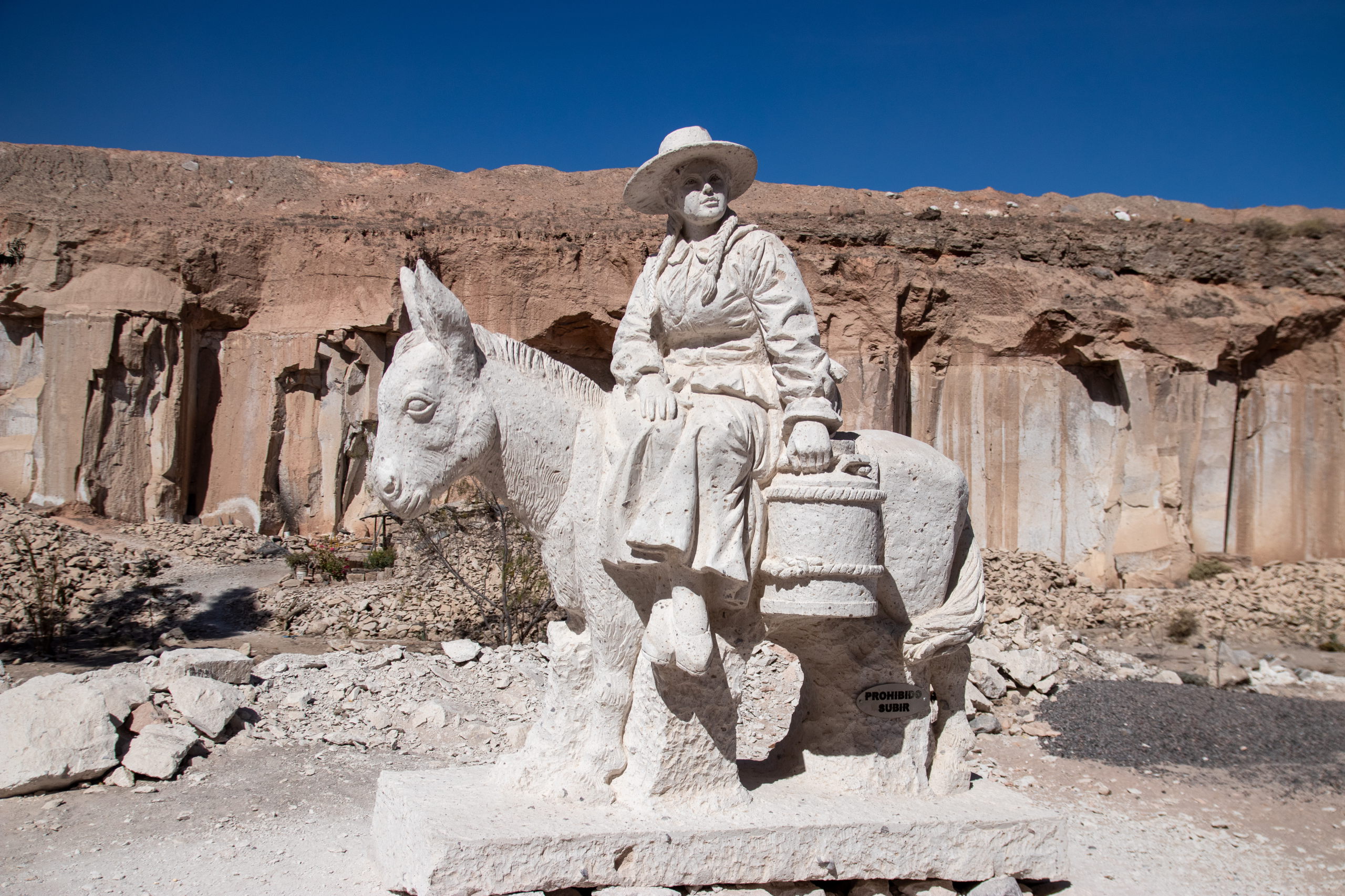 Um neun Uhr fahren wir los. Durch das Viertel Yanahuara zu einen Aussichtspunkt, von dem man die Vulkane Misti, Chachani und Picchu Picchu sehr gut sehen kann. Weiter geht es in den Steinbruch, in dem die Sillar-Blöcke auch heute noch mit der Hand geschlagen werden. Viele Häuser in Arequipa sind mit diesen weißen Steinen gebaut, weshalb die Stadt auch den Beinamen La Ciudad Blanca trägt. Auch Werke von Steinmetzen sind gegen einen kleinen Obolus zu besichtigen. Nach einer Stunde fahren wir weiter zum kleinen Canyon Quebrada de Culebrillas, der in ungefähr zwanzig Minuten durchwandert ist.