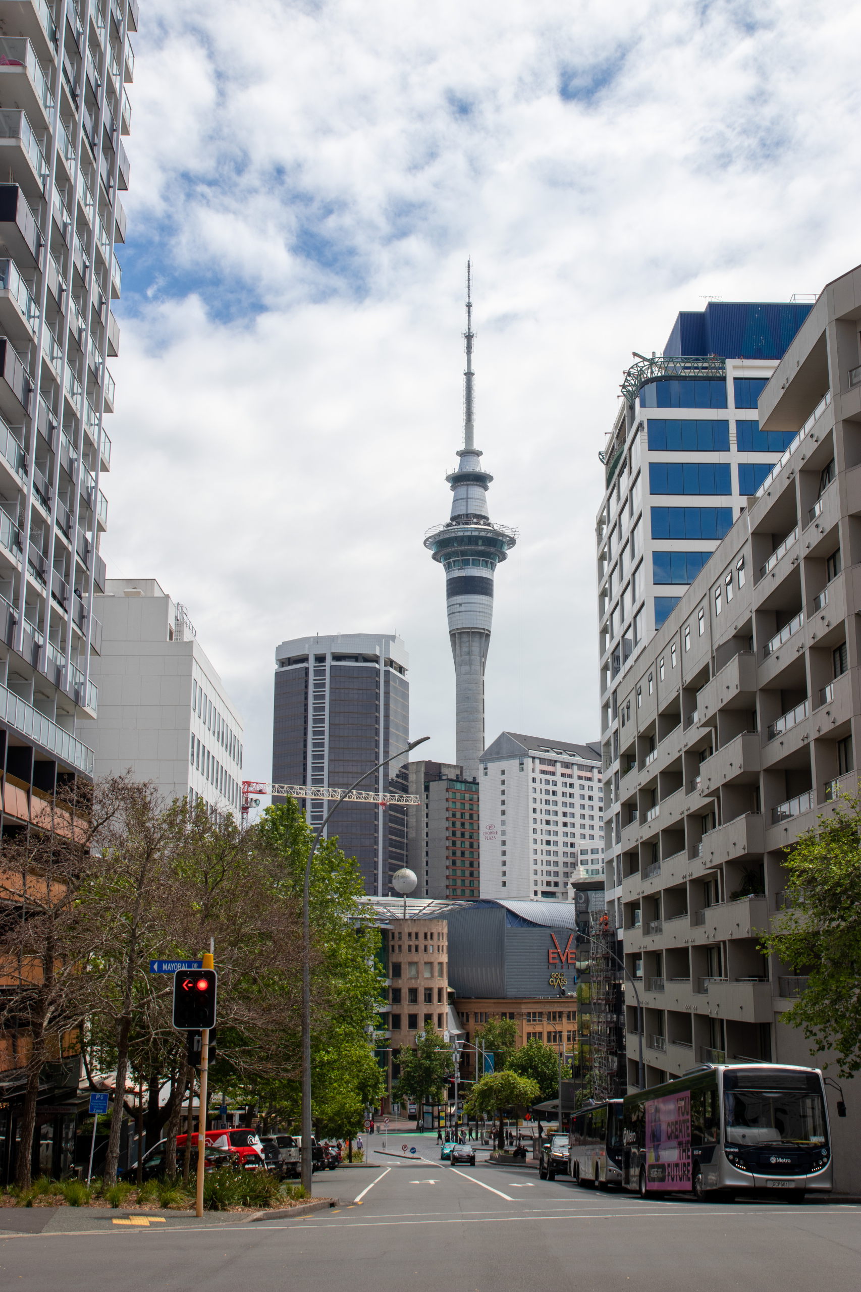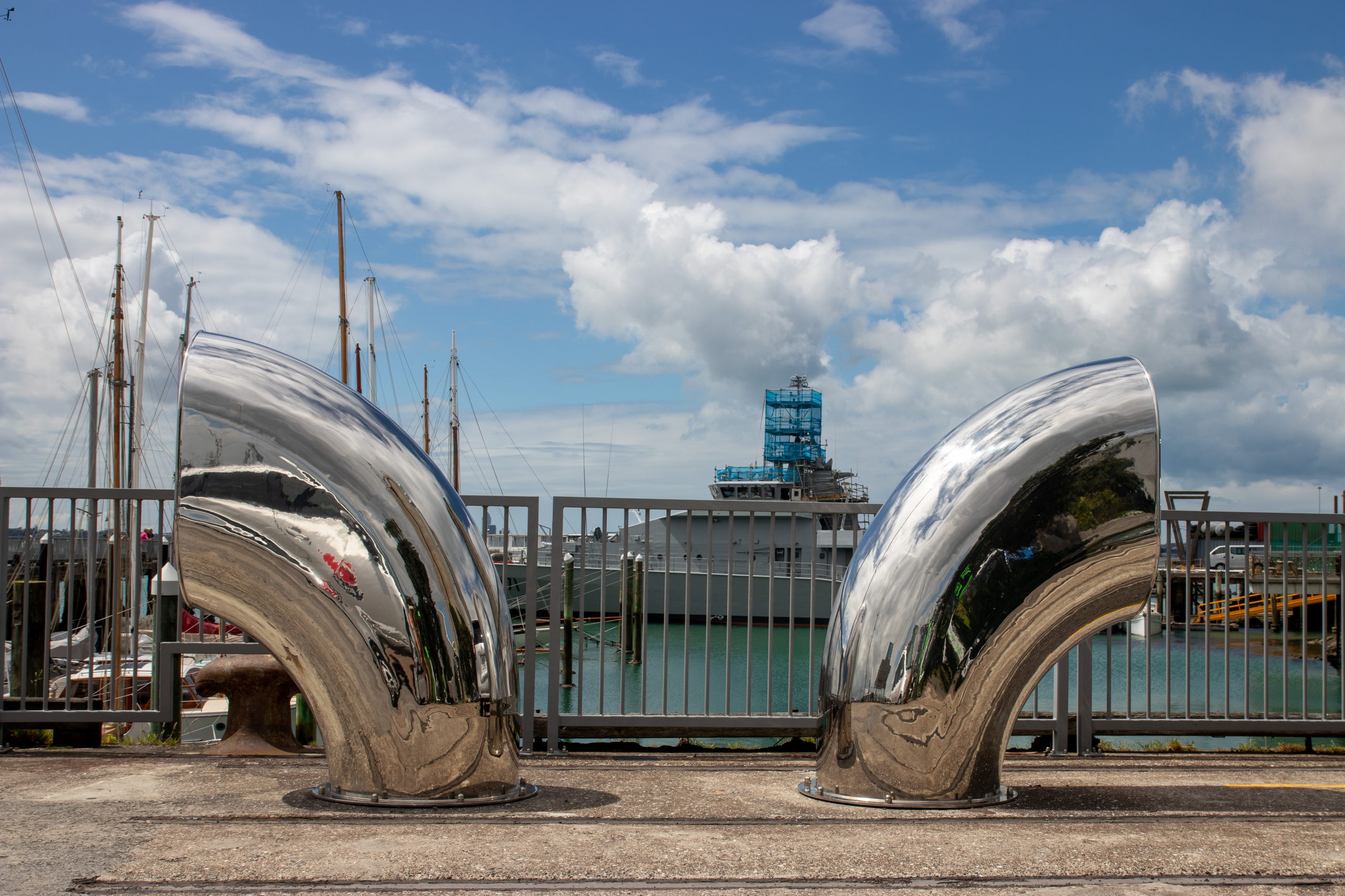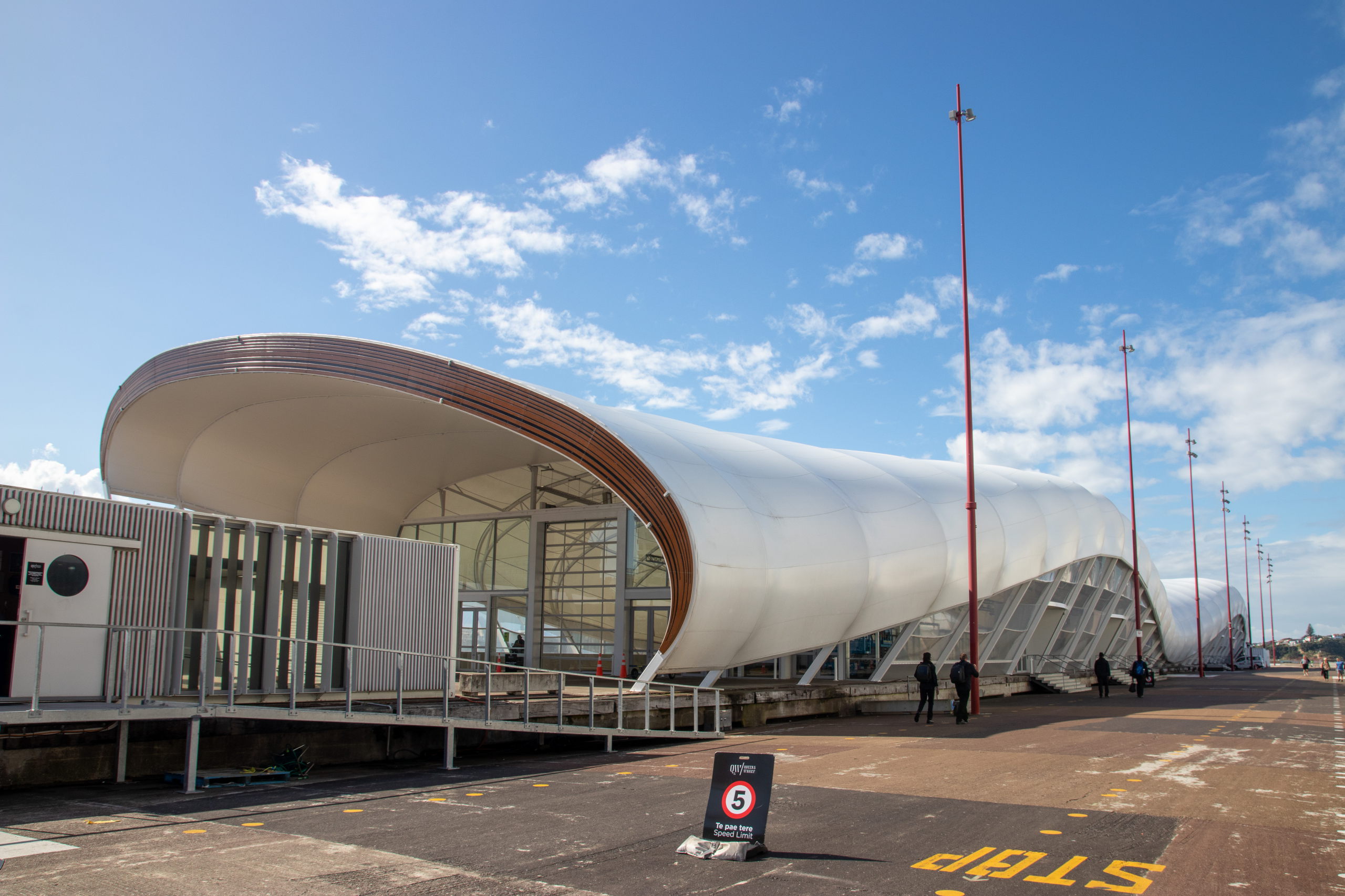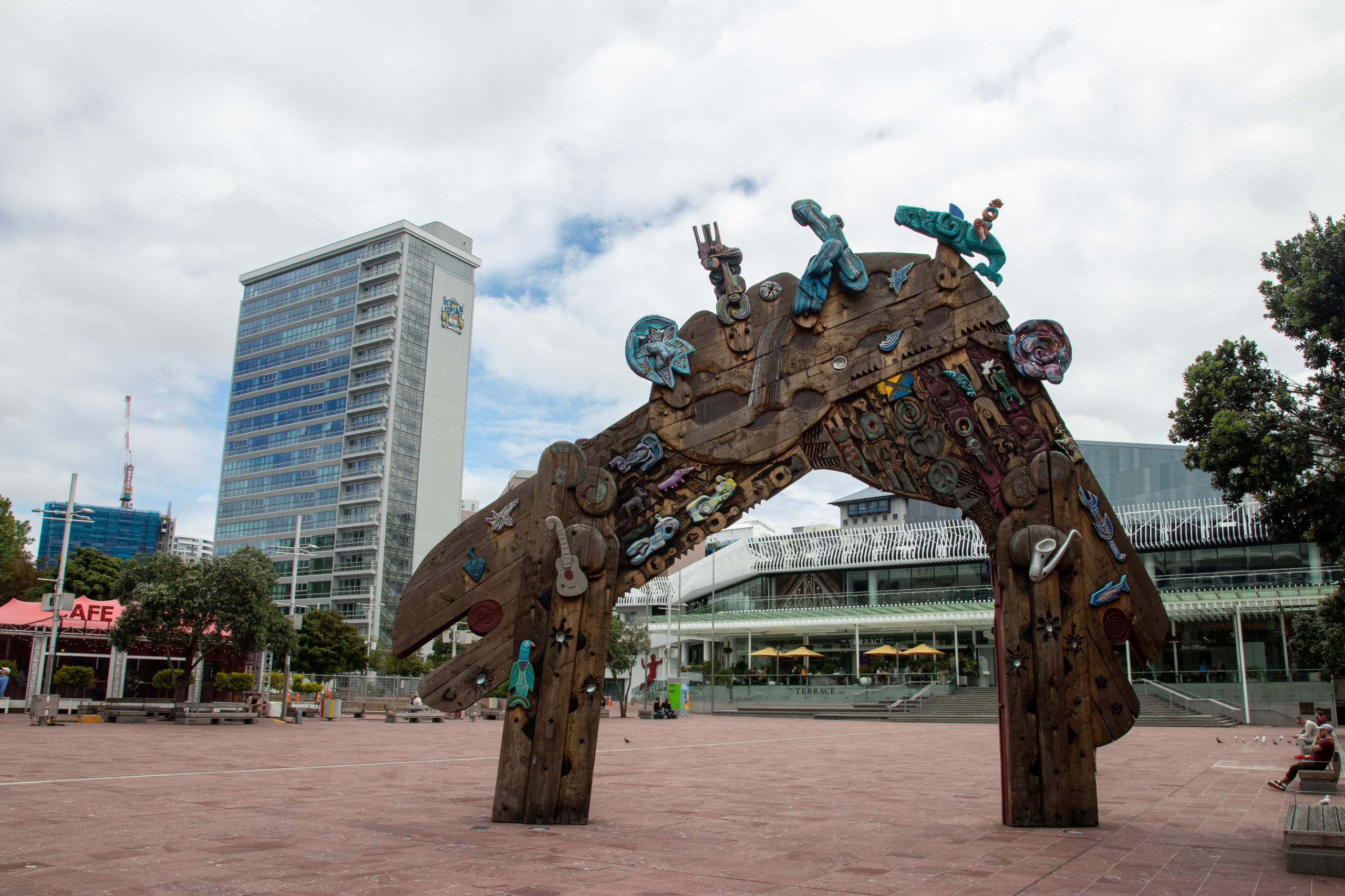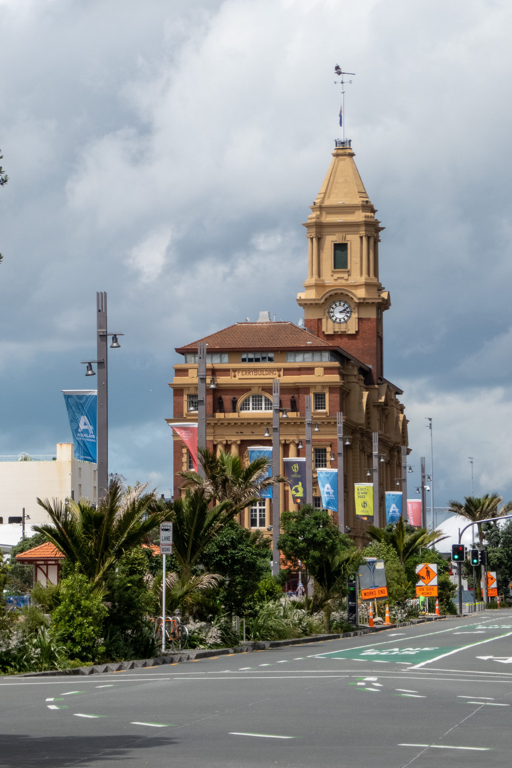 Vorbei an der Town Hall am Aotea Square geht es zur Auckland Rainbow Community Church. Immer wieder ist der Sky Tower aus der Ferne zu sehen. Aus der Nähe will er aber auch begutachtet werden. Ziemlich beeindruckend. Da das Wetter mau ist, spare ich mir die Fahrt nach oben und shoppe ein Souvenir in der Queen Street. Im Anschluss geht es zum Viaduct Harbour, mit dem Wynyard Quarter und dem Wynyard Crossing. Das riesige Kreuzfahrtschiff, das gestern noch hier parkte, ist bereits ausgelaufen. Ich schlendere der Waterfront entlang bis zur Marina, wo riesige, brandneue Segelschiffe liegen. Segeln ist in Auckland sehr beliebt, weshalb die Stadt auch den Beinamen “City of Sails” hat. Der America’s Cup wurde hier schon dreimal ausgetragen. Pünktlich zur Happy Hour um drei Uhr gönne ich mir ein köstliches Monteith’s Golden Lager und schreibe etwas für den Blog. Am Ferry Building endet meine erste Runde bei feinstem Wetter.