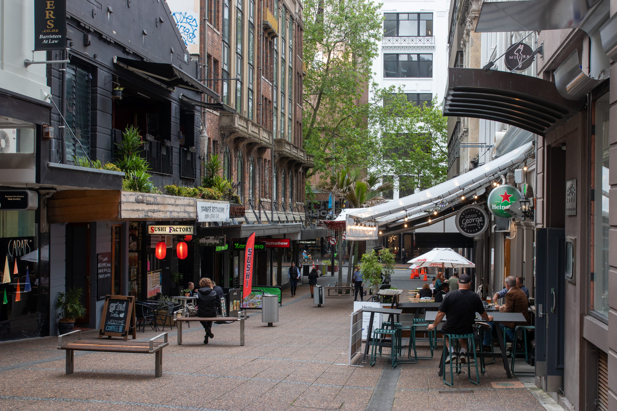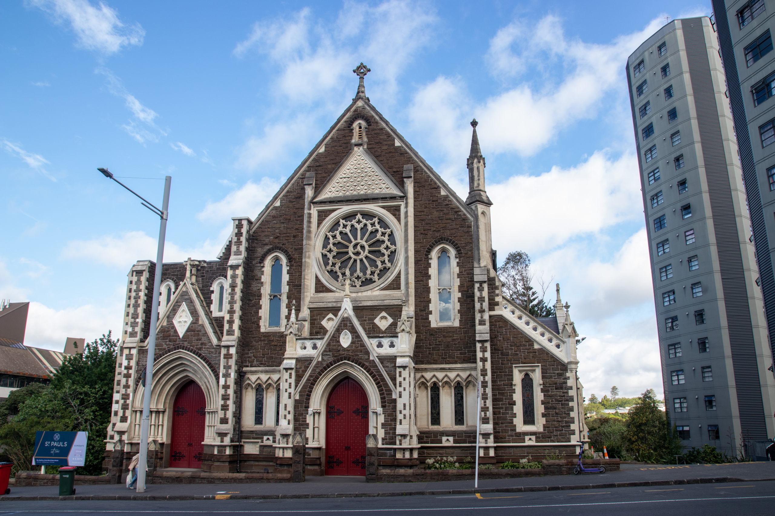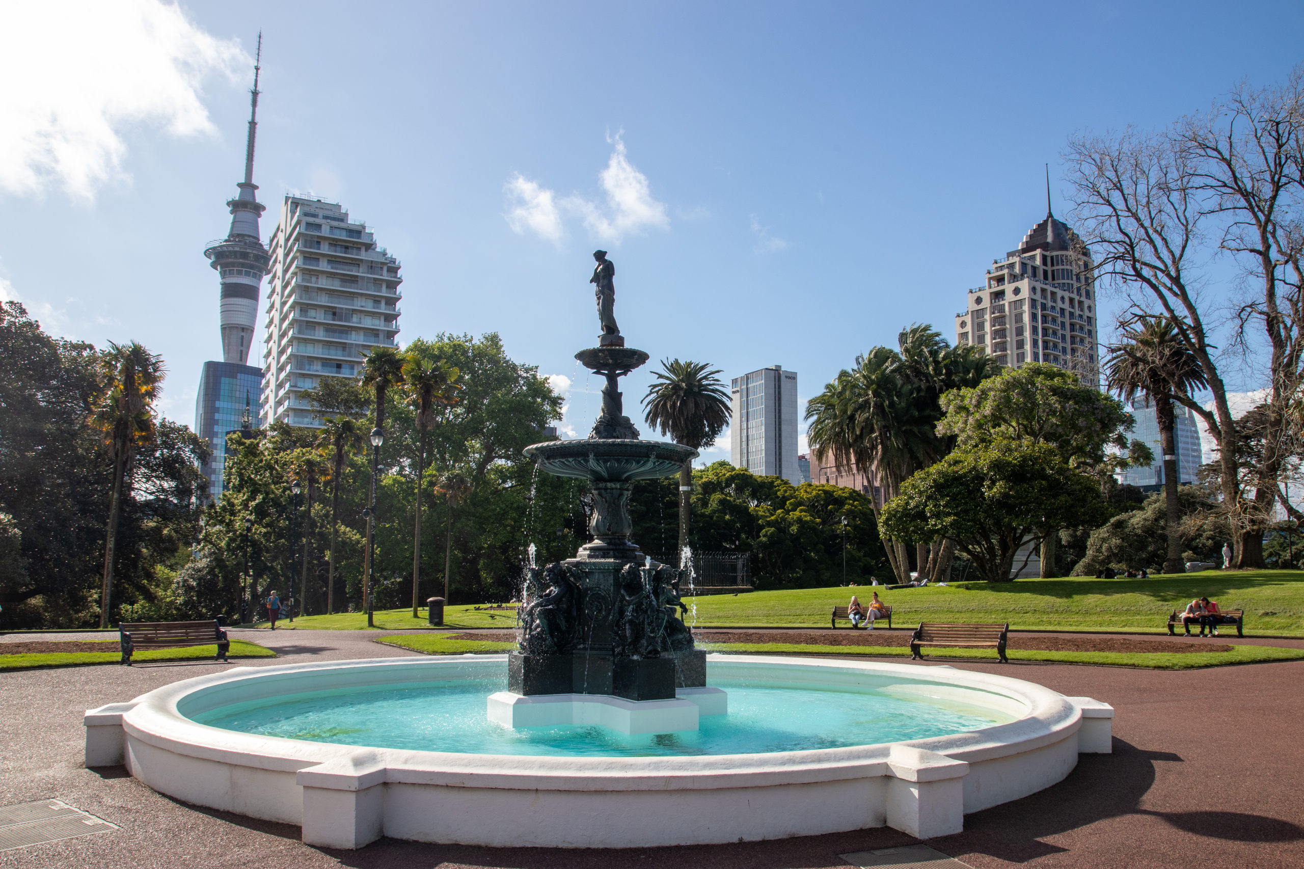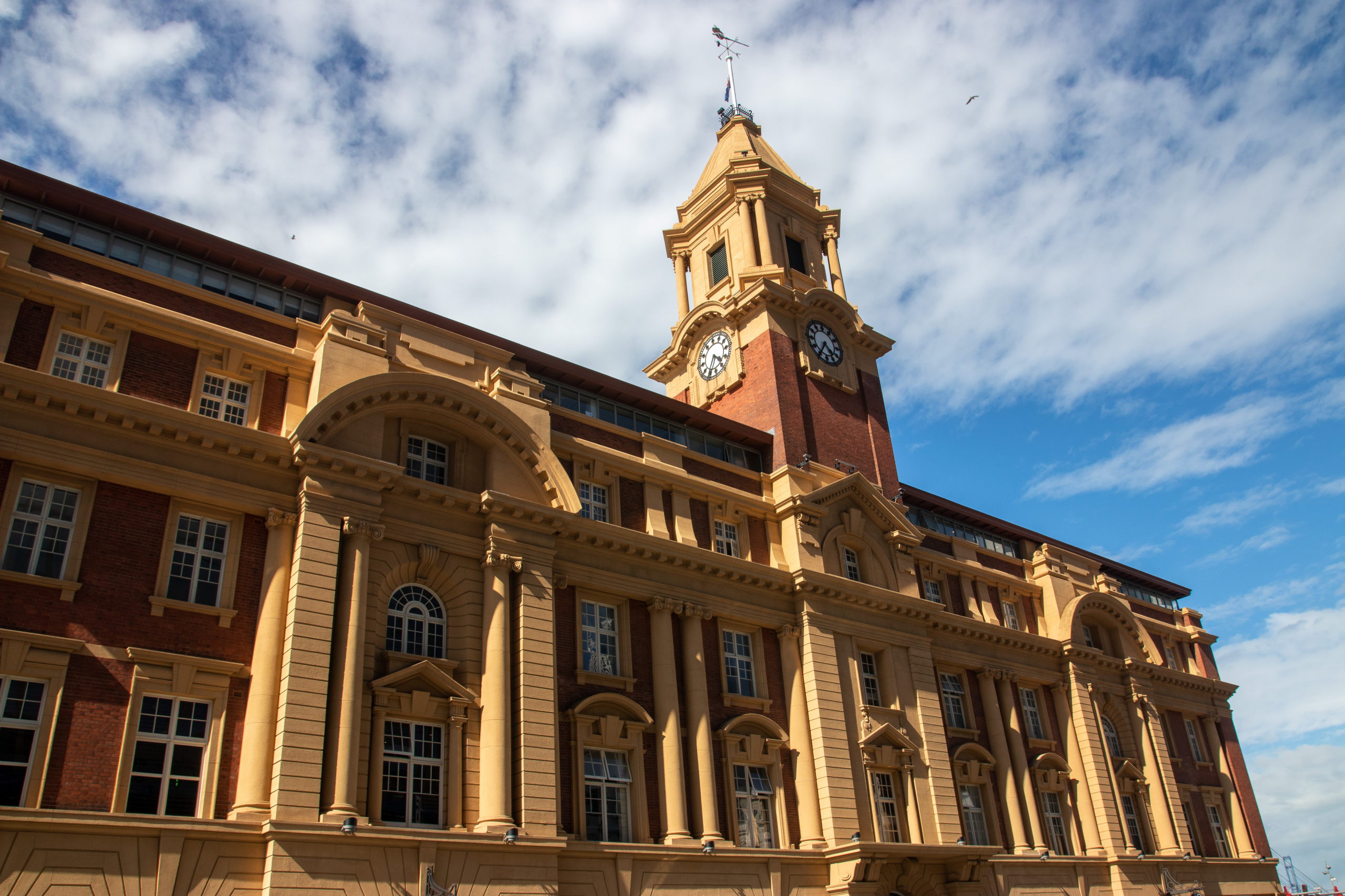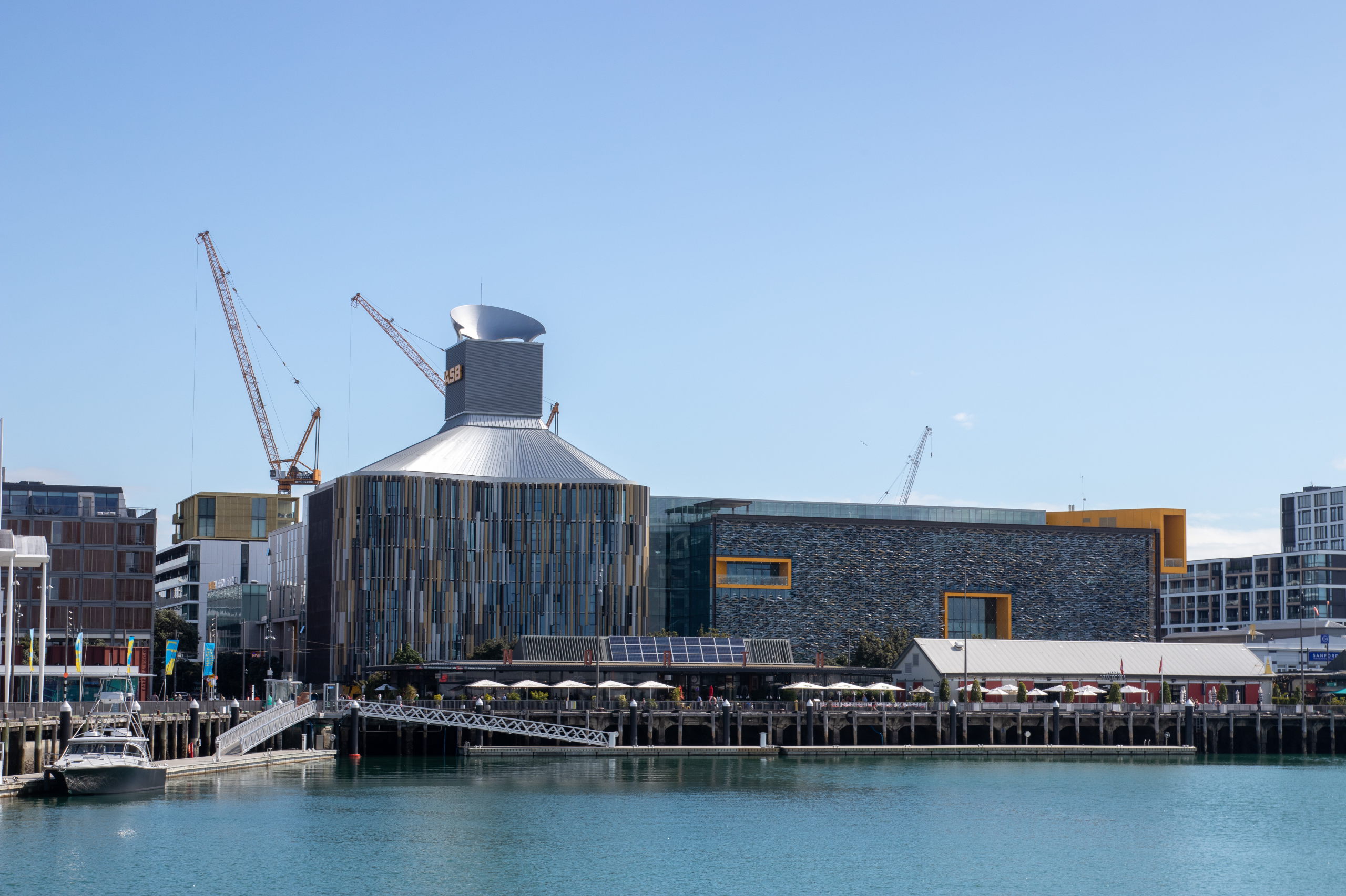 Vorbei an der Town Hall am Aotea Square geht es zur Auckland Rainbow Community Church. Immer wieder ist der Sky Tower aus der Ferne zu sehen. Aus der Nähe will er aber auch begutachtet werden. Ziemlich beeindruckend. Da das Wetter mau ist, spare ich mir die Fahrt nach oben und shoppe ein Souvenir in der Queen Street. Im Anschluss geht es zum Viaduct Harbour, mit dem Wynyard Quarter und dem Wynyard Crossing. Das riesige Kreuzfahrtschiff, das gestern noch hier parkte, ist bereits ausgelaufen. Ich schlendere der Waterfront entlang bis zur Marina, wo riesige, brandneue Segelschiffe liegen. Segeln ist in Auckland sehr beliebt, weshalb die Stadt auch den Beinamen “City of Sails” hat. Der America’s Cup wurde hier schon dreimal ausgetragen. Pünktlich zur Happy Hour um drei Uhr gönne ich mir ein köstliches Monteith’s Golden Lager und schreibe etwas für den Blog. Am Ferry Building endet meine erste Runde bei feinstem Wetter.