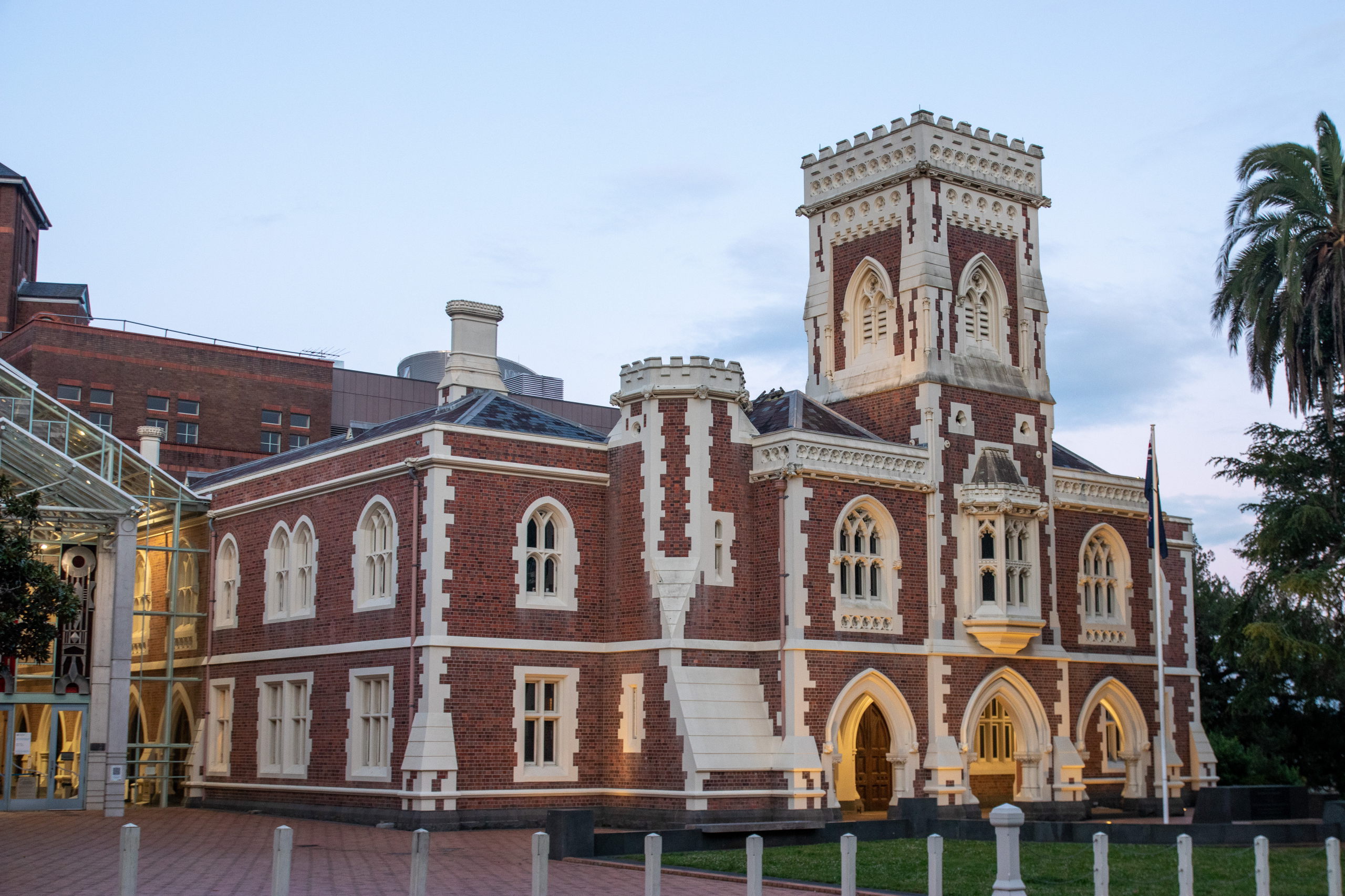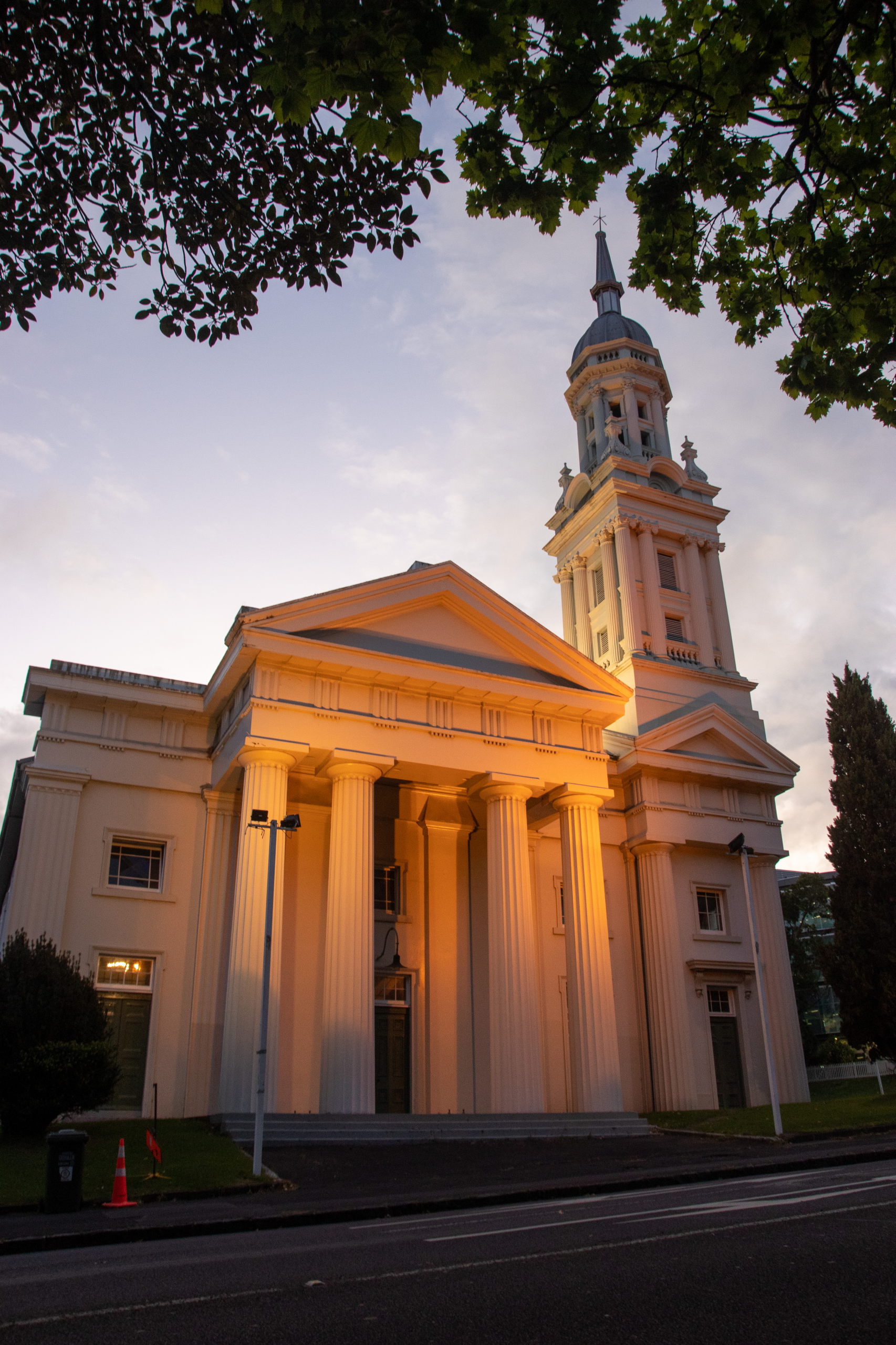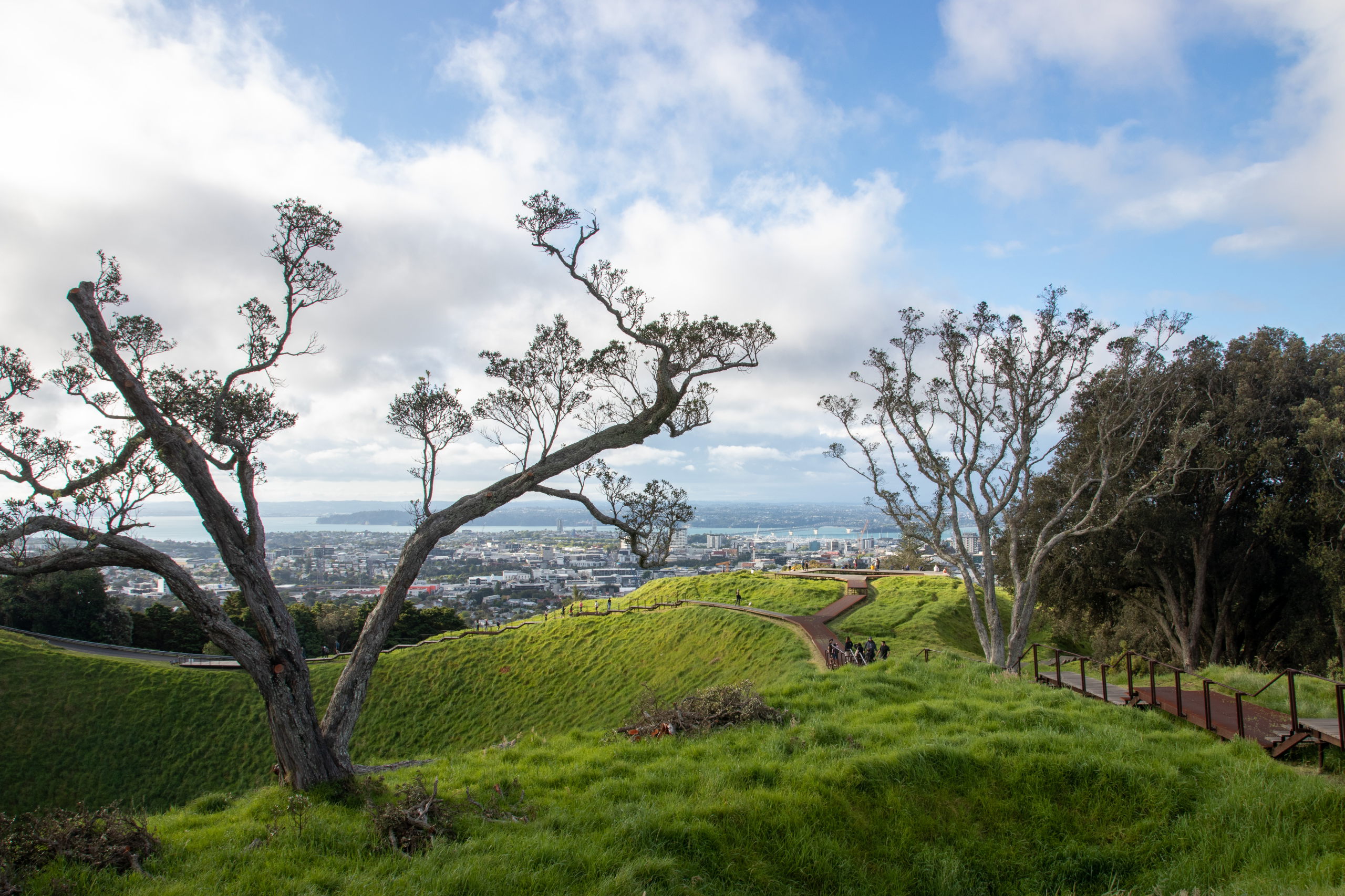 Die zweite Runde soll mich zum War Memorial Museum führen. Da sich das Wetter aber wieder verschlechtert, steuere ich direkt den Mount Eden an und hirsche quer durch die Stadt. Kurz vor sechs Uhr stehe ich am Rande eines vor langer Zeit erloschenen Vulkans und habe eine super Aussicht über Auckland. Der Hadscher hat sich echt ausgezahlt. Am Rückweg biege ich zu meinem Lieblingskoreaner in Auckland ab und esse BBQ Beef mit Gemüse. Auch nicht schlecht, aber das Essen zu Mittag war um einen Tick besser. Am Weg in die Unterkunft komme ich noch am Auckland High Court und der St. Andrews Presbyterian Church vorbei.