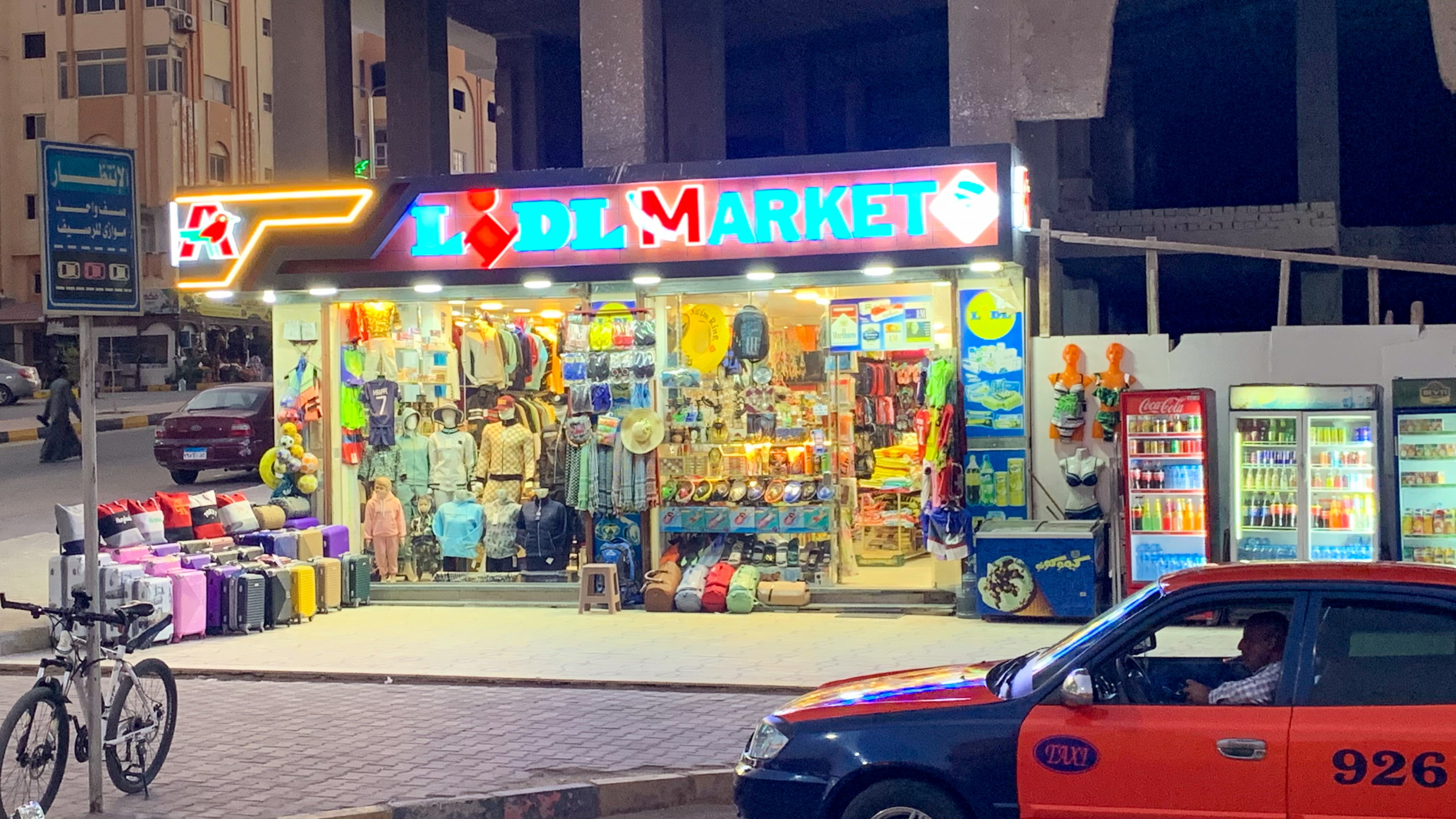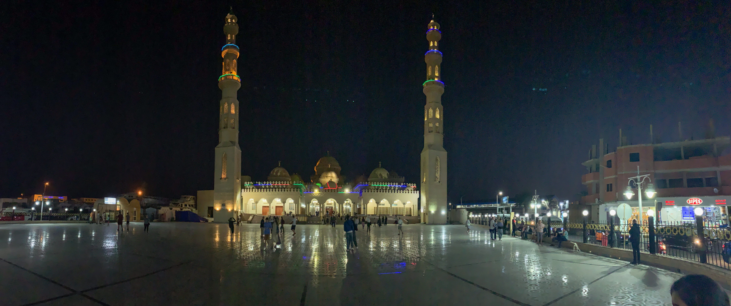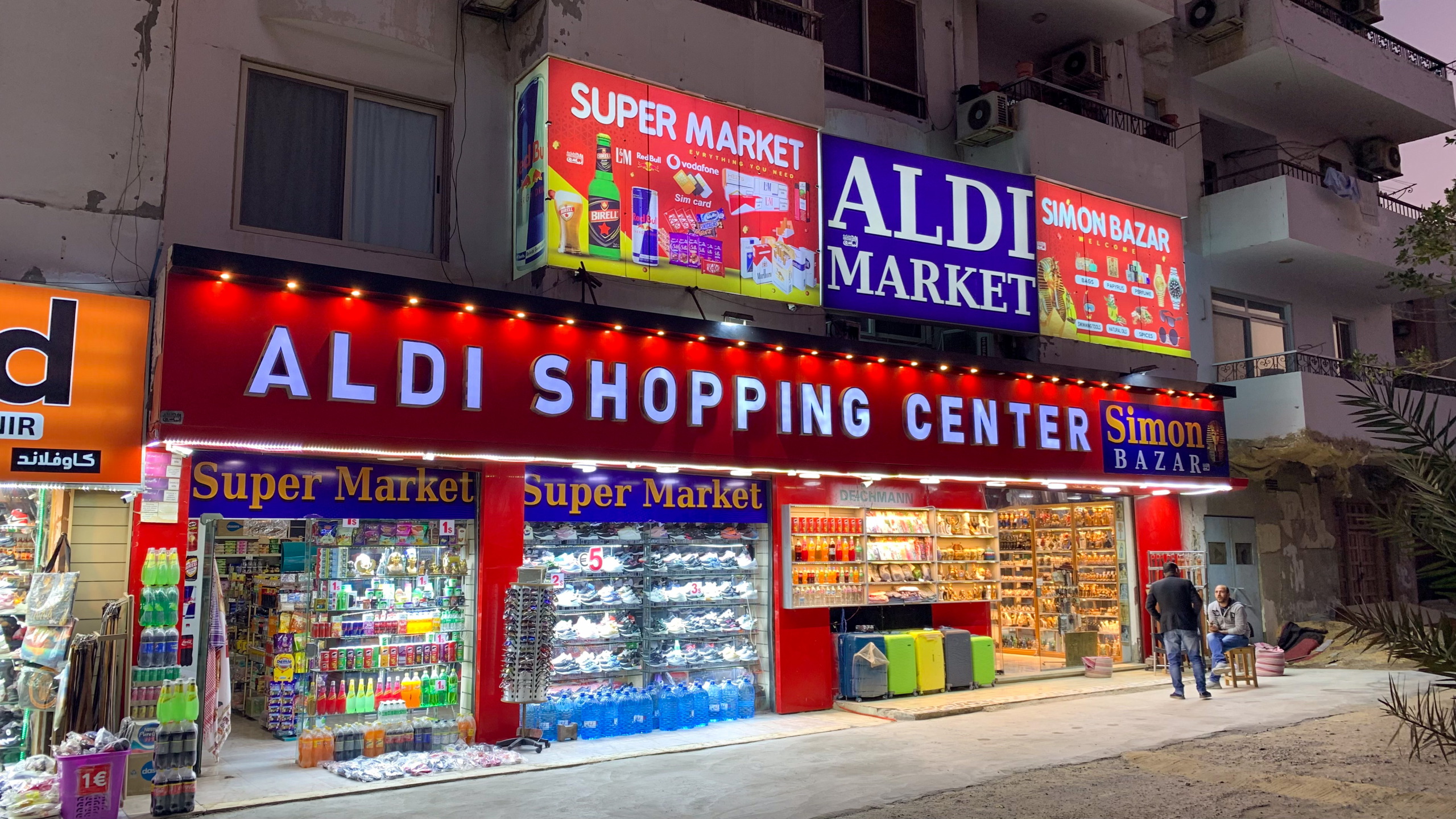 Alles erledigt, also ab zur Erkundungstour. Ich entdecke einige Fake-Shops von Lidl, Aldi und Kaufland. Tja, das nenne ich kreativ. Entlang der Straße am Meer stehen viele Ruinen und es gibt einige Baustellen. Sogar direkt am Strand. Die Sicht auf das Meer ist fast überall verbaut und nicht einmal vom Aussichtspunkt sieht man zum Strand. Vieles ist auf Russisch angeschrieben und tatsächlich sind auch viele Russen in der Stadt zu hören. Später erfahre ich, dass man mit Russisch überall in Hurghada durchkommt. In der Nähe der Al Mina Moschee weht mir der Geruch eines Outdoor-Grills in die Nase. Also rein. Die Preise sind auf arabisch angeschrieben. Und weil ich so ein netter Tourist bin, wird extra für mich der doppelte Preis aufgerufen. Danke, aber danke nein.