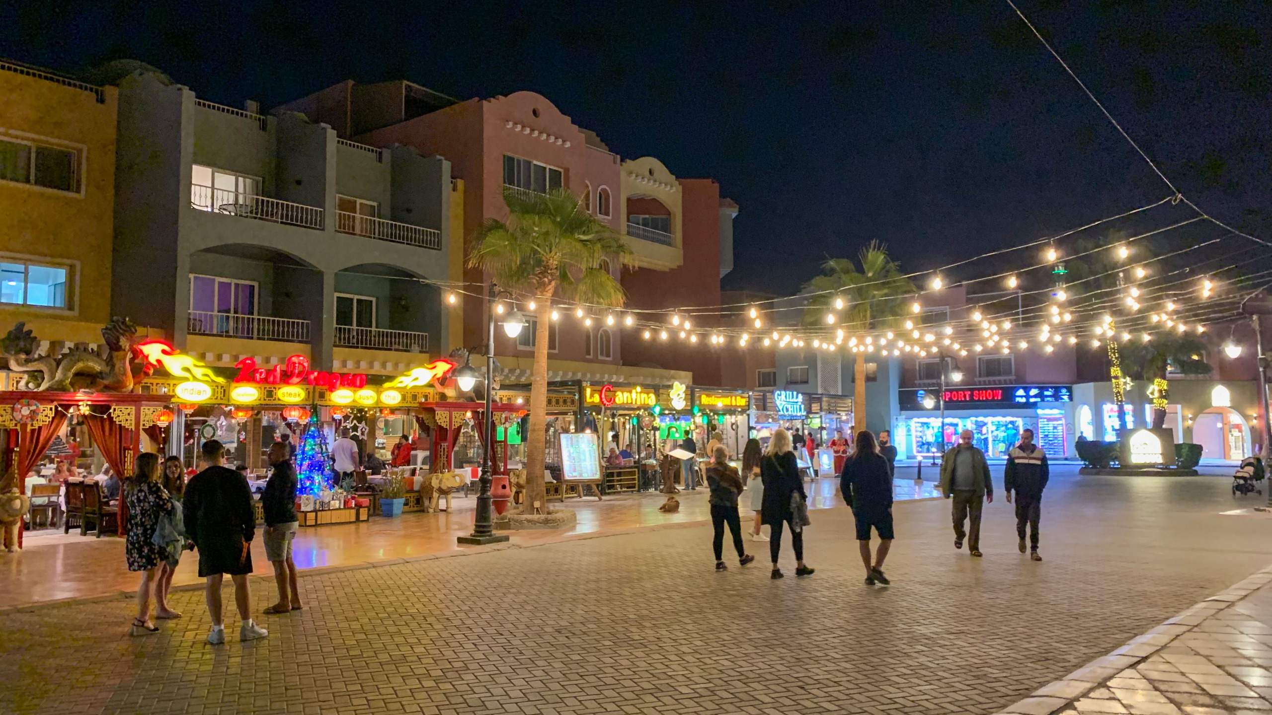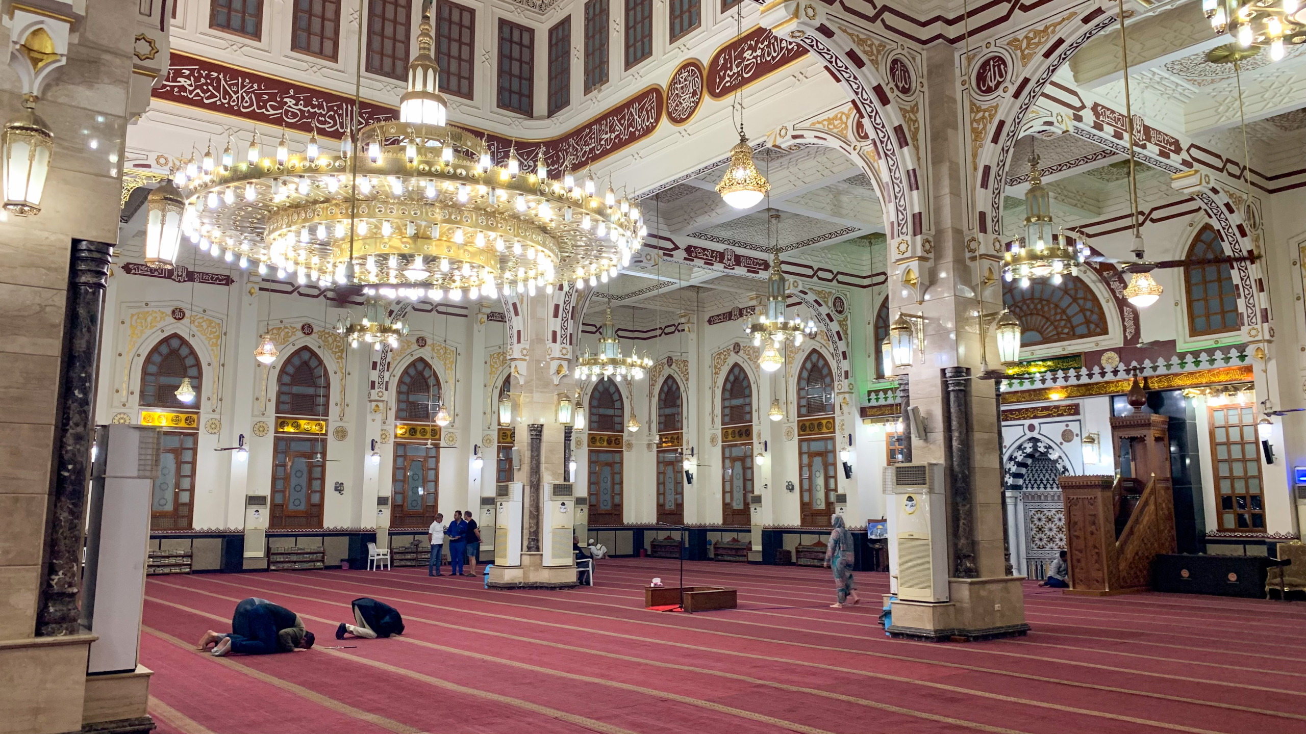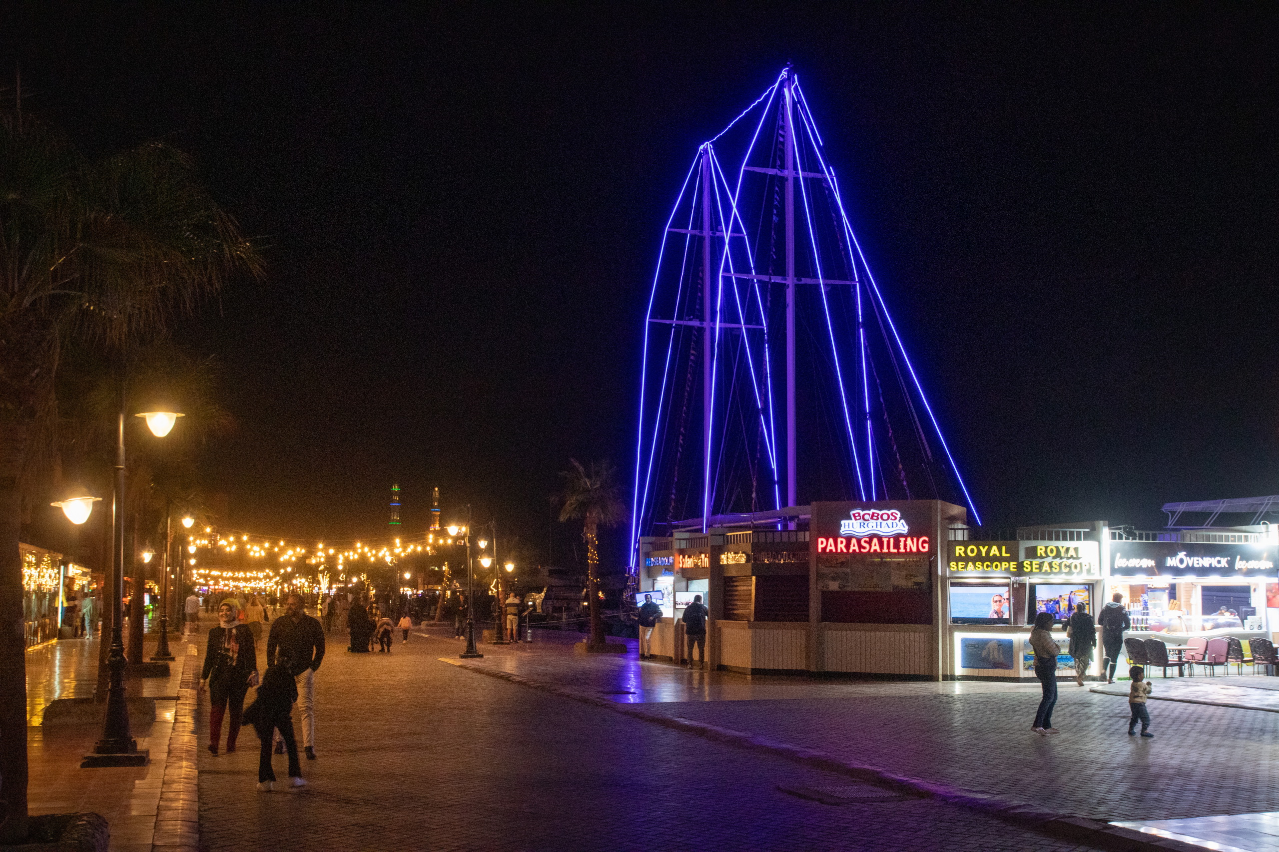 Gegenüber besuche ich die Al Mina Moschee, die besonders durch Ihre schönen Luster beeindruckt, die das Innere schön hell erleuchten. Wieder einmal kann ich die friedliche Stimmung genießen. Nicht ganz so friedlich geht es am nahegelegenen Fischmarkt zu. Hier wird wie üblich die Ware lautstark angepriesen. Noch ein Stück weiter gelange ich zur Marina. Hier gibt es nicht nur viele Boote und Restaurants, sondern auch Informationsstände zu den Aktivitäten am Wasser. Interessanterweise ist hier alles teurer, als über die üblichen Tourenportale im Internet. Das kenne ich eigentlich umgekehrt. Dann wird mir klar, warum. Es wird der Schwarzmarktkurs zum Umrechnen verwendet. Na dann buche ich eben online. Gemütlich schlendere ich dem Wasser entlang und fahre im Anschluss zurück zum Hotel.