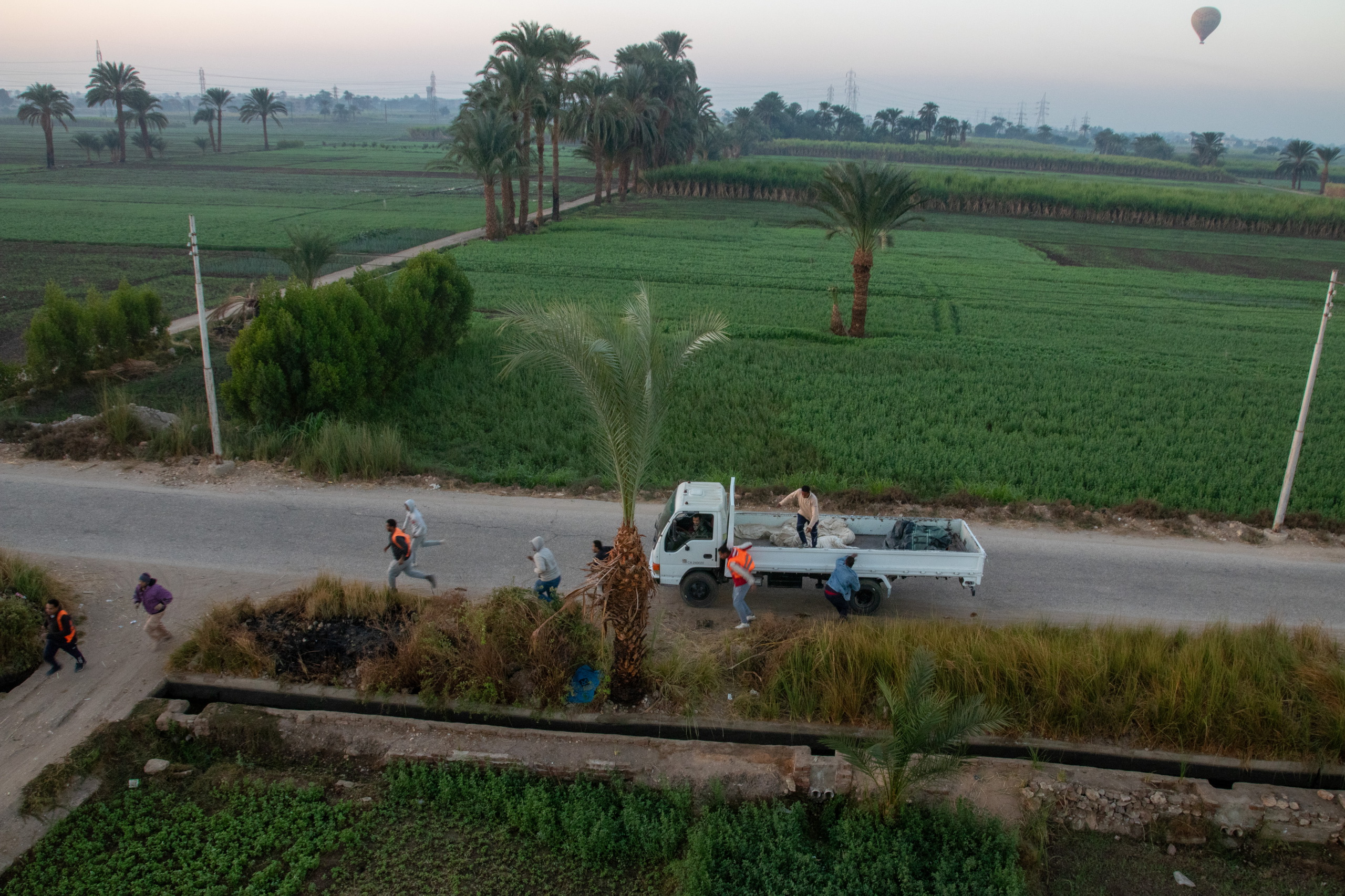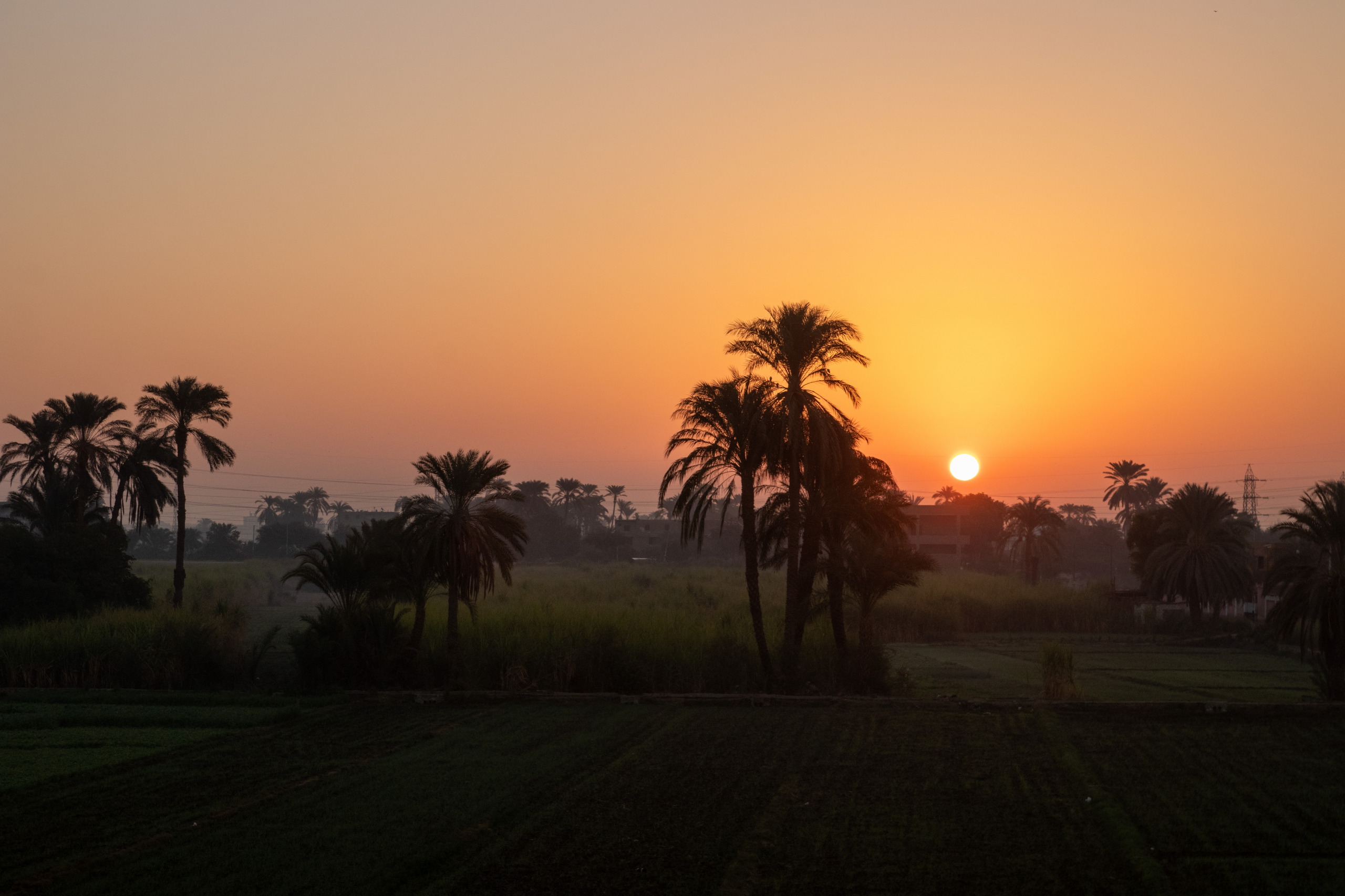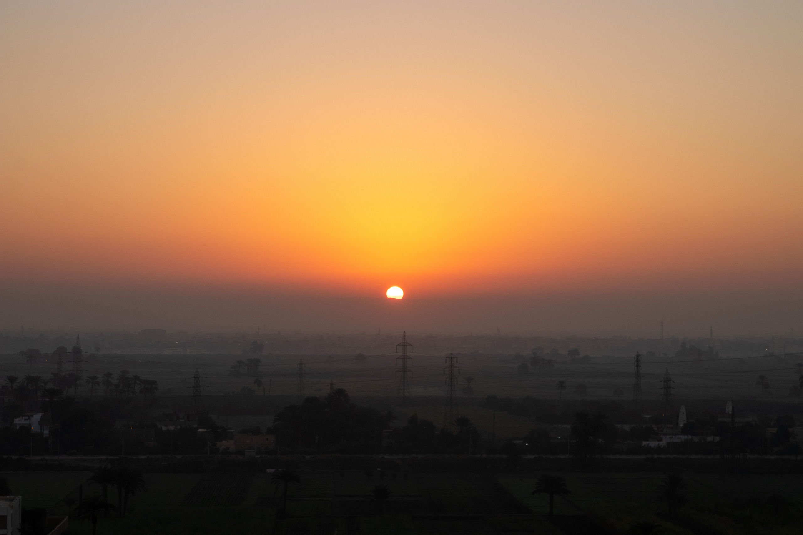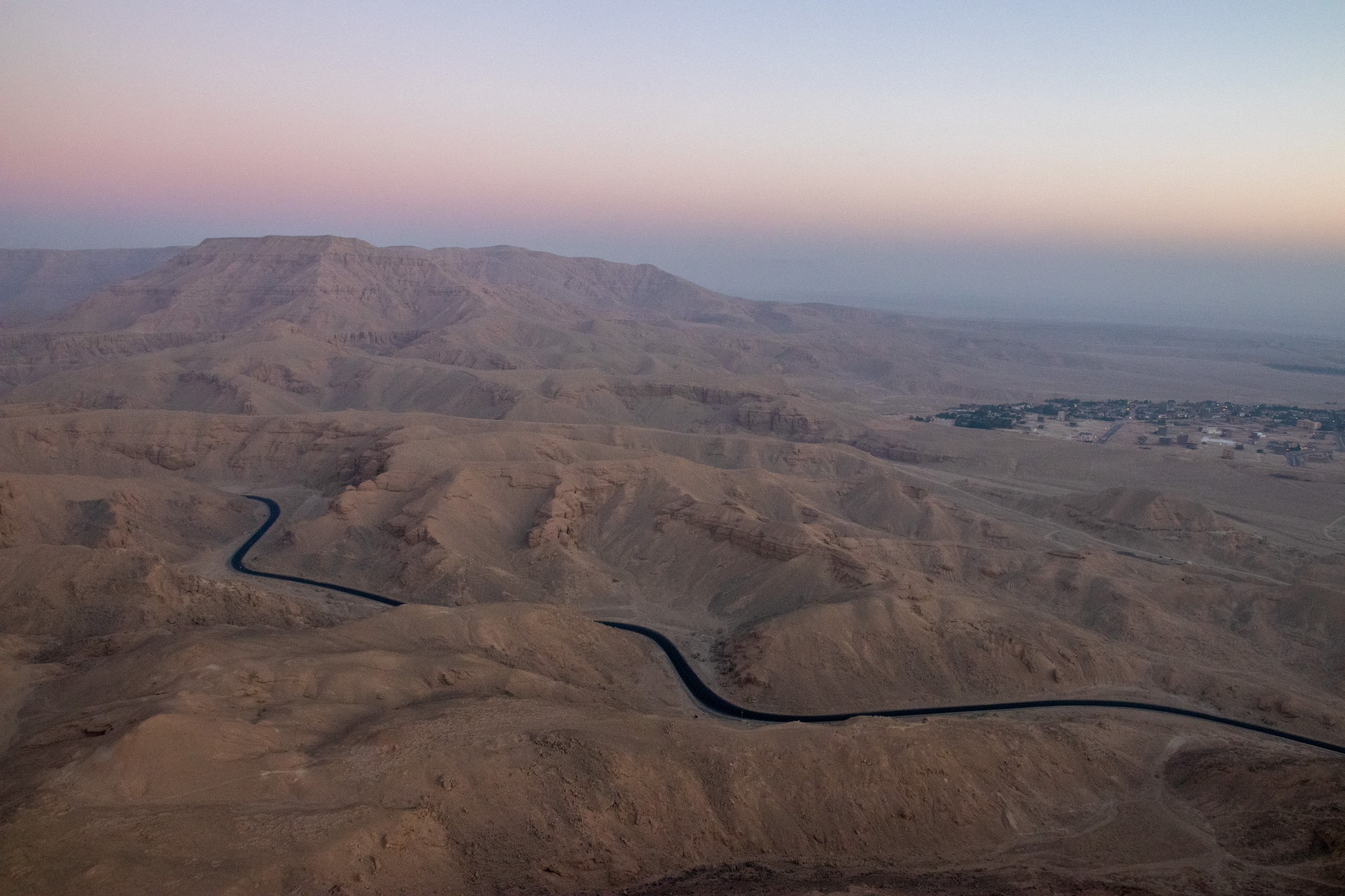 Nach einem kurzen Briefing mit allen notwendigen Informationen, werden die 28 Leute in 3er- und 4er- Gruppen eingeteilt. Um Punkt sechs Uhr gibt es das finale Go und die Gebläse werden angeworfen. Nachdem die Ballons fast voll sind, wird noch ordentlich mit riesigen Gasflammen eingeheizt. Kurz darauf werden wir zum riesigen Korb gebracht und jede Gruppe klettert in ihr eigenes Abteil mit Griffen für eine möglicherweise ruppige Landung. Es wackelt etwas, als sich der Ballon zu heben beginnt, da er noch von der Bodencrew unten gehalten wird. Sowie sie ihn freigeben, heben wir sanft ab, ohne es zu spüren. Ziemlich knapp an einem anderen Ballon vorbei, gewinnen wir schnell an Höhe mit fantastischer Sicht über die Thebanische Nekropole.