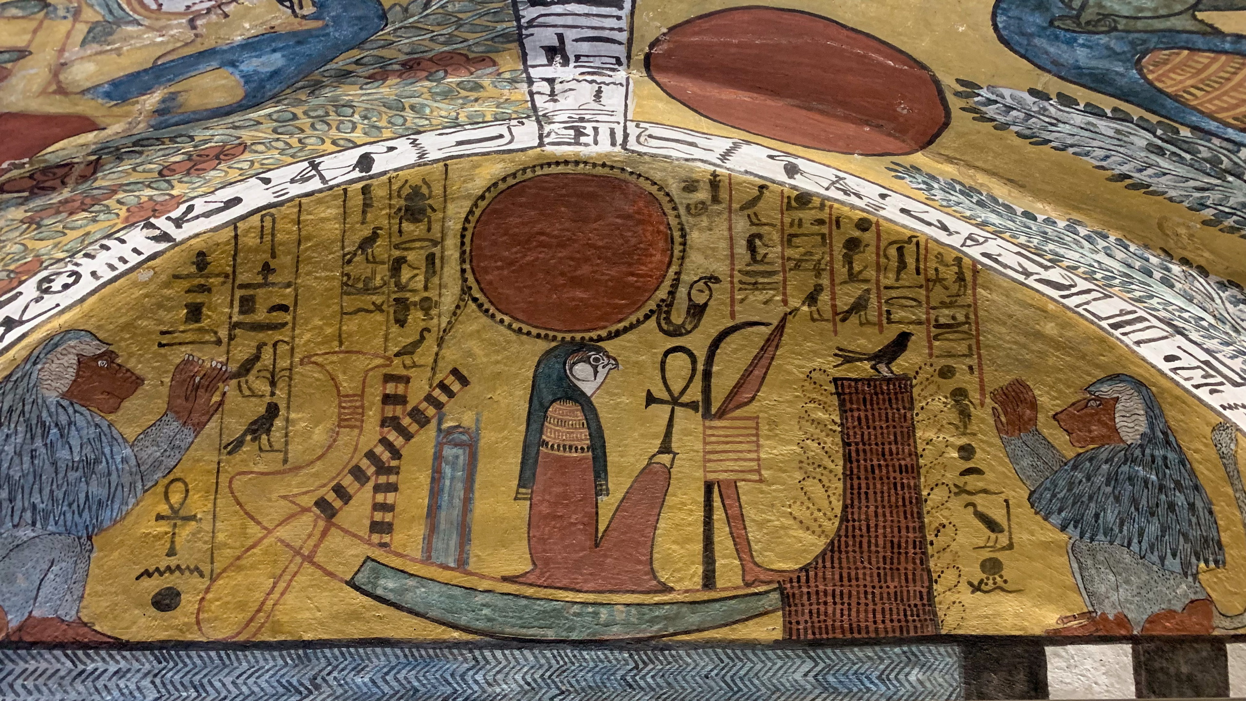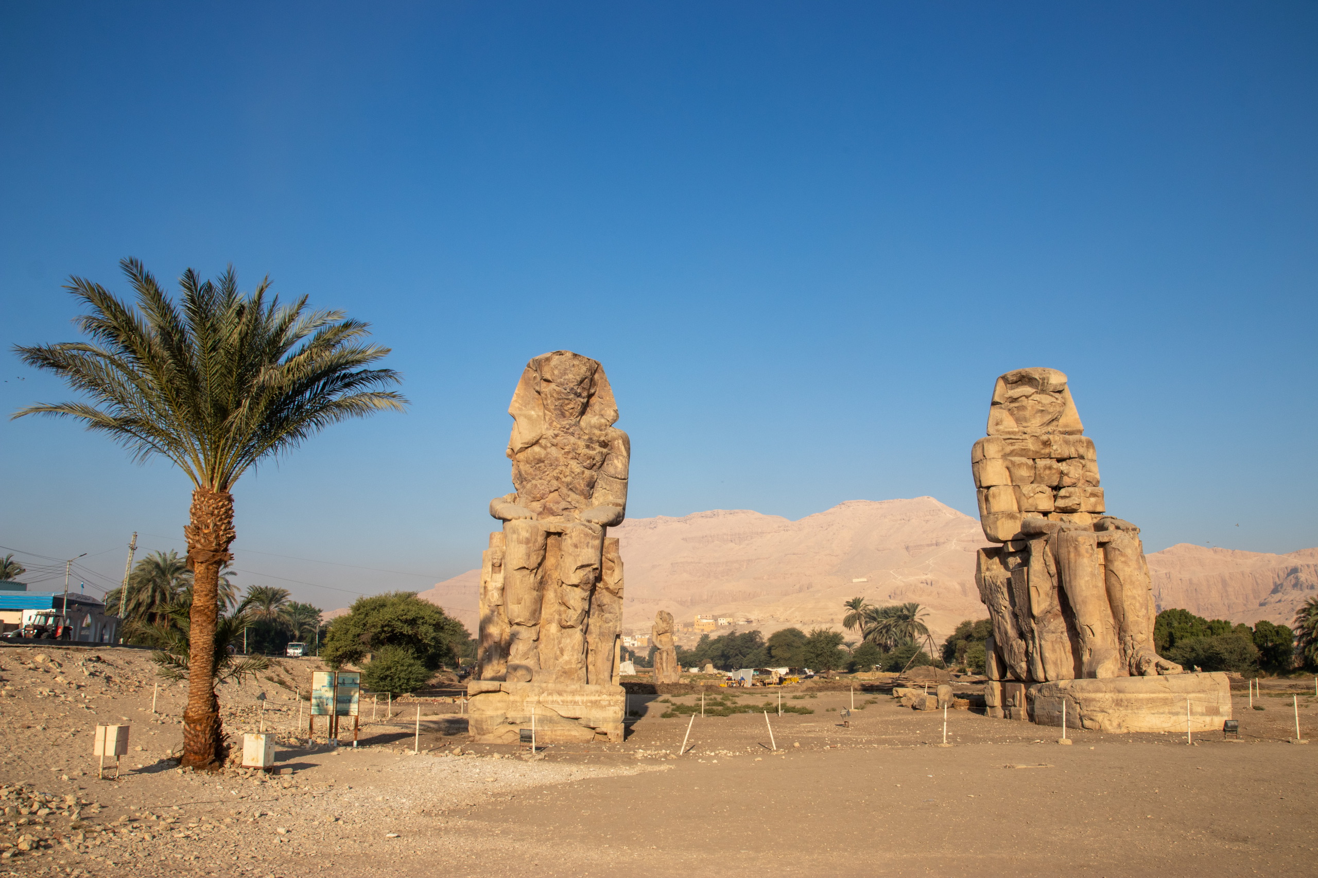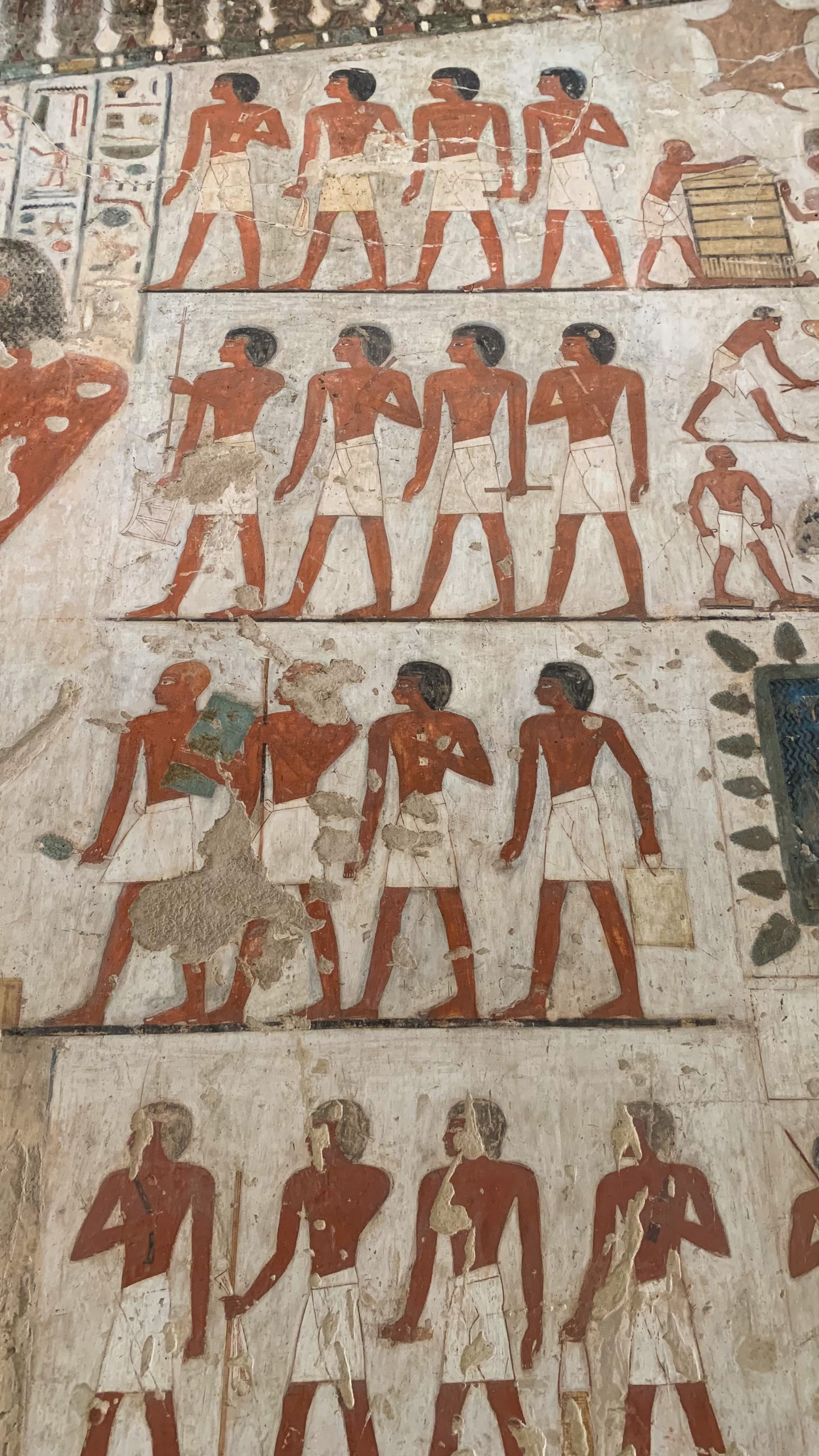 Nach genau einer Stunde radle ich weiter zum Tal der Noblen, wo etwas verstreut die Grabkammern von Mitgliedern der oberen Klasse zu besichtigen sind. Zuerst geht es in die Grabkammer des Menna und im Anschluss in die wunderschön mit Weinranken verzierte Kammer des Sennofer. Besonders interessant sind die Wandmalereien mit wilden Tieren Afrikas in der Kammer des Rekhmire. Und zuletzt wird noch der Grabkammer des Nakht ein kurzer Besuch abgestattet.