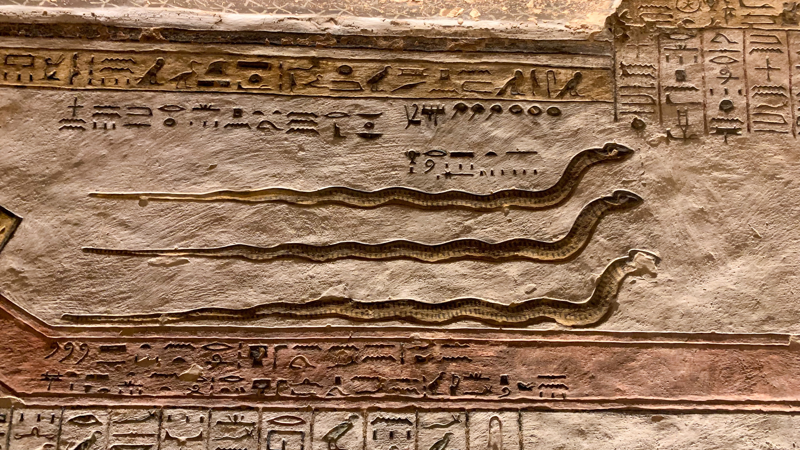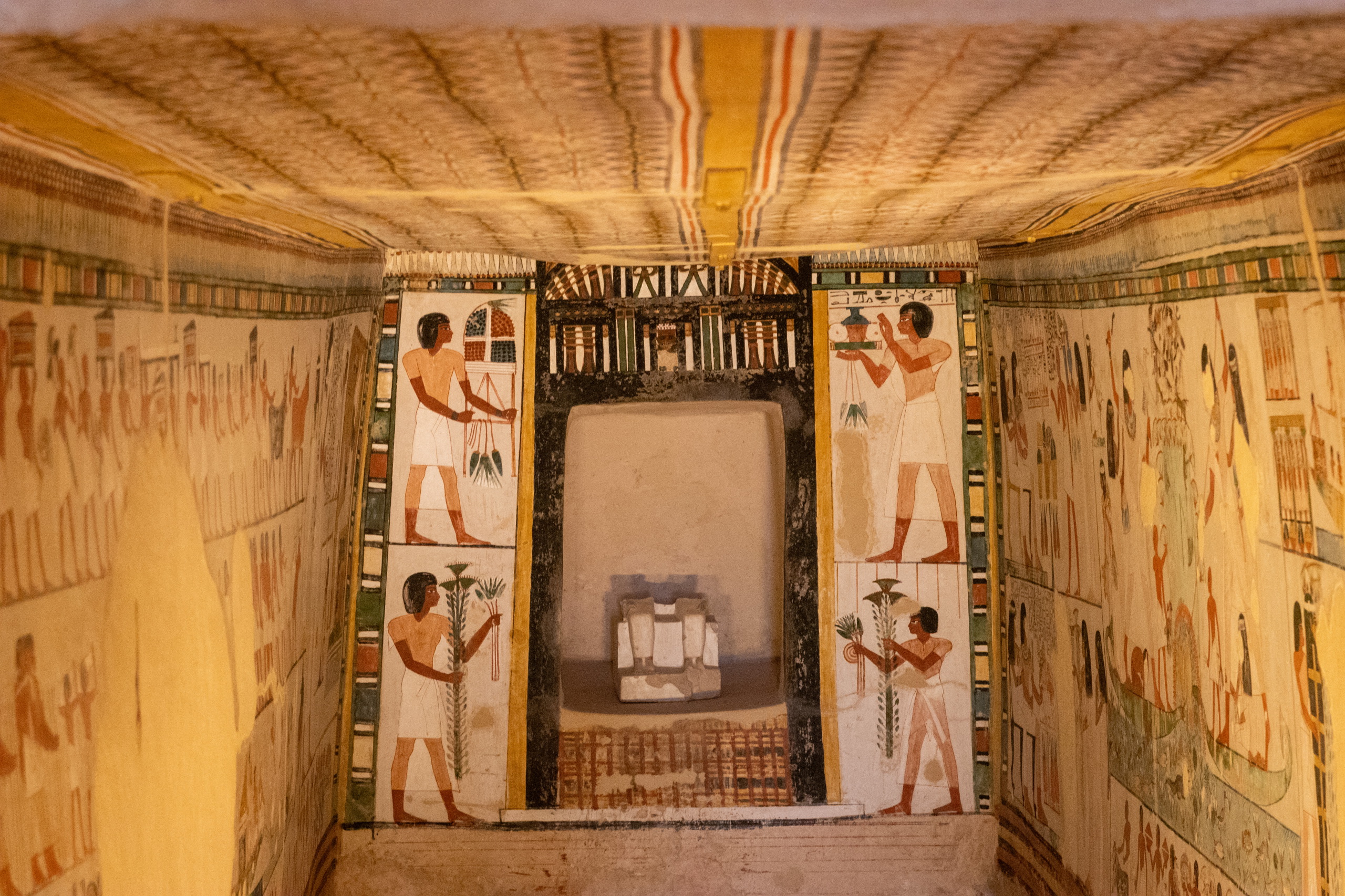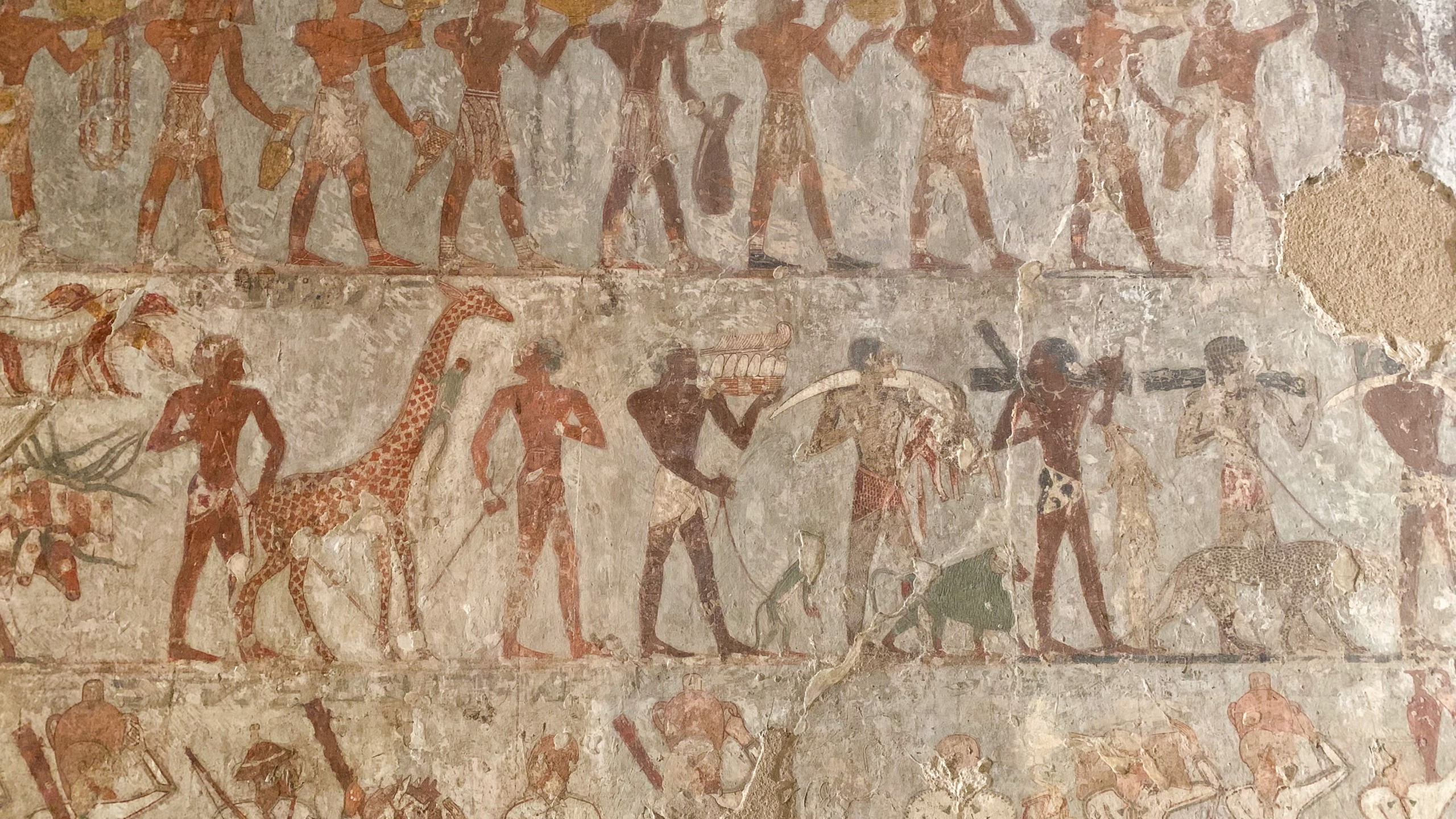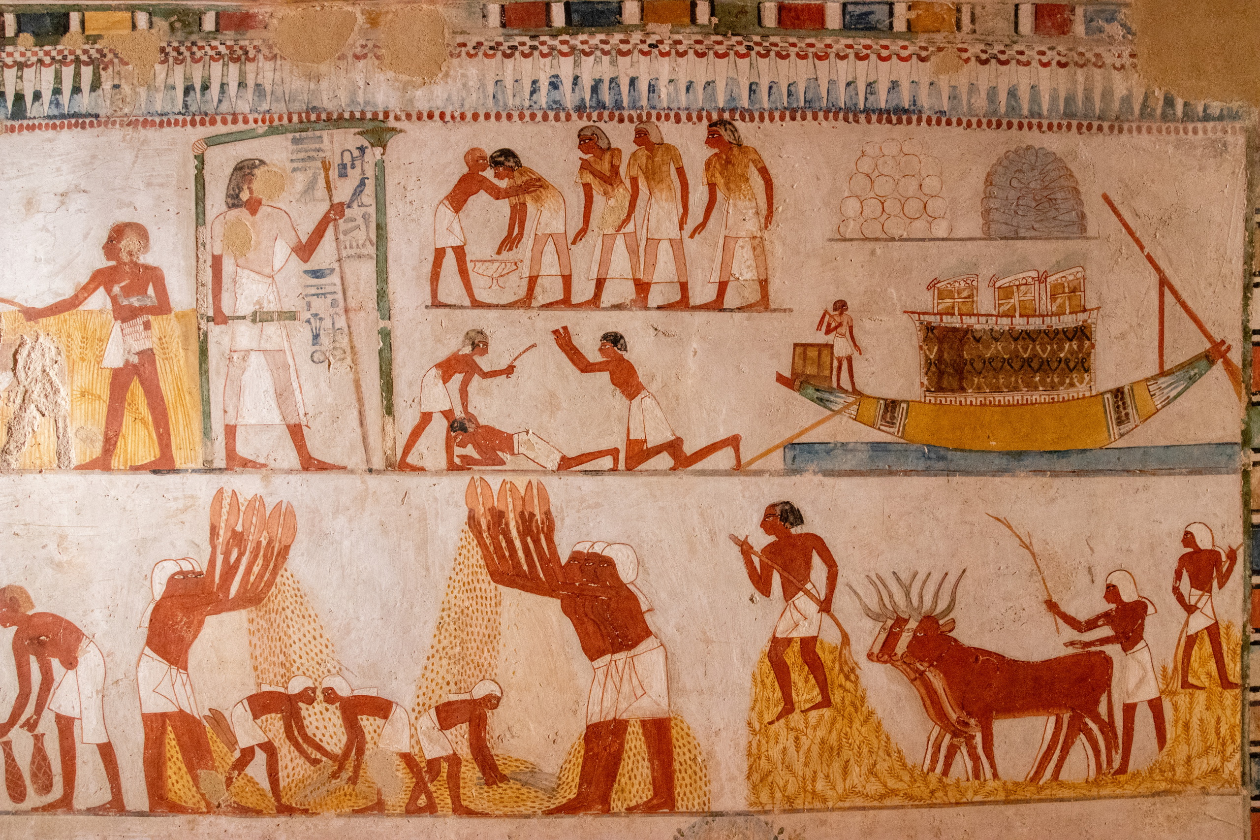 Nach genau einer Stunde radle ich weiter zum Tal der Noblen, wo etwas verstreut die Grabkammern von Mitgliedern der oberen Klasse zu besichtigen sind. Zuerst geht es in die Grabkammer des Menna und im Anschluss in die wunderschön mit Weinranken verzierte Kammer des Sennofer. Besonders interessant sind die Wandmalereien mit wilden Tieren Afrikas in der Kammer des Rekhmire. Und zuletzt wird noch der Grabkammer des Nakht ein kurzer Besuch abgestattet.
