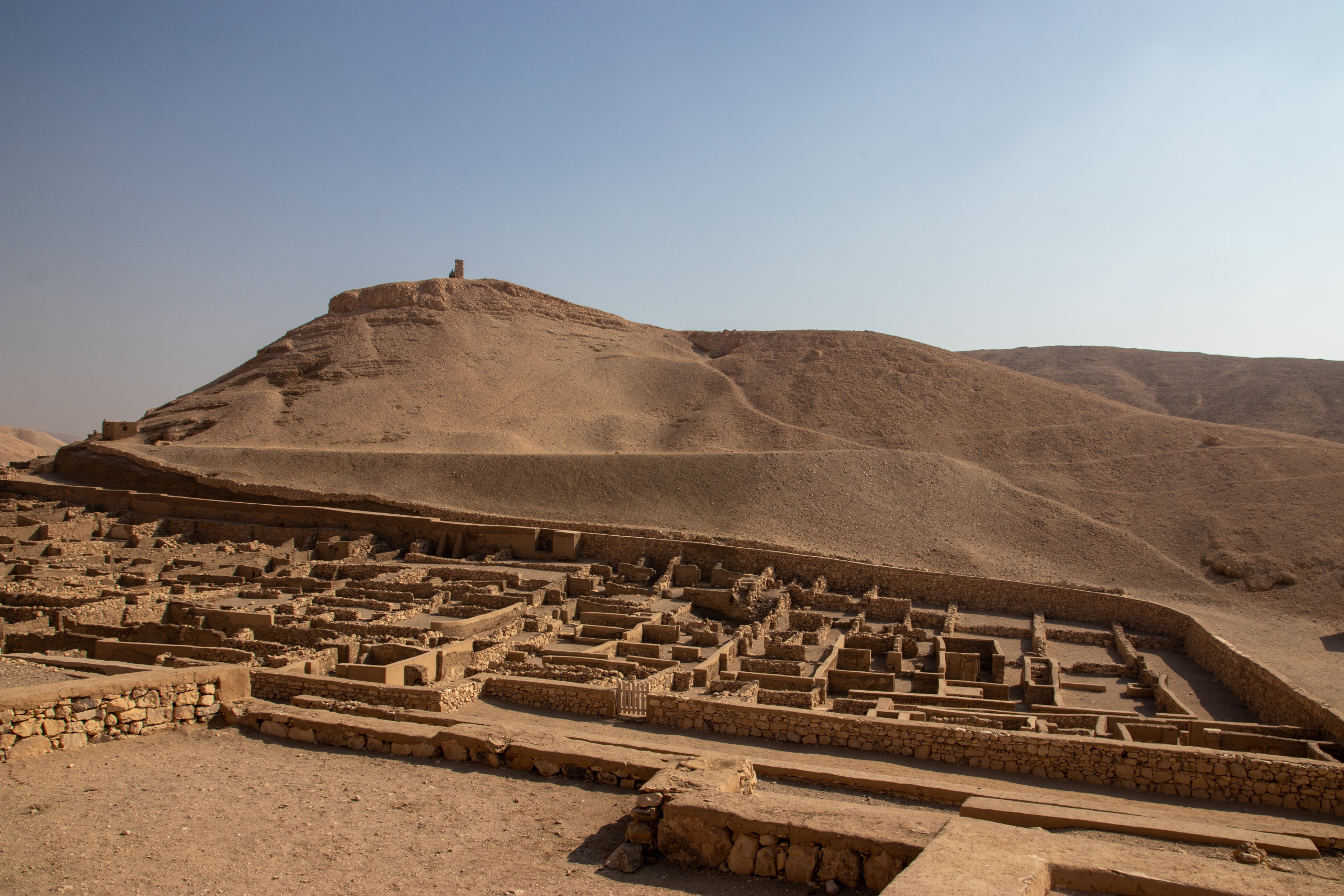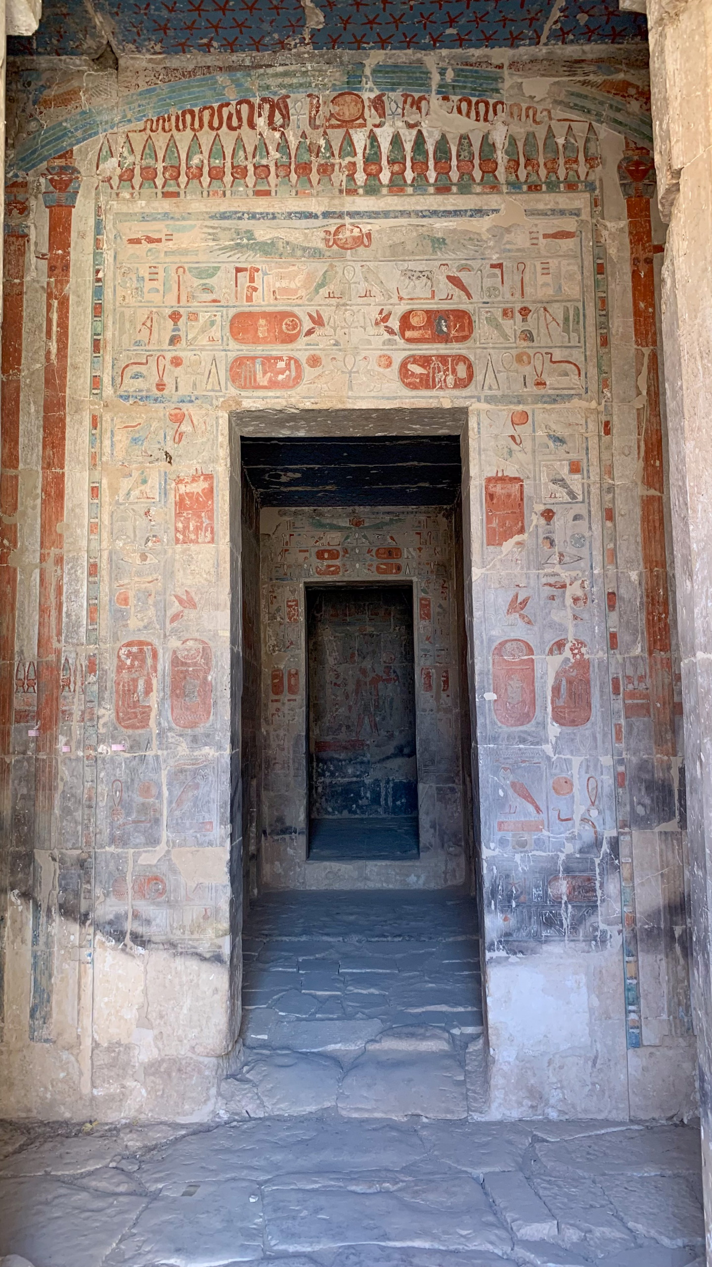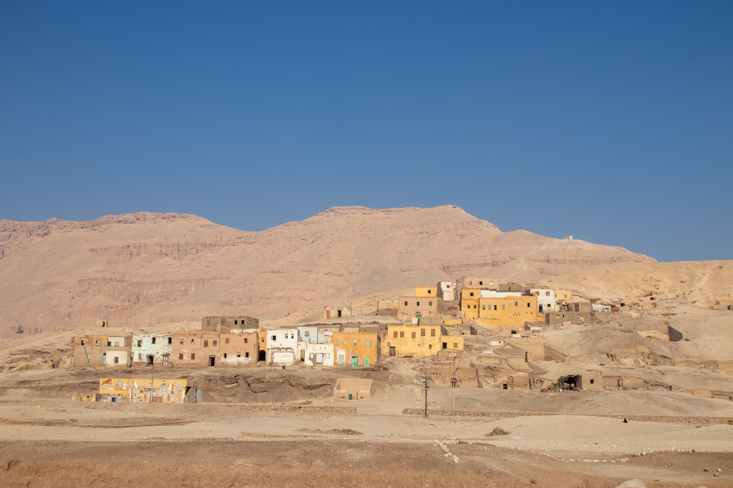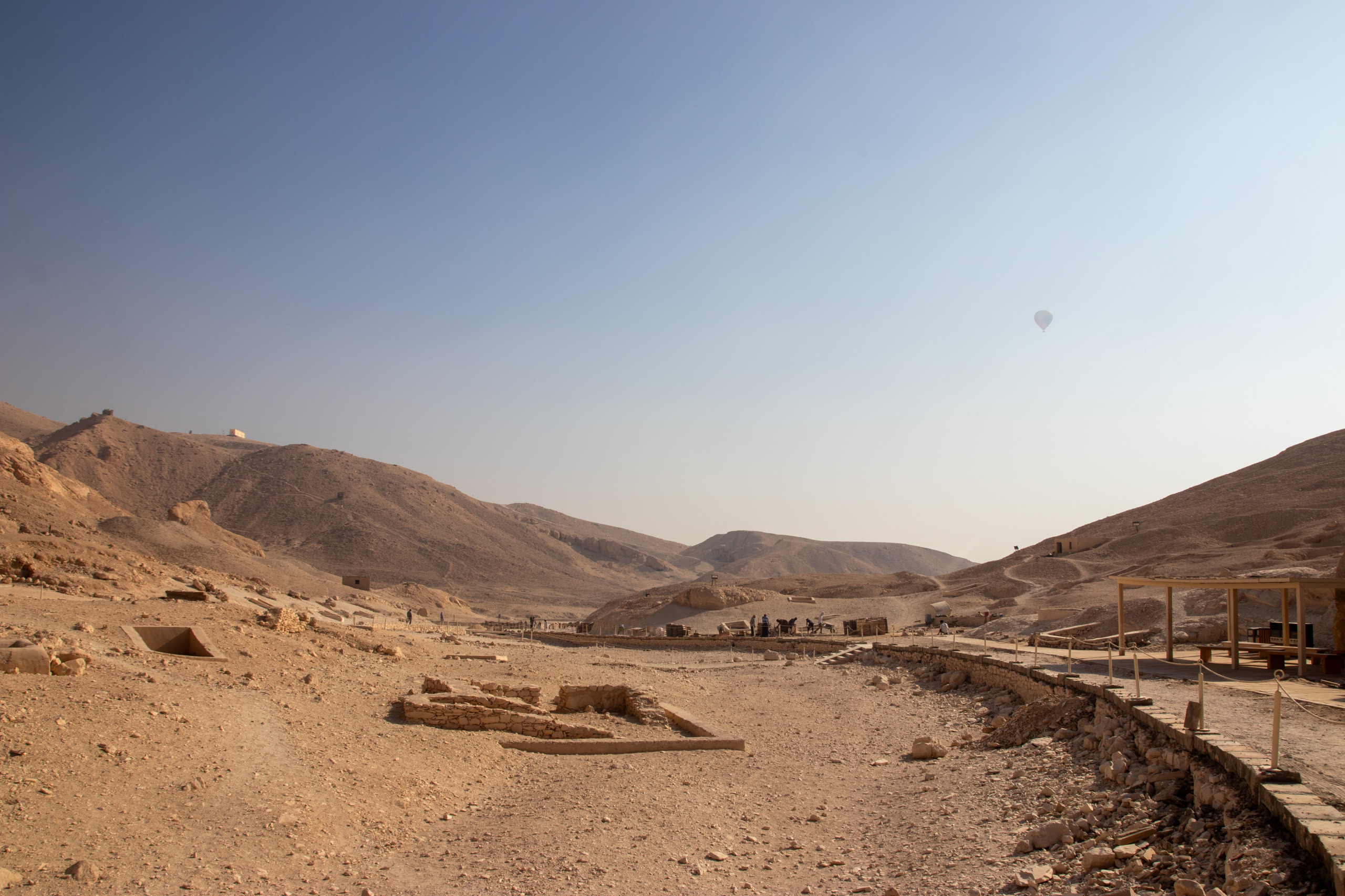 Weiter geht es leicht bergauf zur Deir El Medina, wo ich zuerst in die Grabkammer von Sennutem gehe, die ebenfalls sehr schön bemalt ist. Ein Stück weiter steht der Tempel der Deir El Medina, wo mich ein netter Mann herumführt und mir sogar Teile einer Mumie zeigt. Voll alt sagt er. Es würde mich aber wundern, wenn die Archäologen diese hier liegengelassen hätten.