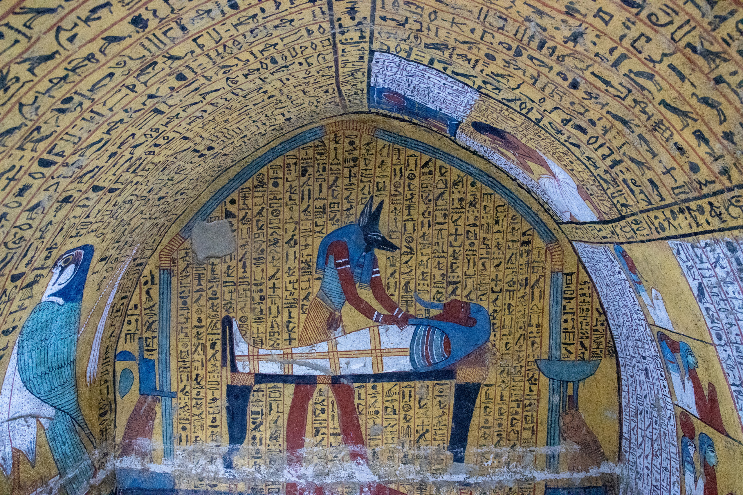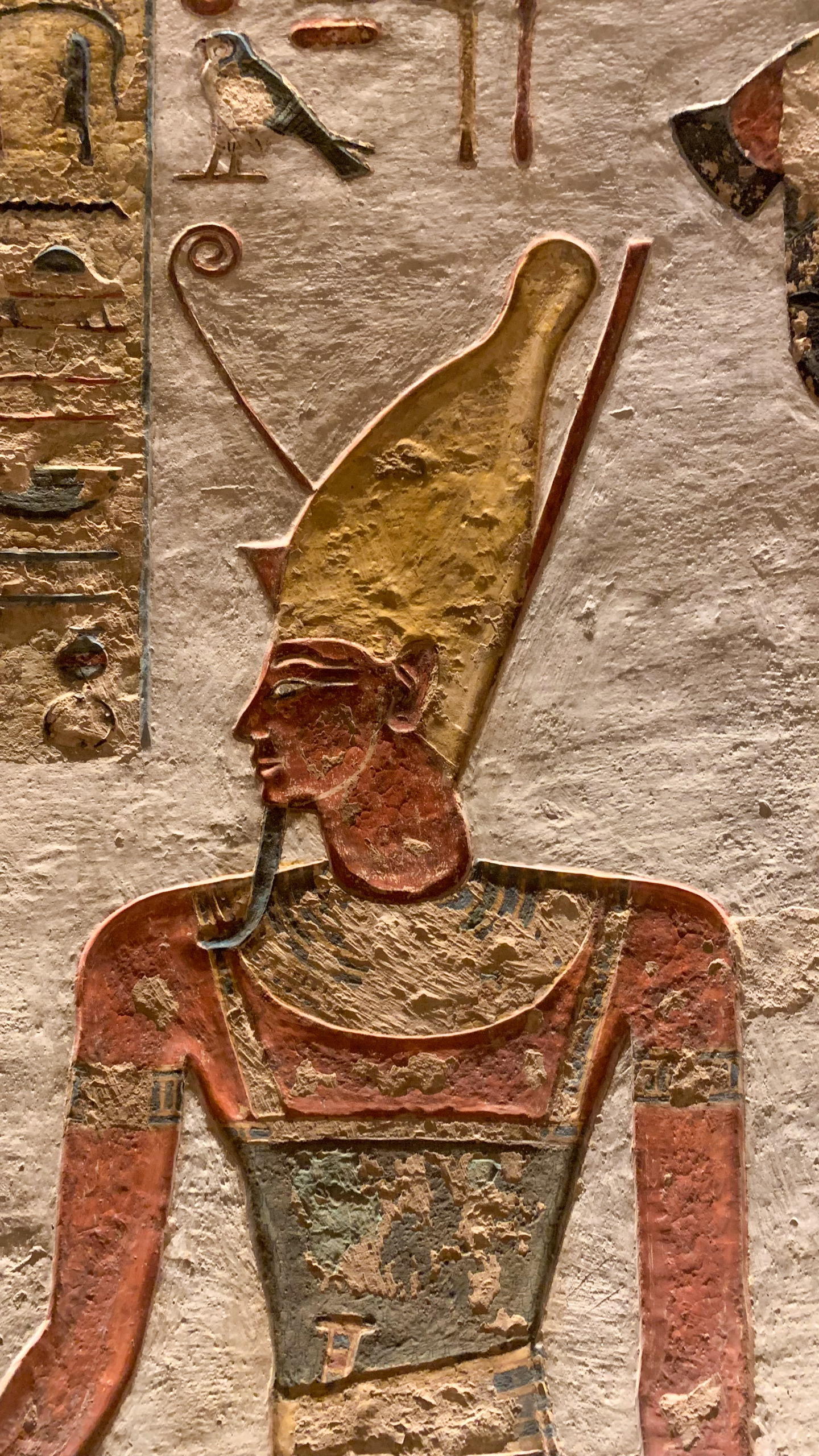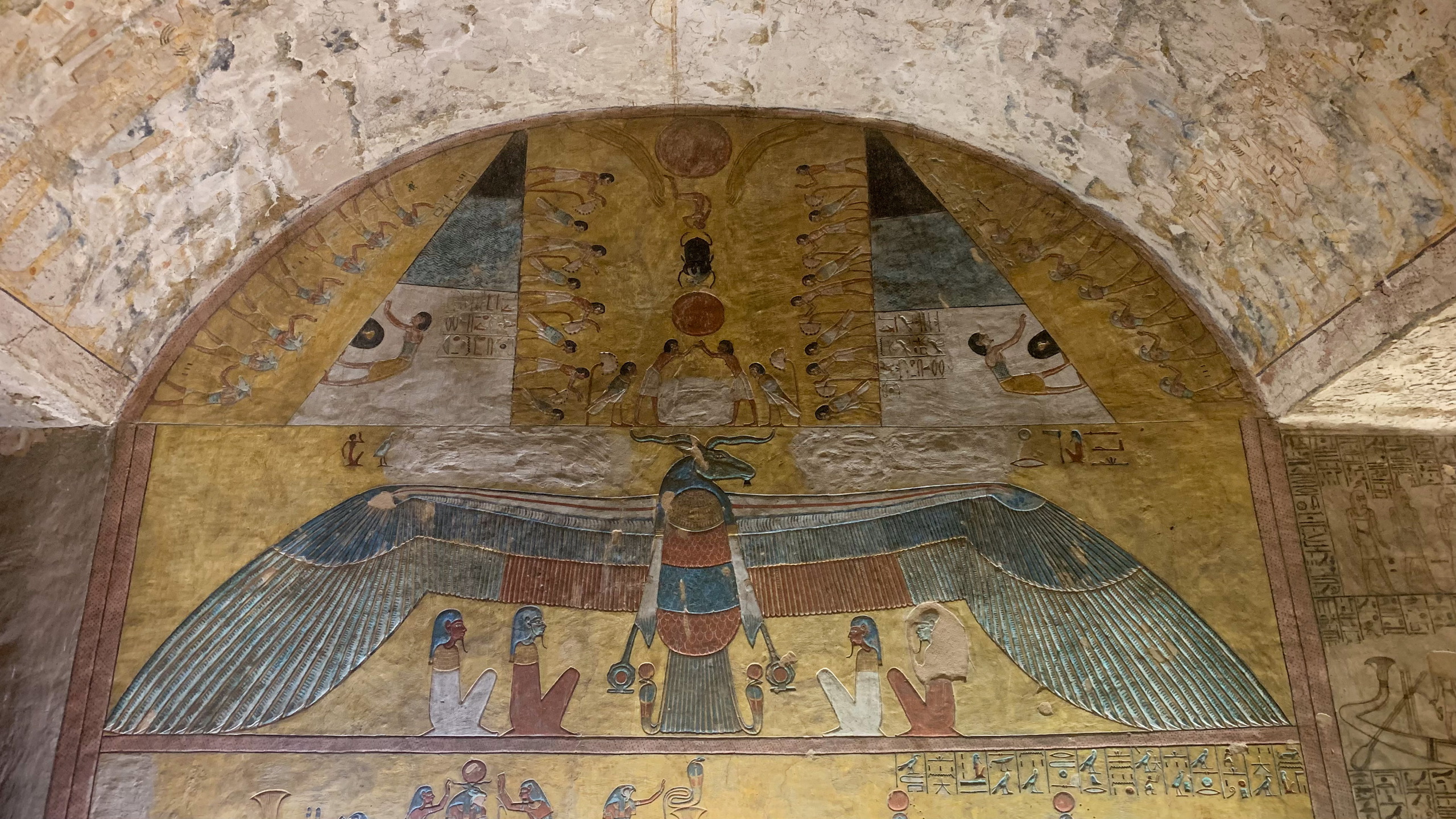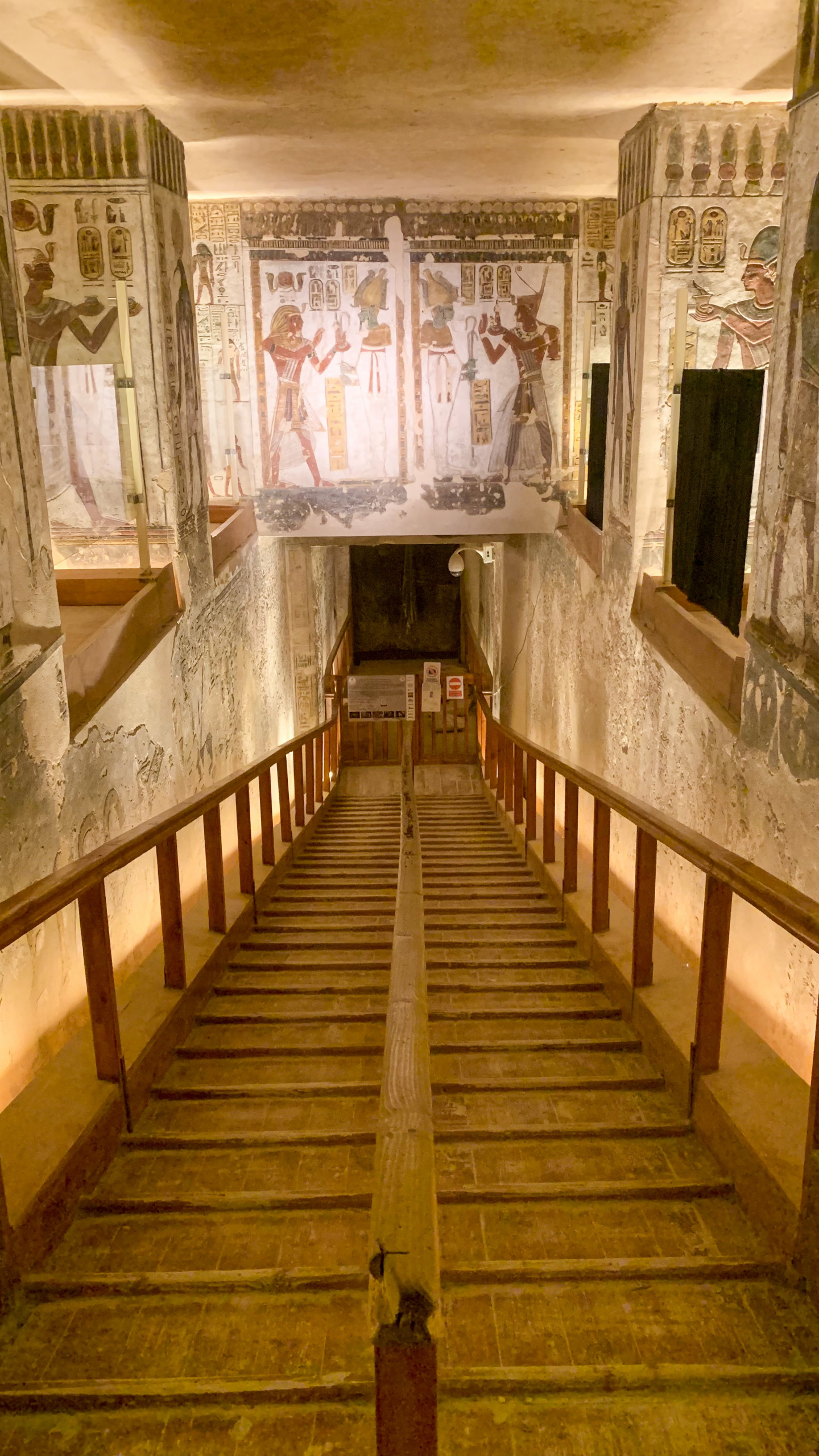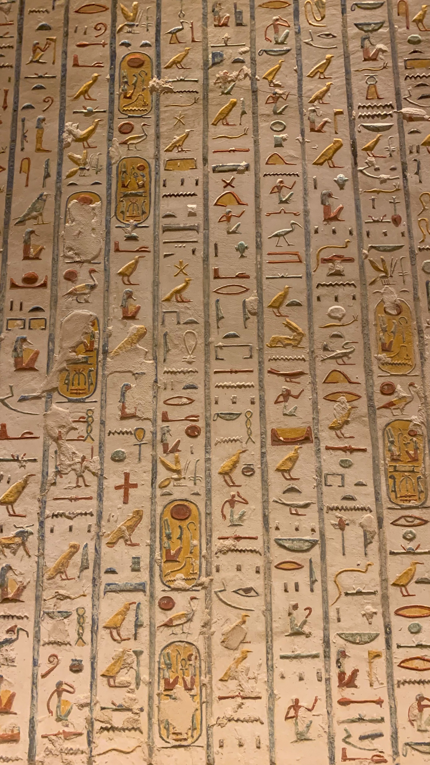 Nach eineinhalb Stunden plage ich mich mit dem “kleinsten” Gang in 20 Minuten die leicht ansteigende Straße hinauf zum Tal der Könige, wo unzählige Busse parken. Da im allgemeinen Ticket nur drei Grabkammern inkludiert sind, nehme ich noch die von Tutanchamun und König Ramses V & VI dazu. Für die Inkludierten lasse ich mir einen Tipp für die drei schönsten Grabkammern geben, bevor ich mich auf den Weg auf das Gelände mache. Hier geht es zu wie am Jahrmarkt. Klar, es ist auch das Ziel Nummer 1 in Luxor. Zuerst geht es in die wunderschöne KV2 von Ramses IV. Hmmm, anscheinend bekommt jeder den gleichen Tipp, denn der lange Gang zur Grabkammer ist voller Touristen, die unkoordiniert herumlaufen. Unglaublich.