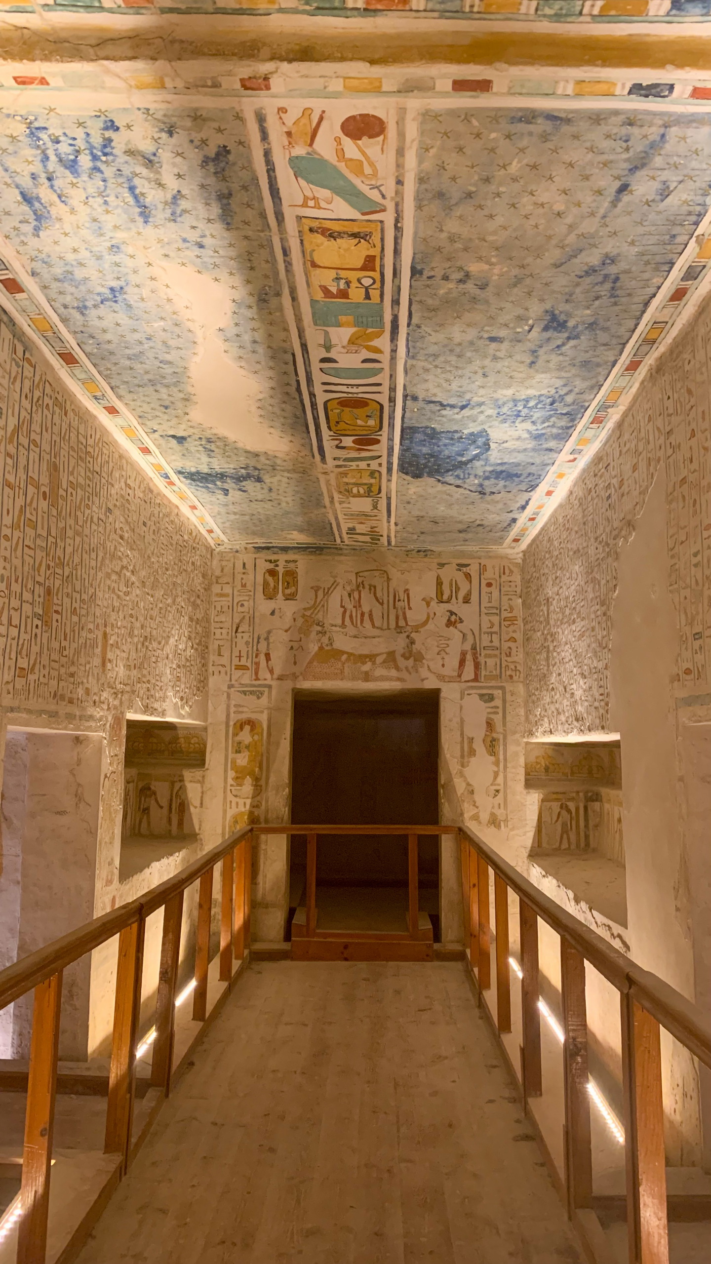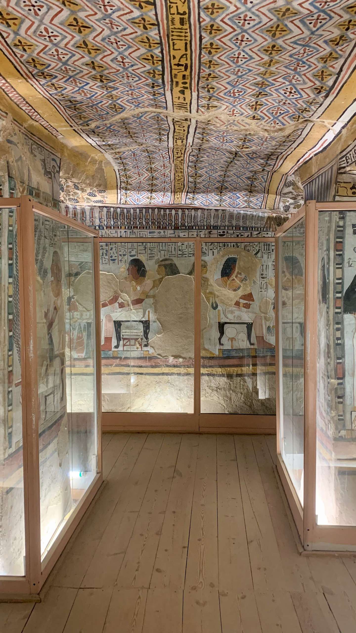 Weiter geht es in die KV9 von Ramses V & VI. Auch hier sind nicht viele Leute, aber leider eine hartnäckige Familie, die sich alles ganz genau ansieht. Bis sie sich verzieht, quatsche ich mit dem Wächter der Grabkammer. Leider kommen schon die nächsten Besucher. Schade.
