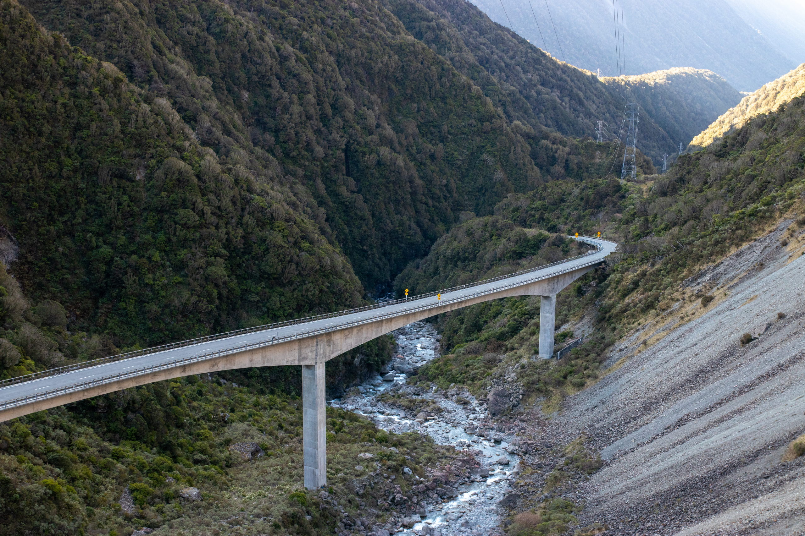 Laut Wetterbericht soll es an der Westküste schöner sein. Super, da will ich heute ohnehin hin, um die geplante Route fortzusetzen. Das üppige Frühstück streckt mich nieder und so muss ich auf der Strecke zum Arthur’s Pass noch einen Powernap einlegen, bevor ich am Nachmittag das Cave Stream Scenic Reserve erreiche. Hier kann man eine Höhle durchqueren, durch die ein kleiner Bach fließt. Laut Warntafel ist das Wasser seit der letzten Flut brusthoch und außerdem sehr kalt. Nichts für mich und meinen „Männerschnupfen“. 😁 Also weiter und den Arthur’s Pass entlang. Heute sehe ich das, was mir gestern aufgrund des schlechten Wetters verwehrt war. Doch sehr schön.