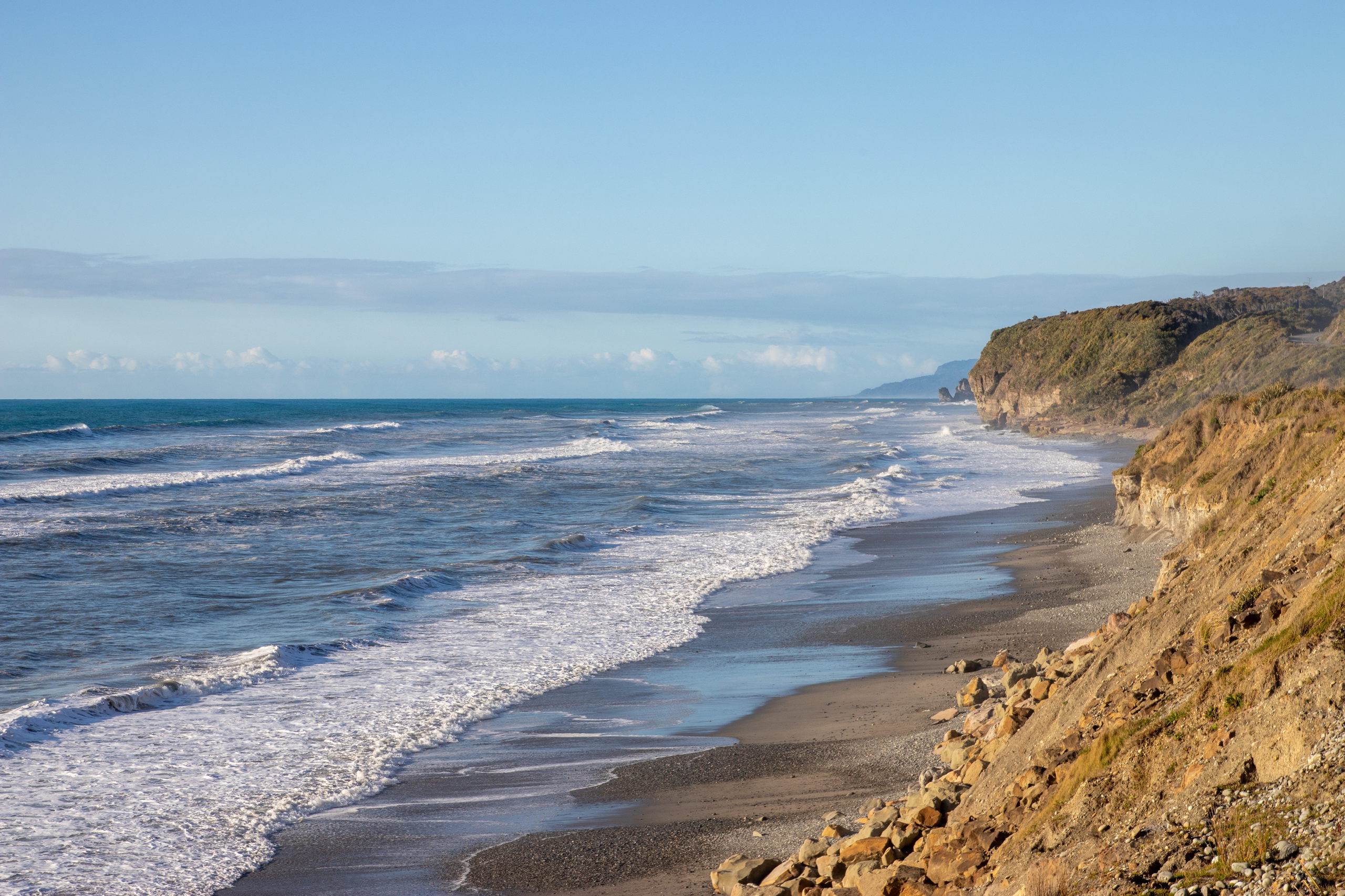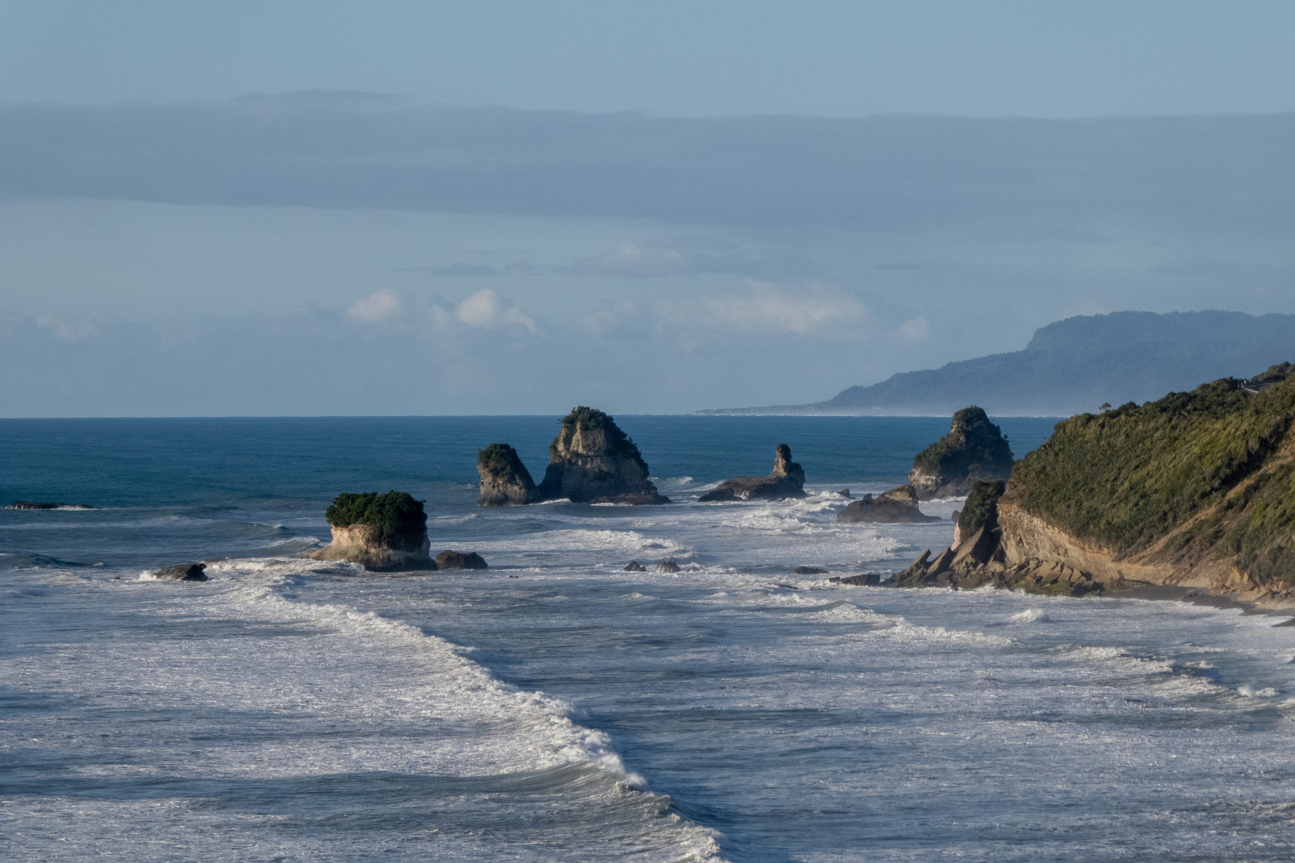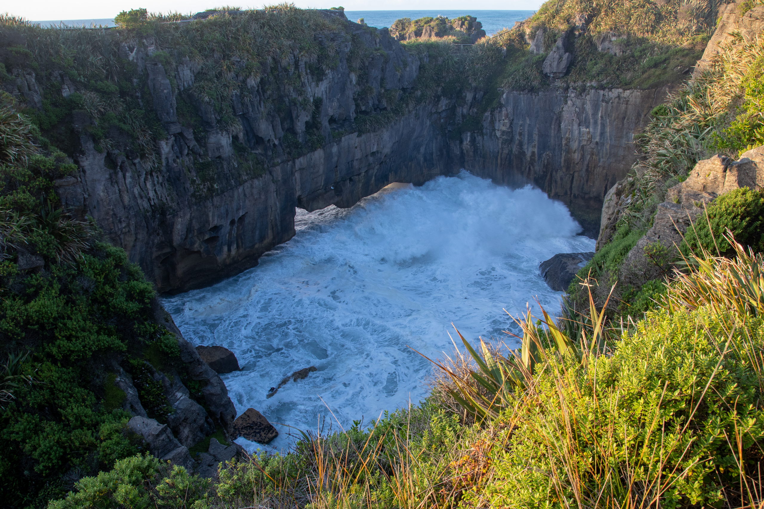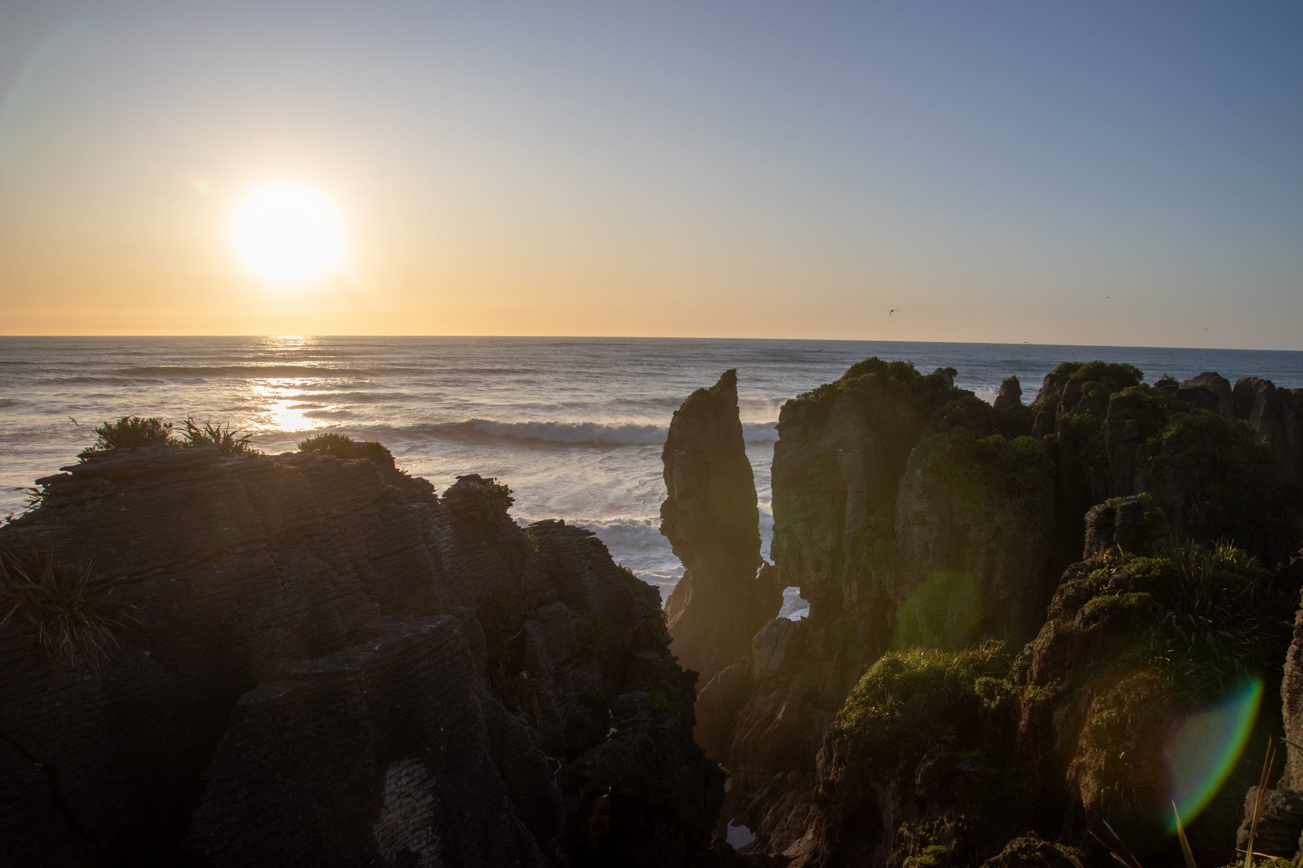 Rechtzeitig zum Sonnenuntergang erreiche ich die Pancake Rocks, wo sich auch mehrere Blowholes befinden. Und das bei feinstem Wetter. Toll, wenn man bedenkt, wie bescheiden heute Morgen das Wetter bei den East Coast Boys war und wie schön es nun bei den West Coast Girls ist. 😁 Nachdem das Spektakel auf „Film“ gebannt wurde, lasse ich mich von Google Maps zur auserkorenen Campsite dirigieren. „Sie haben Ihr Ziel erreicht.” Ääääh, hallo! Da ist nix. Also wirklich nix. Nur Straße. Ich lese mir die Beschreibung vom Camp genauer durch und sehe, dass es nur über einen Wanderweg erreichbar ist. Tja, da hätte ich wohl vorher genauer lesen sollen. Kein Beinbruch, denn der nächste Caravan Park ist nur zehn Kilometer zurück. Dann habe ich morgen nicht so weit, um mir die Blowholes noch einmal am Morgen anzusehen. Nach der üblichen Abendgestaltung richte ich alles fürs Schlafen, wobei ich diesmal genau prüfe, ob das Ventil ganz geschlossen ist. Hoffentlich ist morgen die Luft noch drinnen.