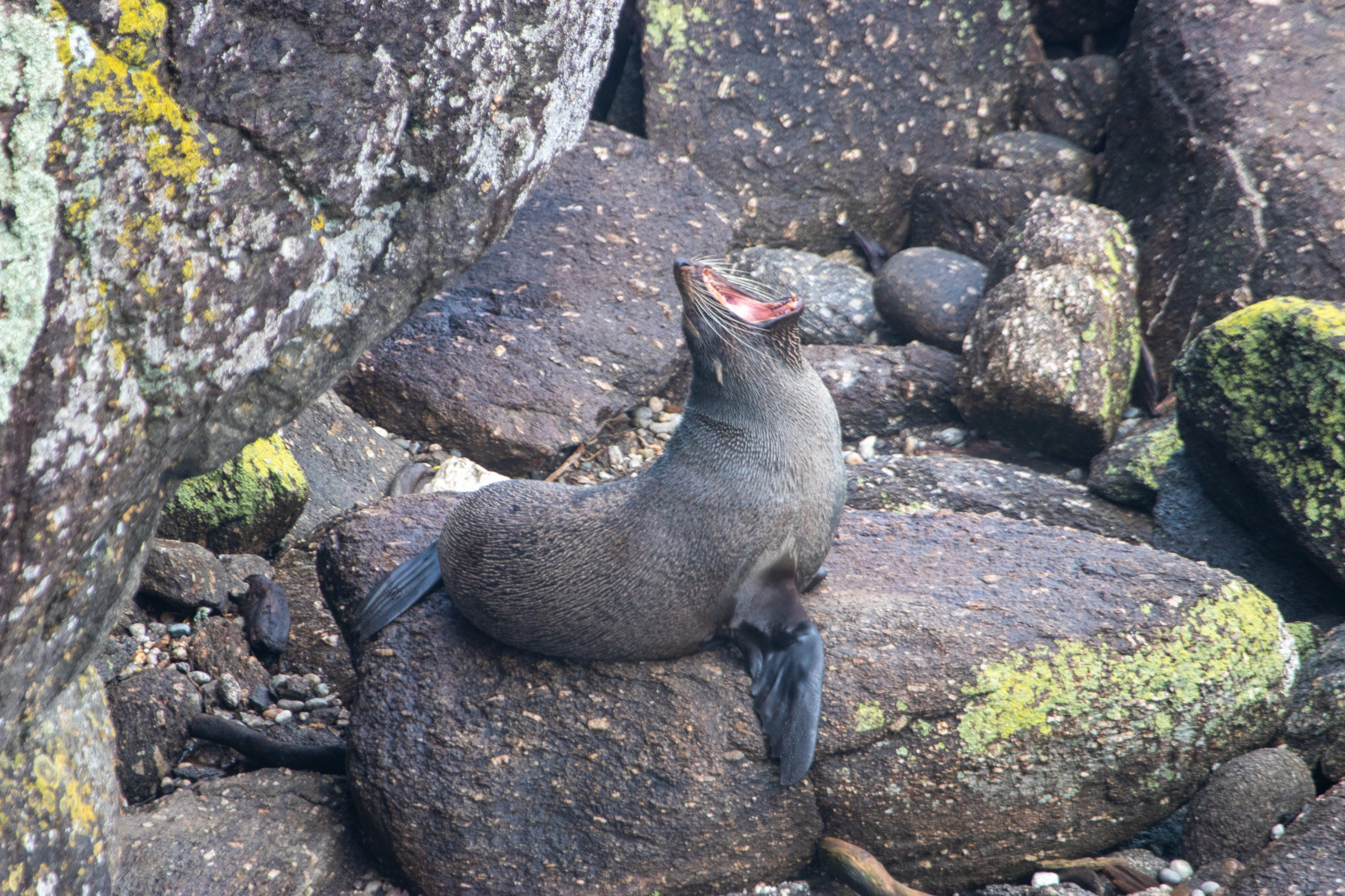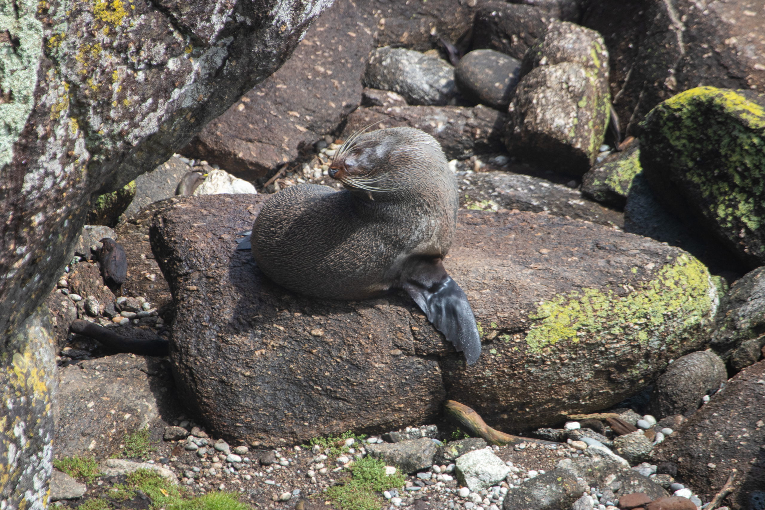 Als ich die Seelöwenkolonie erreiche, kommt sogar die Sonne raus. Super. Beim Knipsen stapfe ich im nassen Gras herum und merke, dass aus meinen AquaMax inzwischen AquaMin geworden sind. Es wird wohl bald Zeit, auf die neuen Schuhe umzusteigen. Ich wandere noch ein Stück weiter zu einem Leuchtturm, von dem aus man in die kleine Ortschaft Cape Foulwind sieht. Am Rückweg liegen die Seelöwen noch genauso da, wie vorher. Was für ein fauler Haufen. 😁