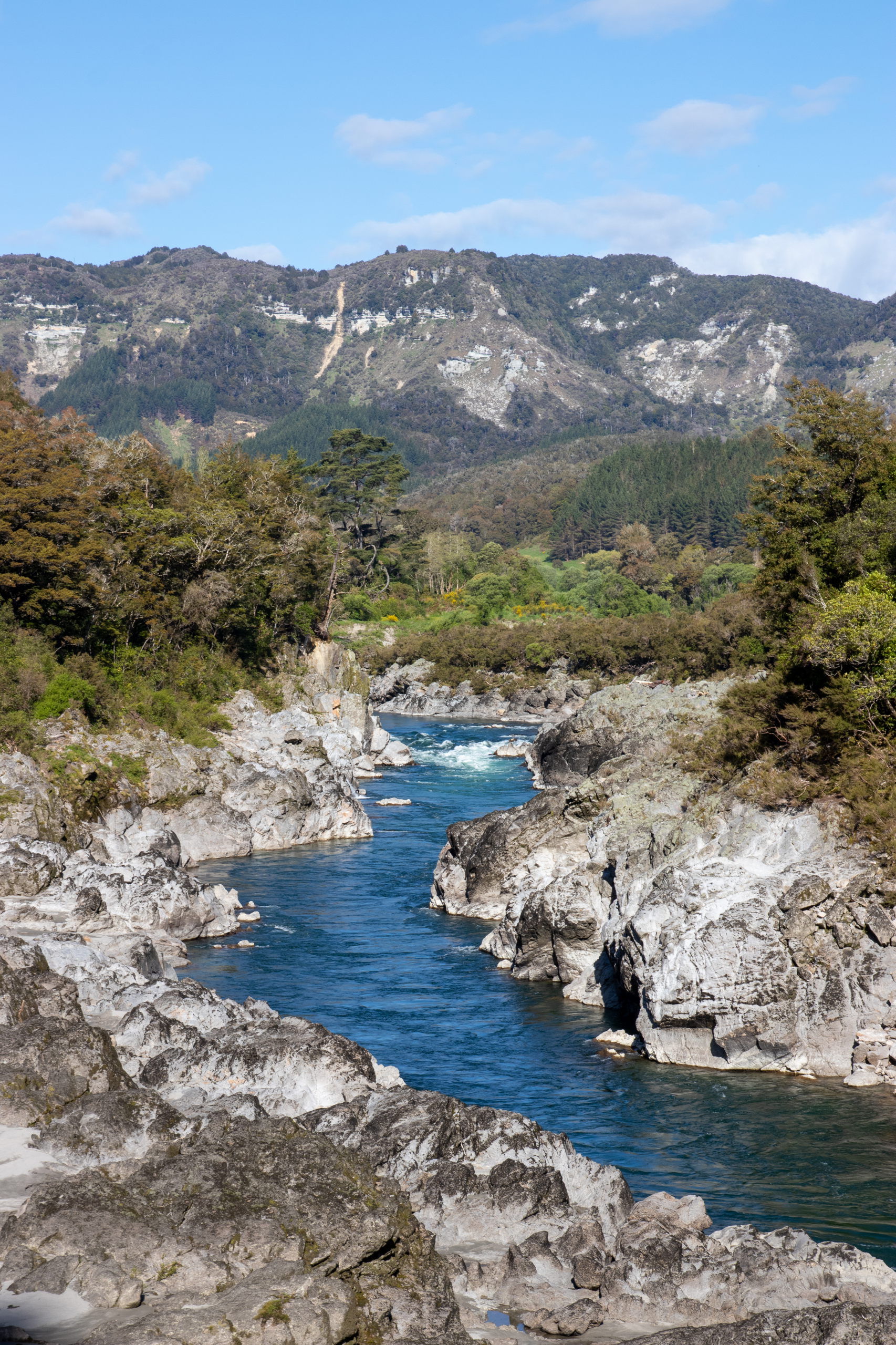 Während der weiteren Fahrt beginnt es wieder zu regnen, nur damit etwas später wieder die Sonne herauskommen kann. Ist in Neuseeland der Oktober wie bei uns der April? Entlang der Lower und Upper Buller Gorge sieht es aus wie bei uns im Alpenvorland. OK, bis auf die Palmen neben den Nadelbäumen. Vor Murchison weitet sich das Tal und anschließend geht es wieder kurvig und im Auf und Ab weiter. Das Fahren macht echt Spaß, denn der Toyota Corolla 1.8 l hat ordentlich Schmackes unter der Haube und sollte tatsächlich ein Schleicher unterwegs sein, lässt dieser fast immer den nachfolgenden Verkehr an einer Slow Vehicle Bay oder Pass Lane vorbei. Falls nicht, ist es vermutlich einer der vielen Touristen und der Wagen muss seine Power unter Beweis stellen. Gefühlt ist jedes dritte Fahrzeug ein Campervan, wobei Campen auch bei den Neuseeländern sehr beliebt ist. Auch sonst ist das Fahren auf der Insel sehr angenehm, da die Kiwis sehr zuvorkommend fahren. Da können wir uns in Österreich noch einiges abschauen.
