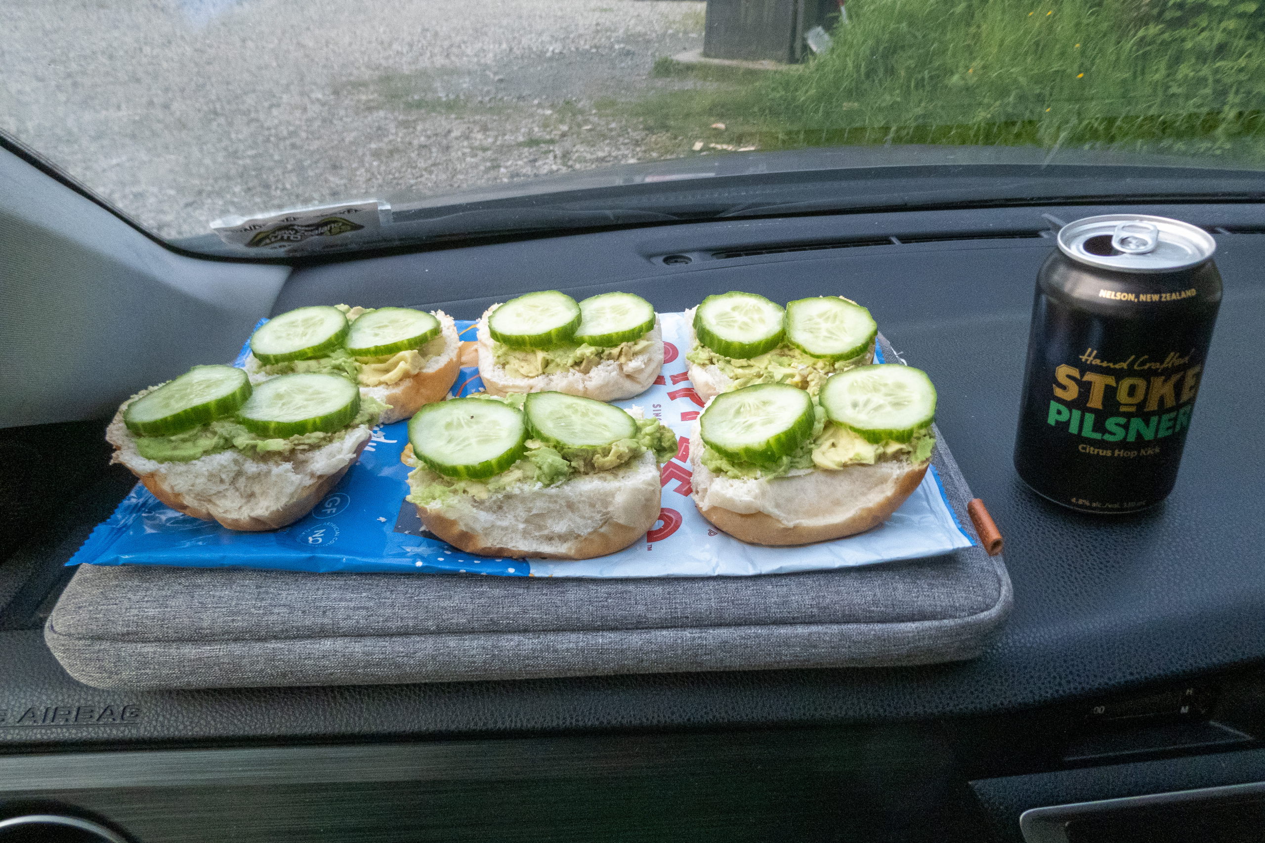 Durch ein Hopfenanbaugebiet mit saftigen, grünen Hügeln, auf denen Schafe grasen und lautstark blöken geht es weiter, bis ich am Abend das Alexander Bluff Road Reserve erreiche. Klingt toll, ist aber nicht mehr als ein Parkplatz mit Toilette. Es gibt wieder einmal McMax und dazu die ausgerechnete Menge von drei Bier. Sind zum Glück nur Seiterl. 😁 Für Australien brauche ich noch Unterkünfte in Melbourne und Sydney. Pfuh, ganz schön geschmalzene Preise. Tja, Großstadt eben. Den restlichen Abend verbringe ich mit dem Rekonstruieren der gelöschten Galerien. Ach, wie öde.
