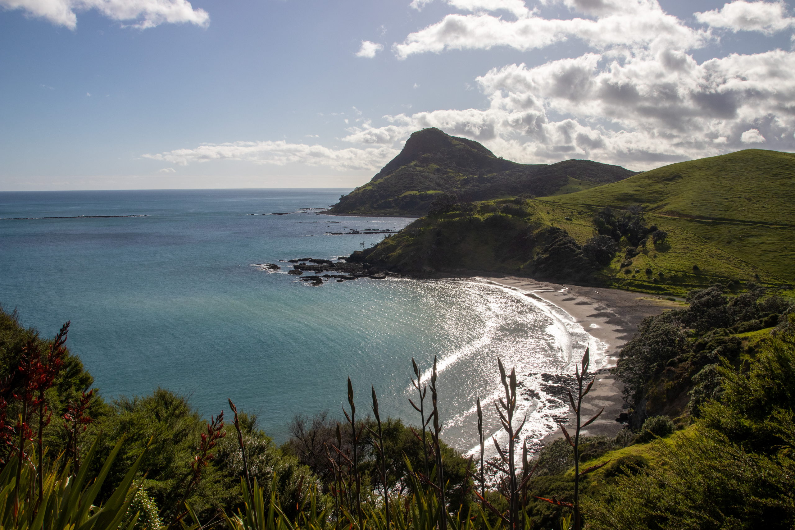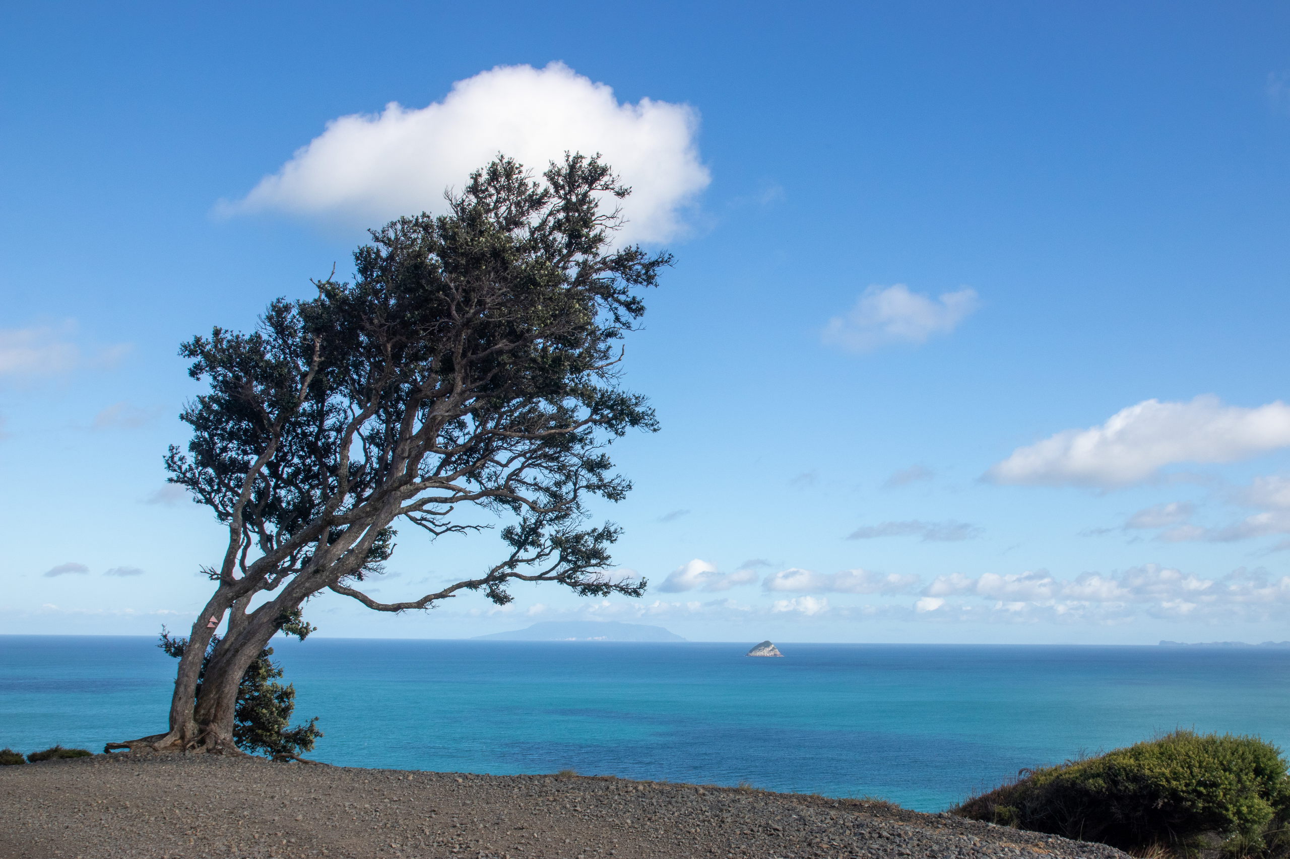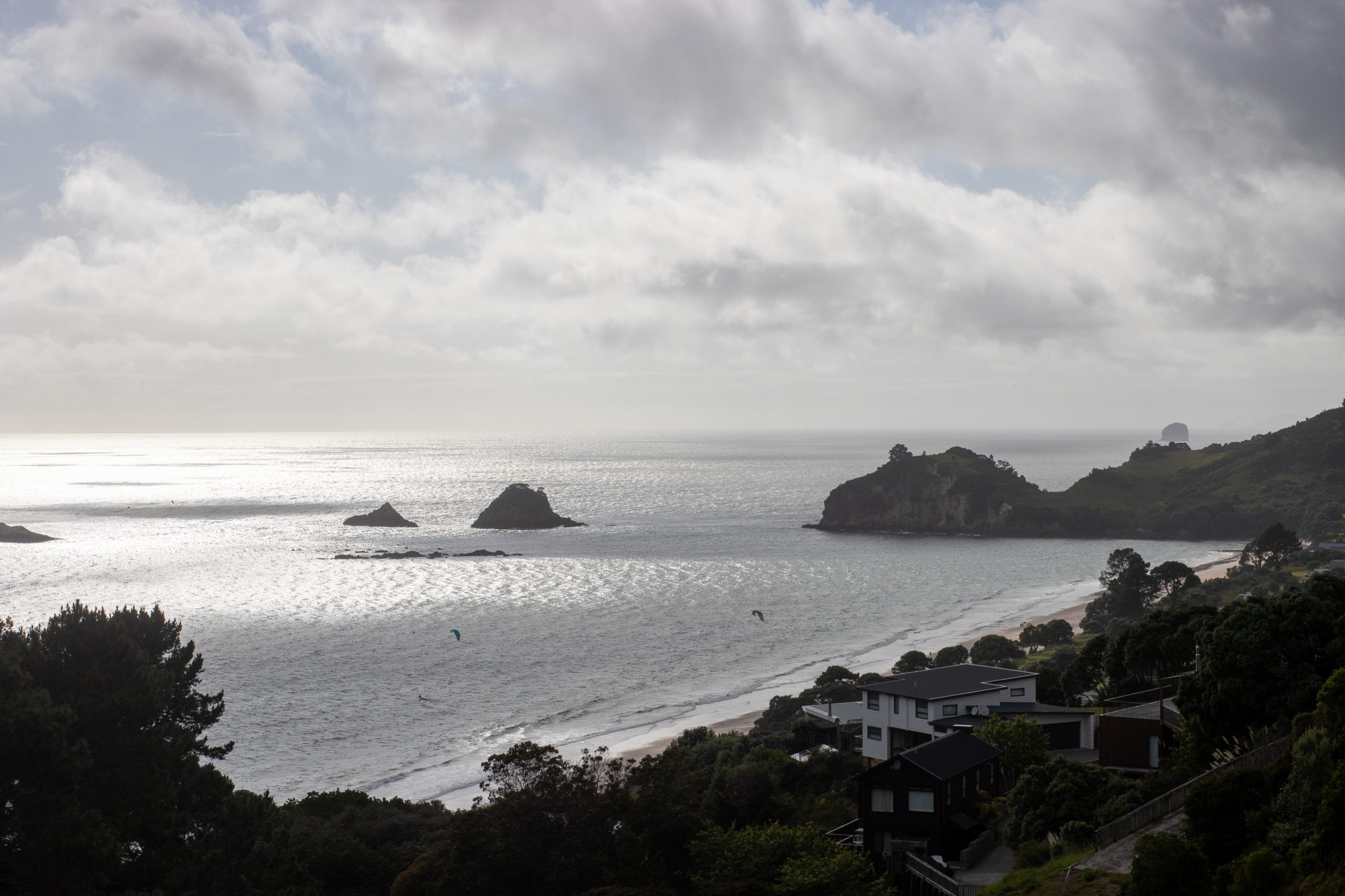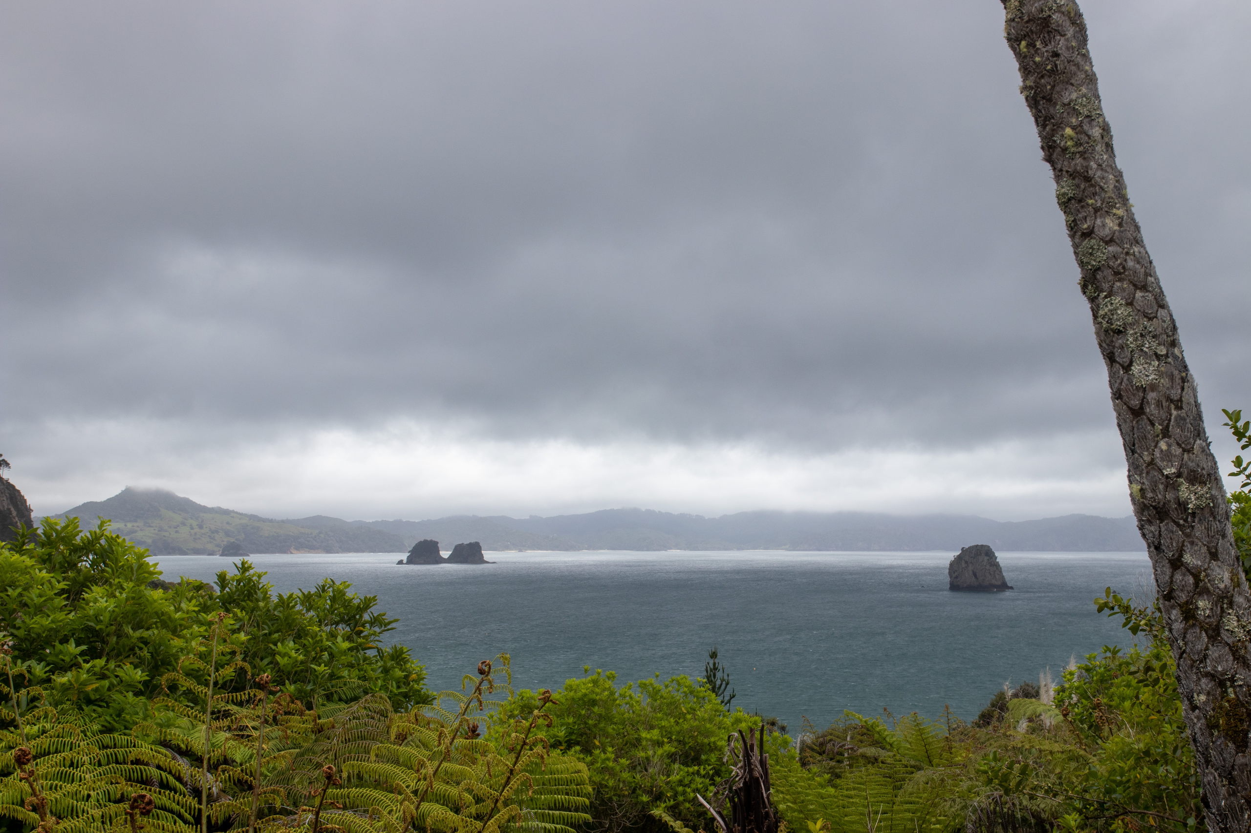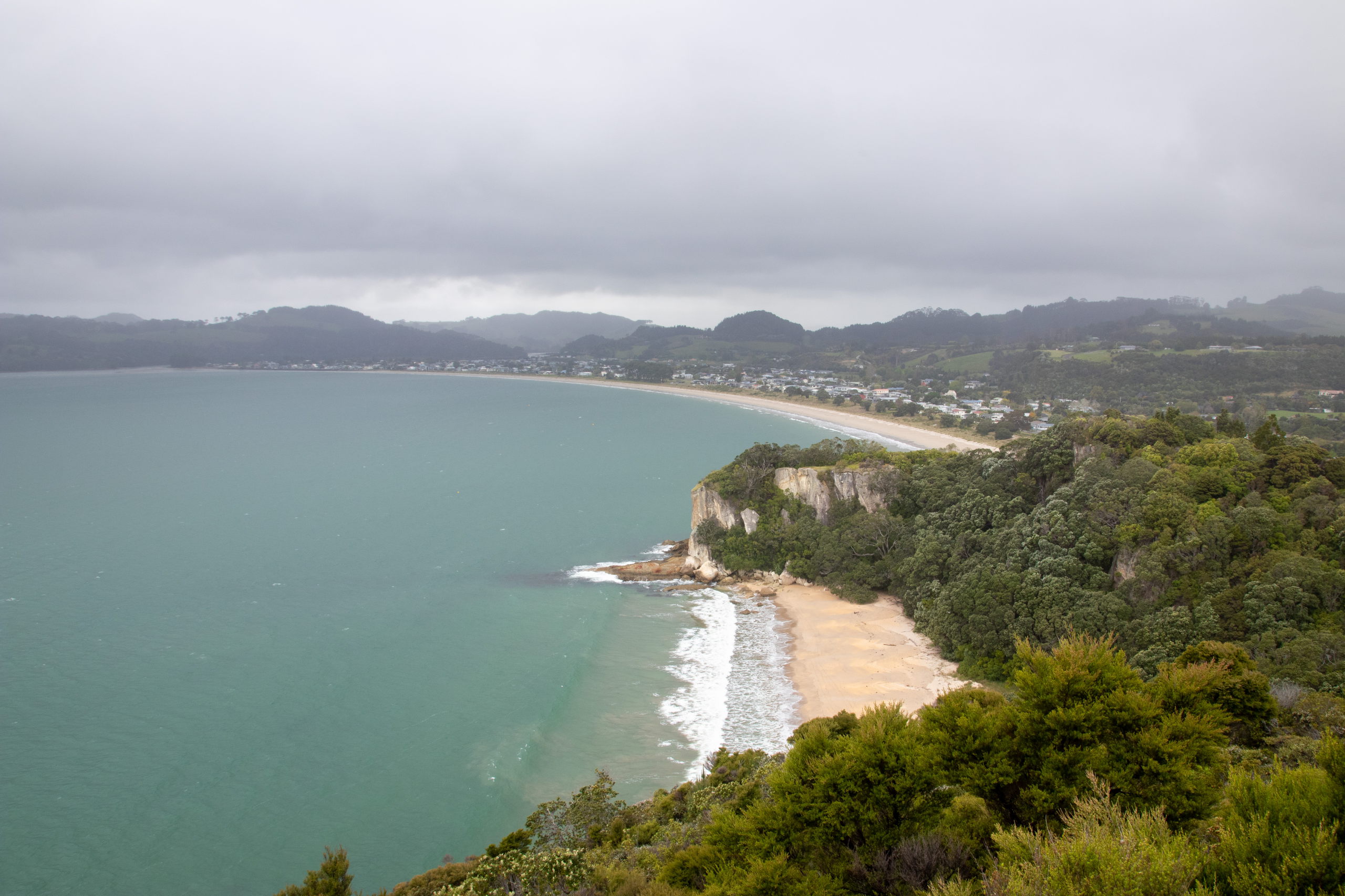 Nachdem ich Thames passiert habe, wird die Thames Bay umrundet, bevor es nach Norden in Richtung Auckland geht. Am Auckland Highway ist viel Verkehr. Klar, Großstadt. Ungewohnt nach den letzten Wochen am “Land”. Es dauert lange, bis ich an Auckland vorbei bin, aber ich kann sogar einen Blick auf den Auckland Sky Tower erhaschen. In Cape Rodney angekommen, spaziere ich zu einem Aussichtspunkt hoch und freue mich über die Bewegung.