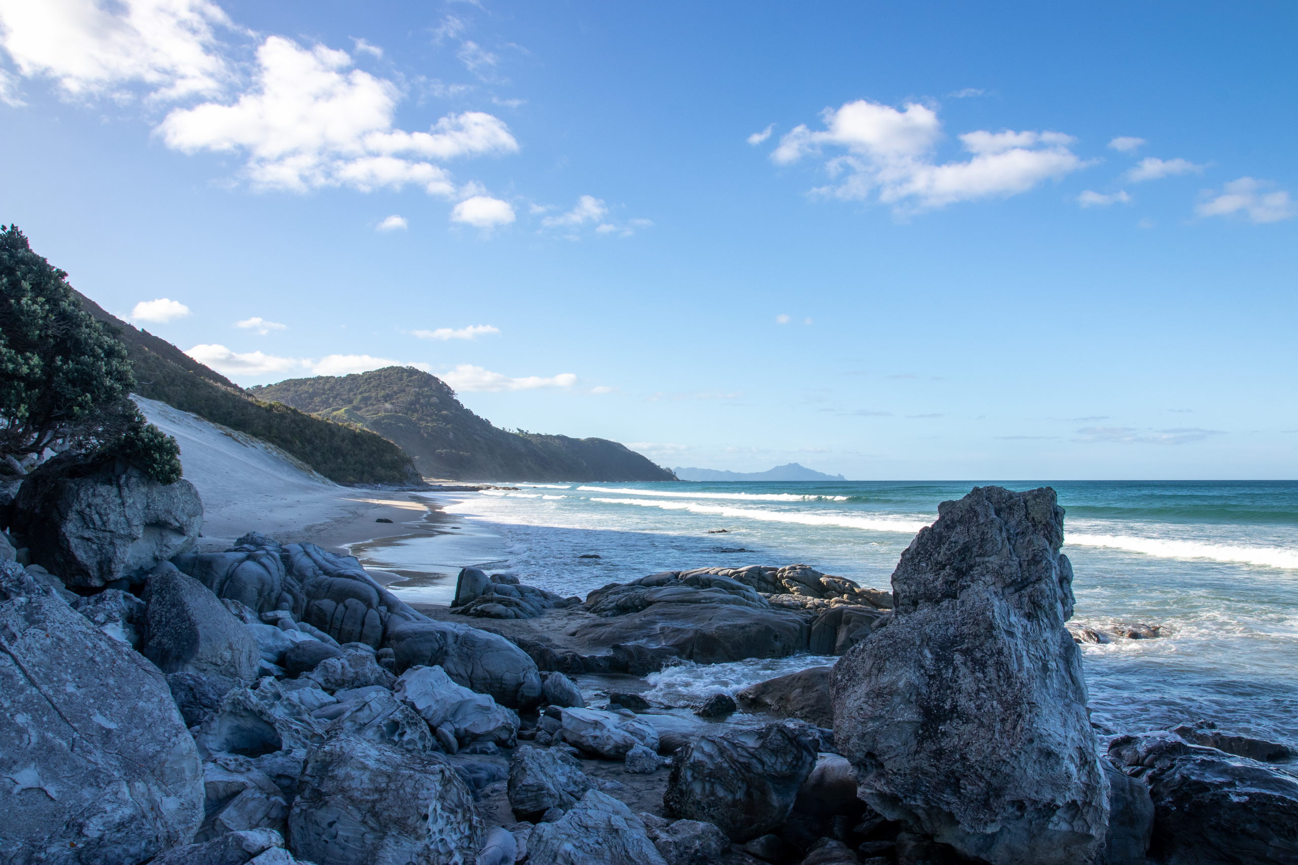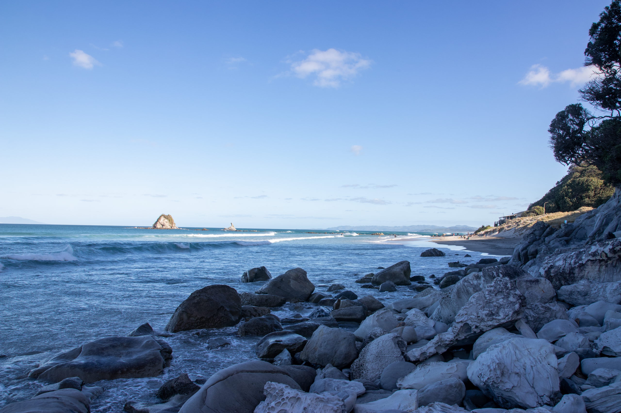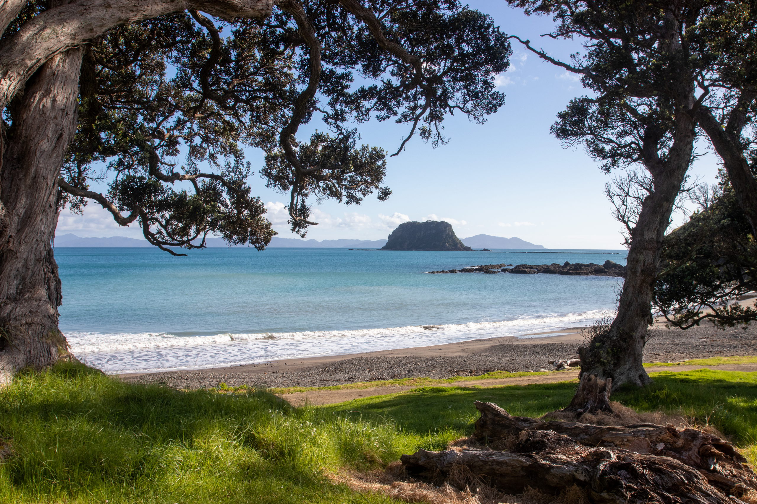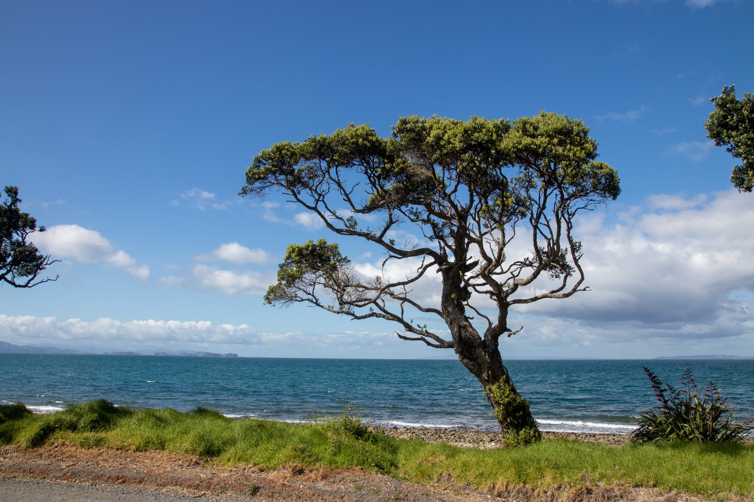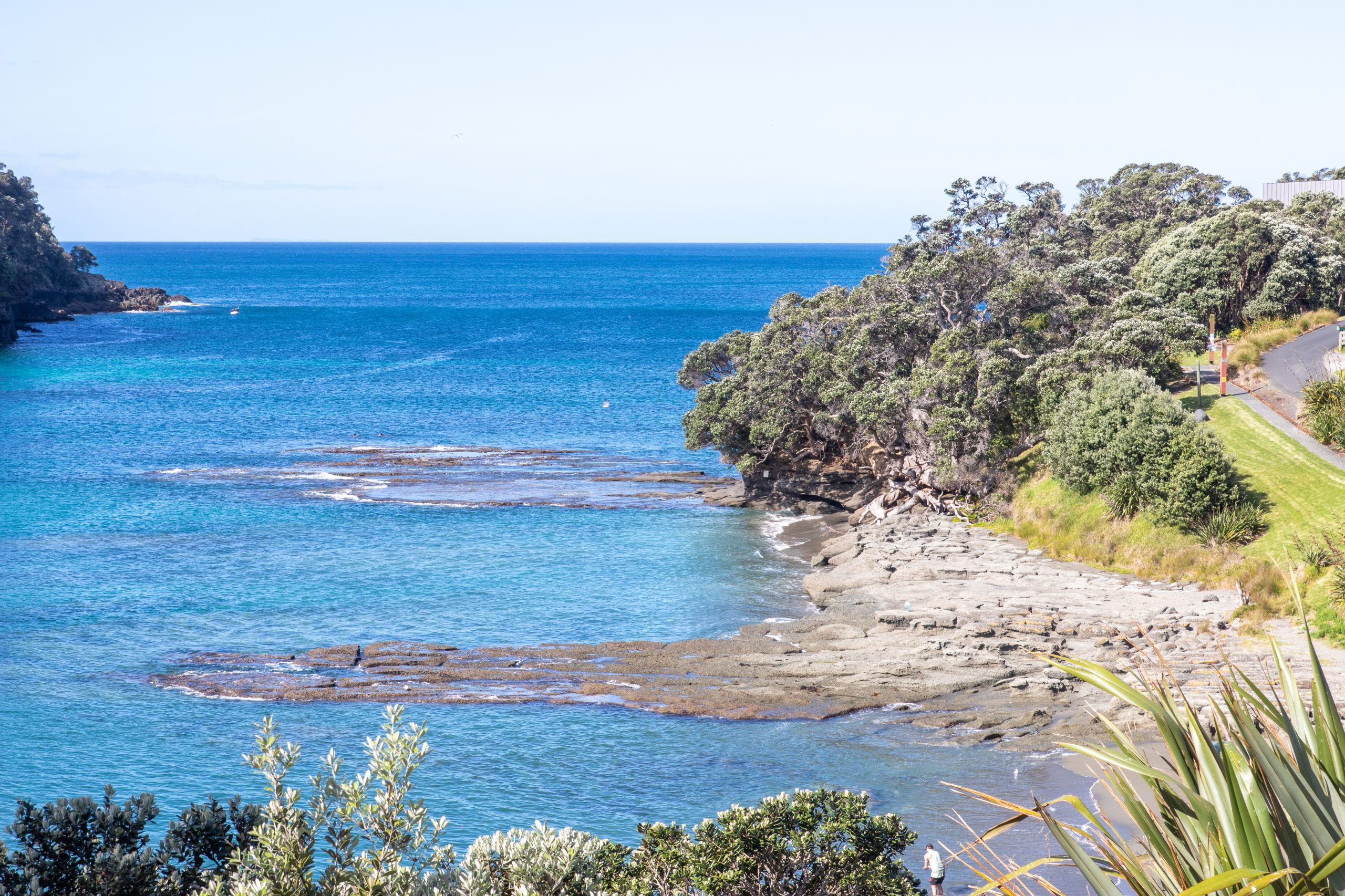 Nachdem ich Thames passiert habe, wird die Thames Bay umrundet, bevor es nach Norden in Richtung Auckland geht. Am Auckland Highway ist viel Verkehr. Klar, Großstadt. Ungewohnt nach den letzten Wochen am “Land”. Es dauert lange, bis ich an Auckland vorbei bin, aber ich kann sogar einen Blick auf den Auckland Sky Tower erhaschen. In Cape Rodney angekommen, spaziere ich zu einem Aussichtspunkt hoch und freue mich über die Bewegung.