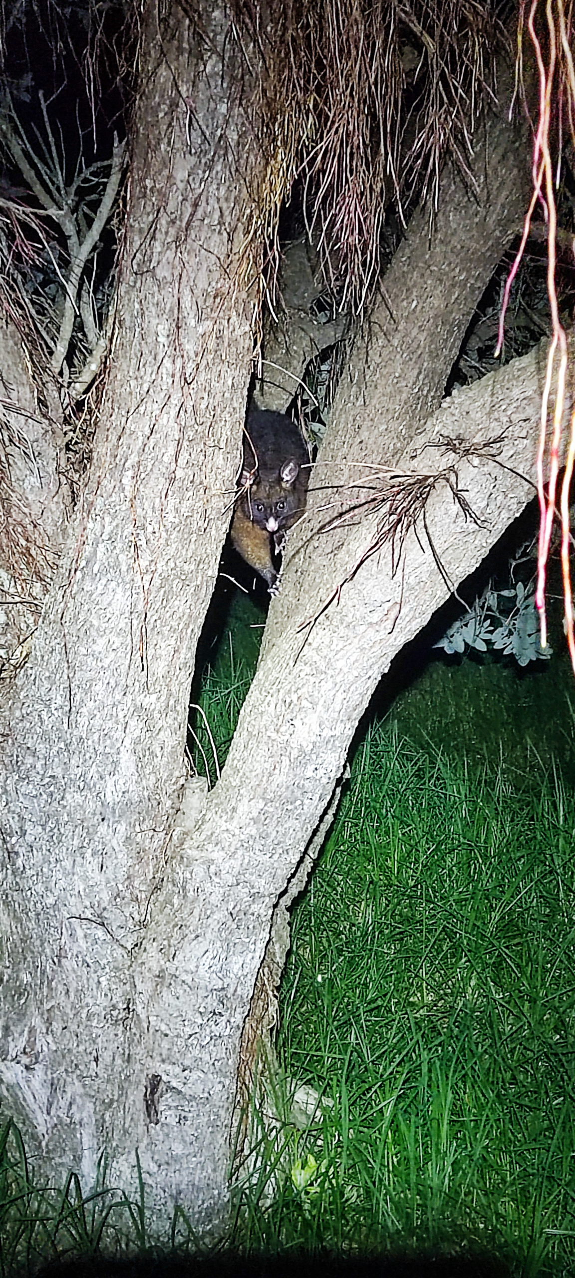 Während eines nächtlichen “Spaziergangs” raschelt es in einem Baum. Und siehe da, ein Possum sieht mich groß an. Ha, wie witzig. Die ungelogen 500 Possums, habe ich alle mehr oder weniger flach entlang der Straße gesehen. Am Weg zur West Coast der Südinsel waren es sicher mehr als 50 an einem Tag. Soweit ich mitbekommen habe, sehen die Einheimischen die eingeführten Tiere als Plage und halten eher drauf zu, als ihnen auszuweichen.