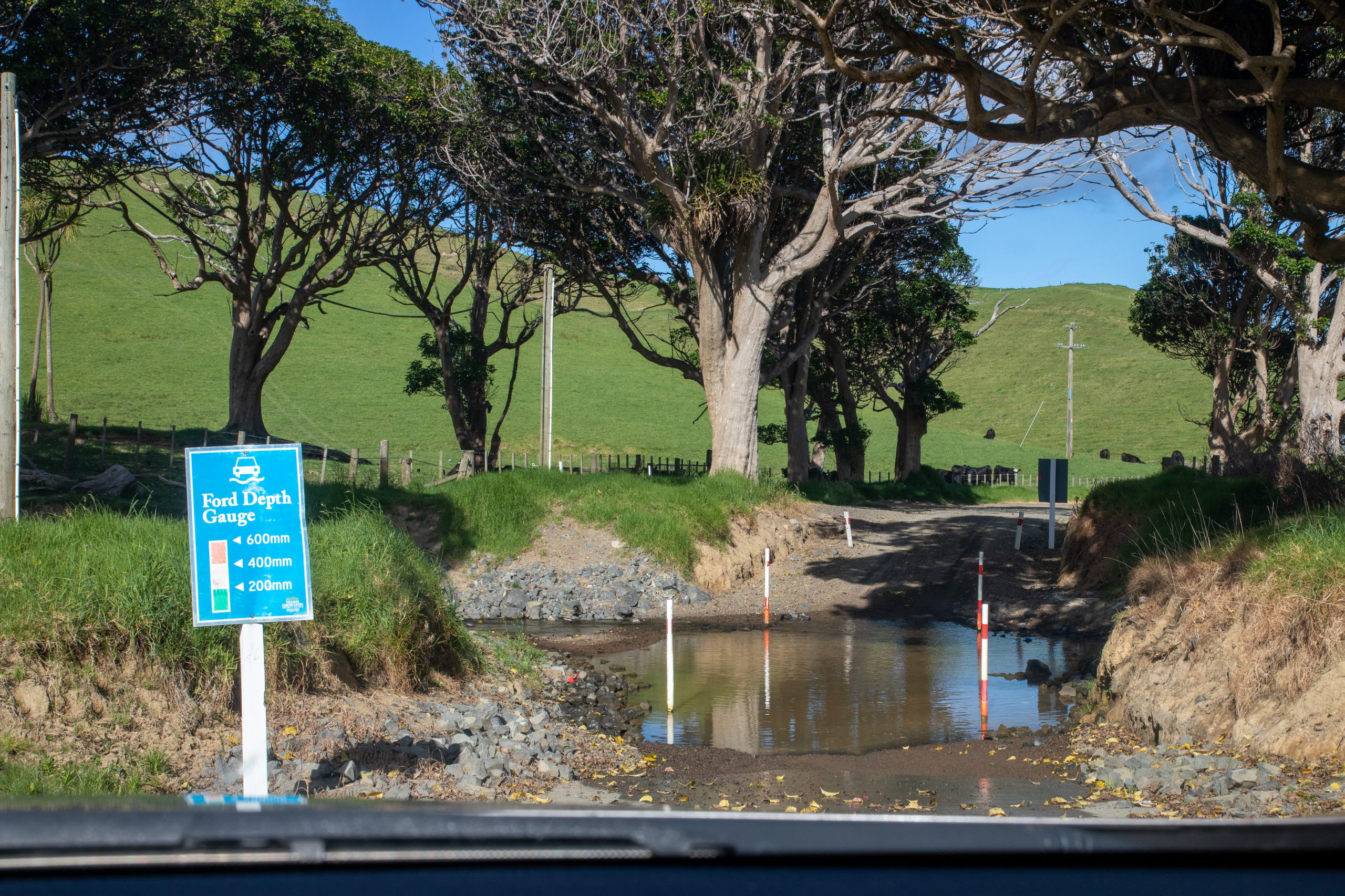 Am Weg nach Norden besuche ich den eher unspannenden Cook Beach und das Shakespeare Cliff Lookout. Vorbei am Faxmill Beach gelange ich nach Whitianga und mache am Buffalo Beach auf einer großen Wiese ein Nickerchen. Ein sehr ausgedehntes Nickerchen. Der weitere Weg entlang der Westküste der Coromandel Peninsula ist kurvig und abwechslungsreich. Später geht er in eine Schotterstraße über und es ist sogar eine Furt zu queren. Die Küste ist rau, das Wetter eher mau. Am Abend erreiche ich schließlich die Fletcher Bay Campsite. Es regnet immer noch, ich bin müde und schlafe noch einmal eine Runde. Mit heftigen Bauchschmerzen bzw. Krämpfen, die alle paar Minuten kommen, werde ich munter und bin komplett außer Gefecht. Den restlichen Tag liege ich im Auto und schlafe immer nur ganz kurz. Na das kann ja eine lustige Nacht werden.