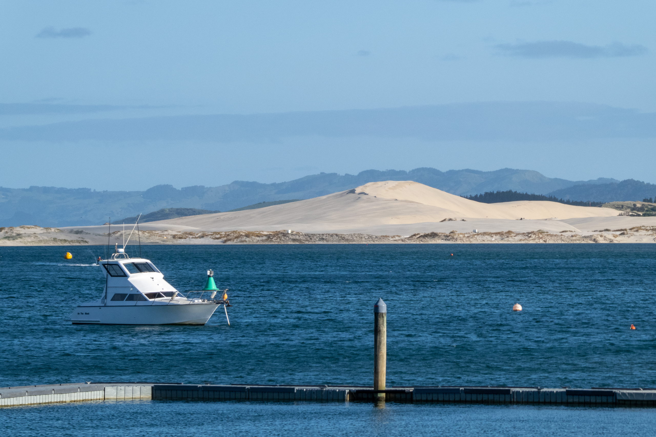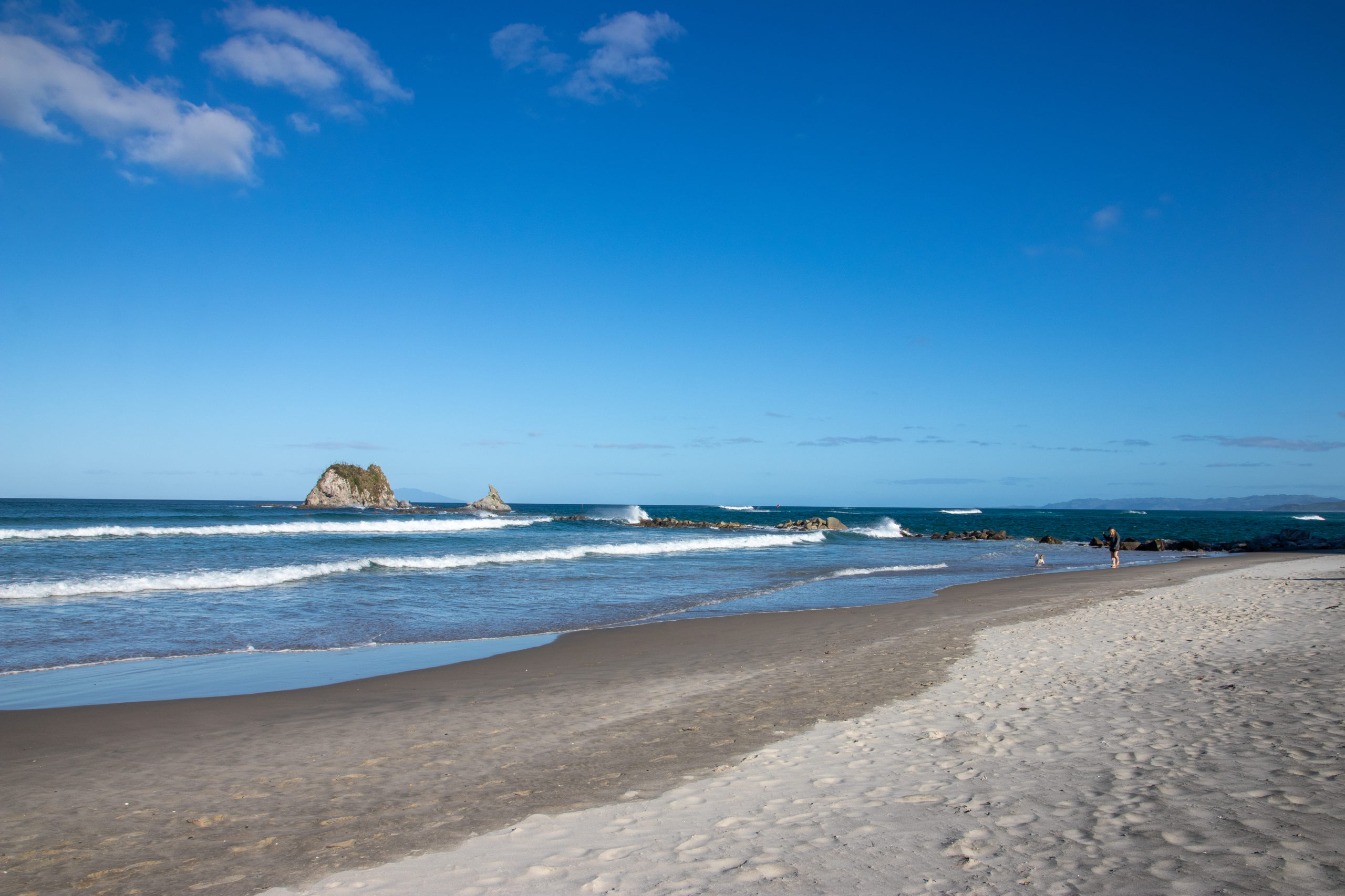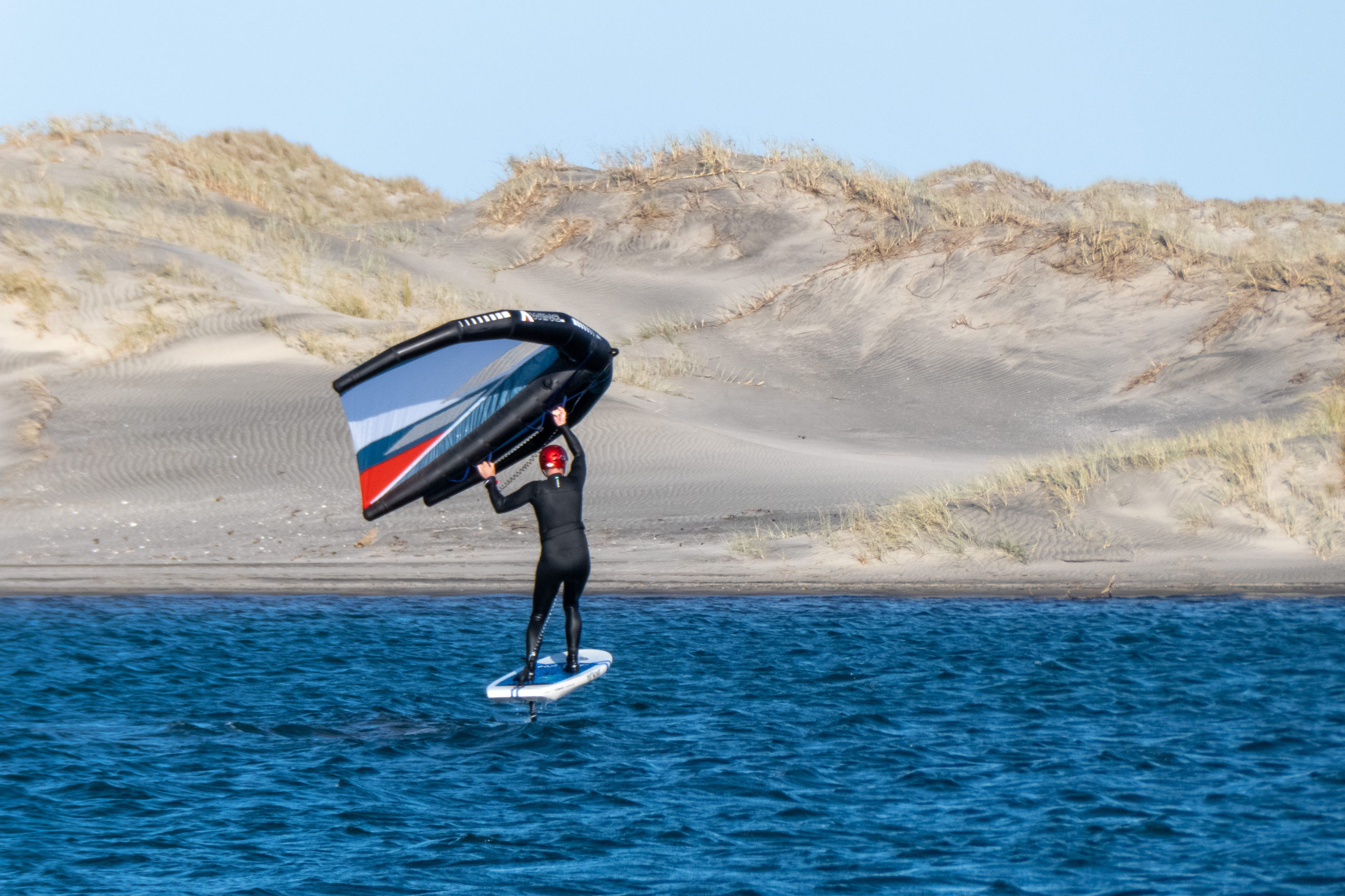 Es geht durch grüne Landschaft weiter zum Surfer Beach von Mangawhai Heads. Der Strand ist nett und ein paar Leute probieren sich am Surfen. Ein Stück weiter sehe ich sogar, wie ein Anfänger gerade etwas mit einem Foil Wing Surfboard aufschwimmt. Wenn man das gut beherrscht, gehen die Dinger ab wie Sau. Am Abend checke ich an der riesigen Uretiti Beach Campsite ein. Programm wie immer.