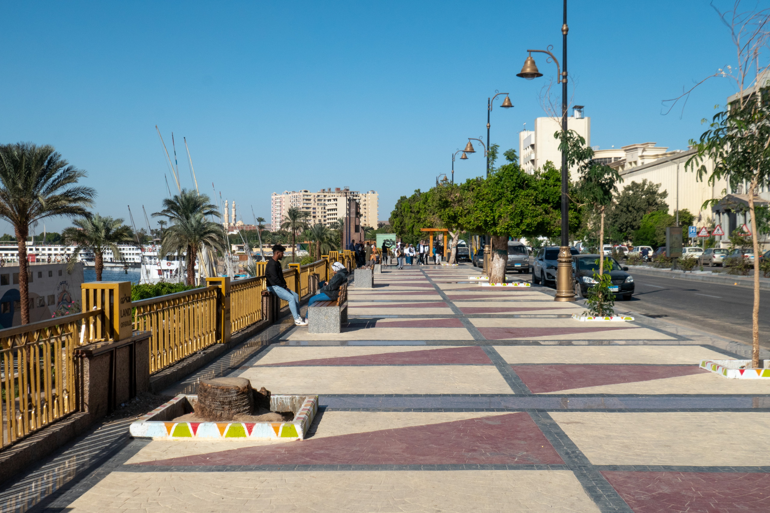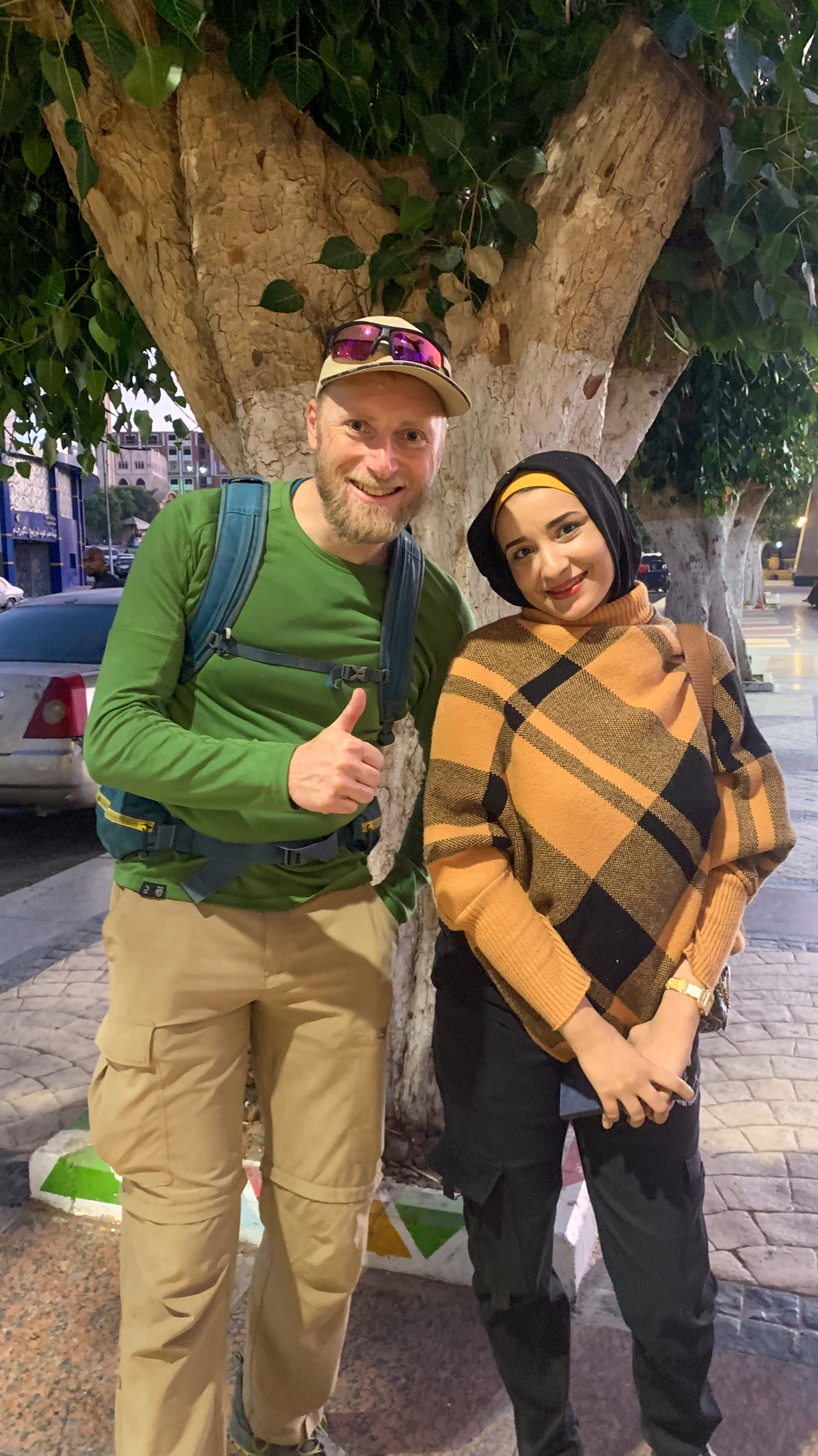 Auf der linken Straßenseite entdecke ich viele Leute. Cool, sieht nach einem Markt aus. Und los. Es ist der alte Souk, so werden auf Arabisch Märkte genannt, von Assuan. Leider ist es kein Fressmarkt, aber trotzdem ziemlich cool. Am weiteren Weg entlang der Uferpromenade bittet mich eine junge Frau um ein Foto mit ihr. Sie staunt nicht schlecht, als ich ebenfalls eines haben möchte. 🙂