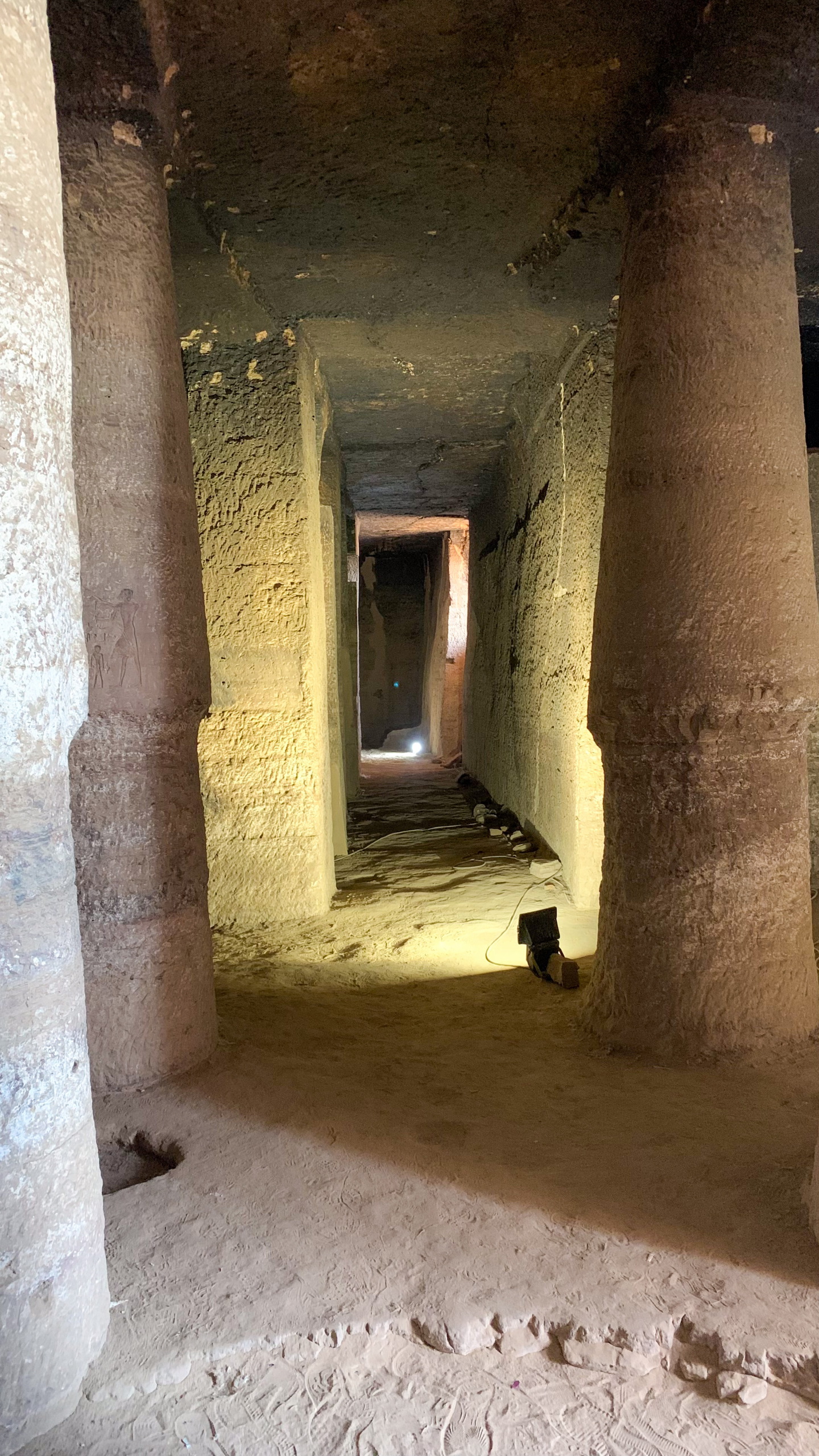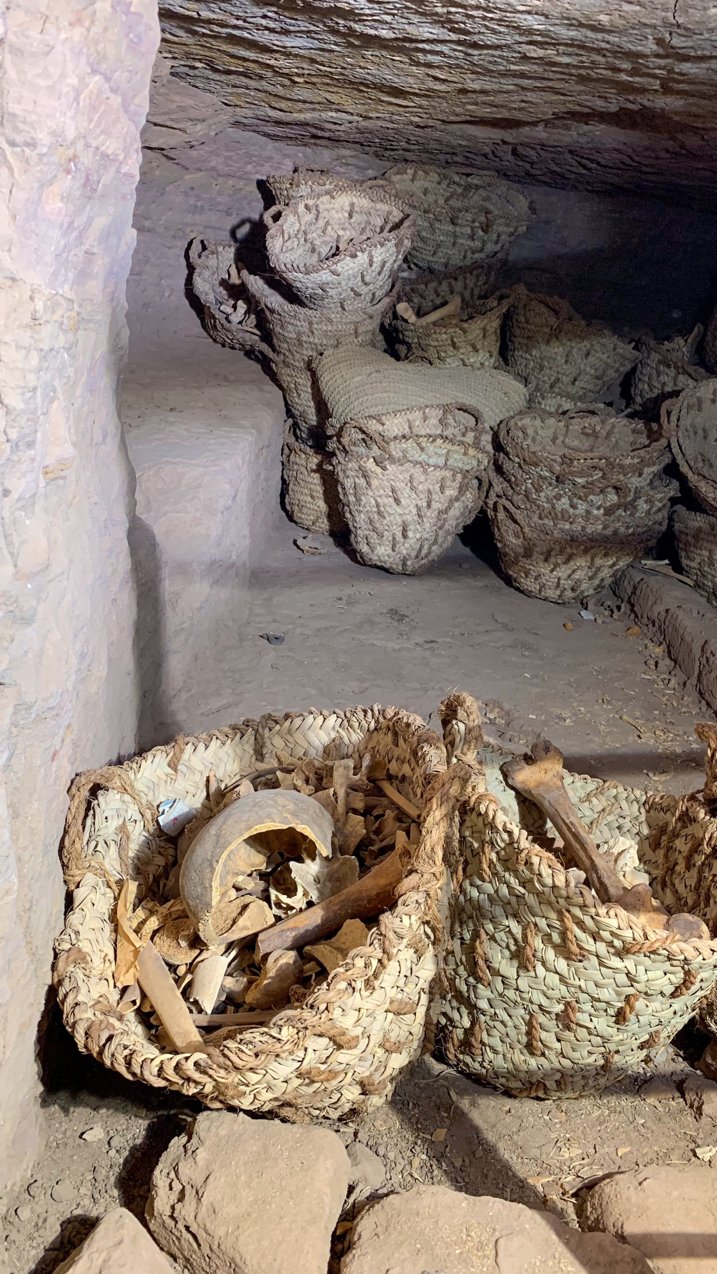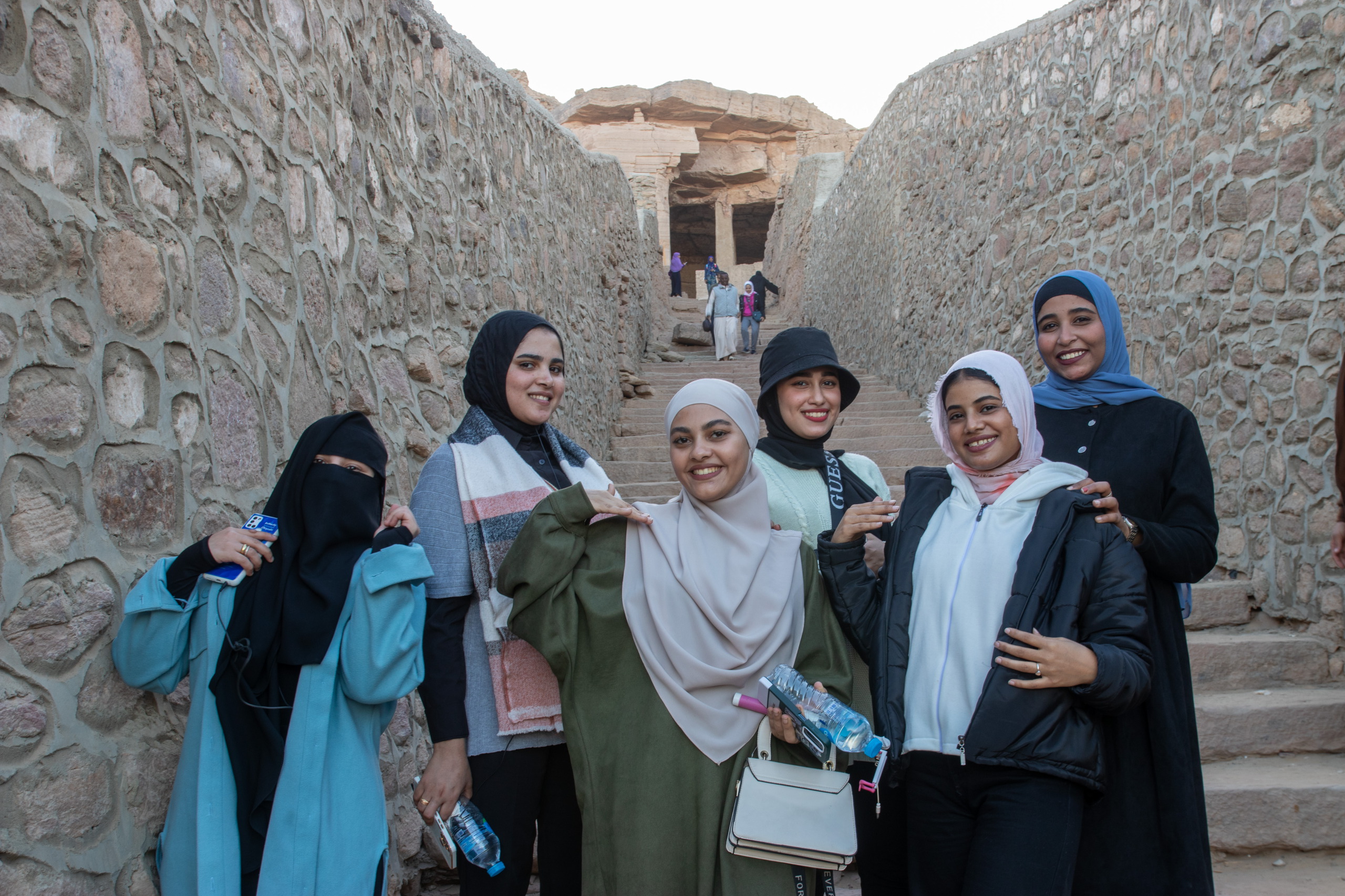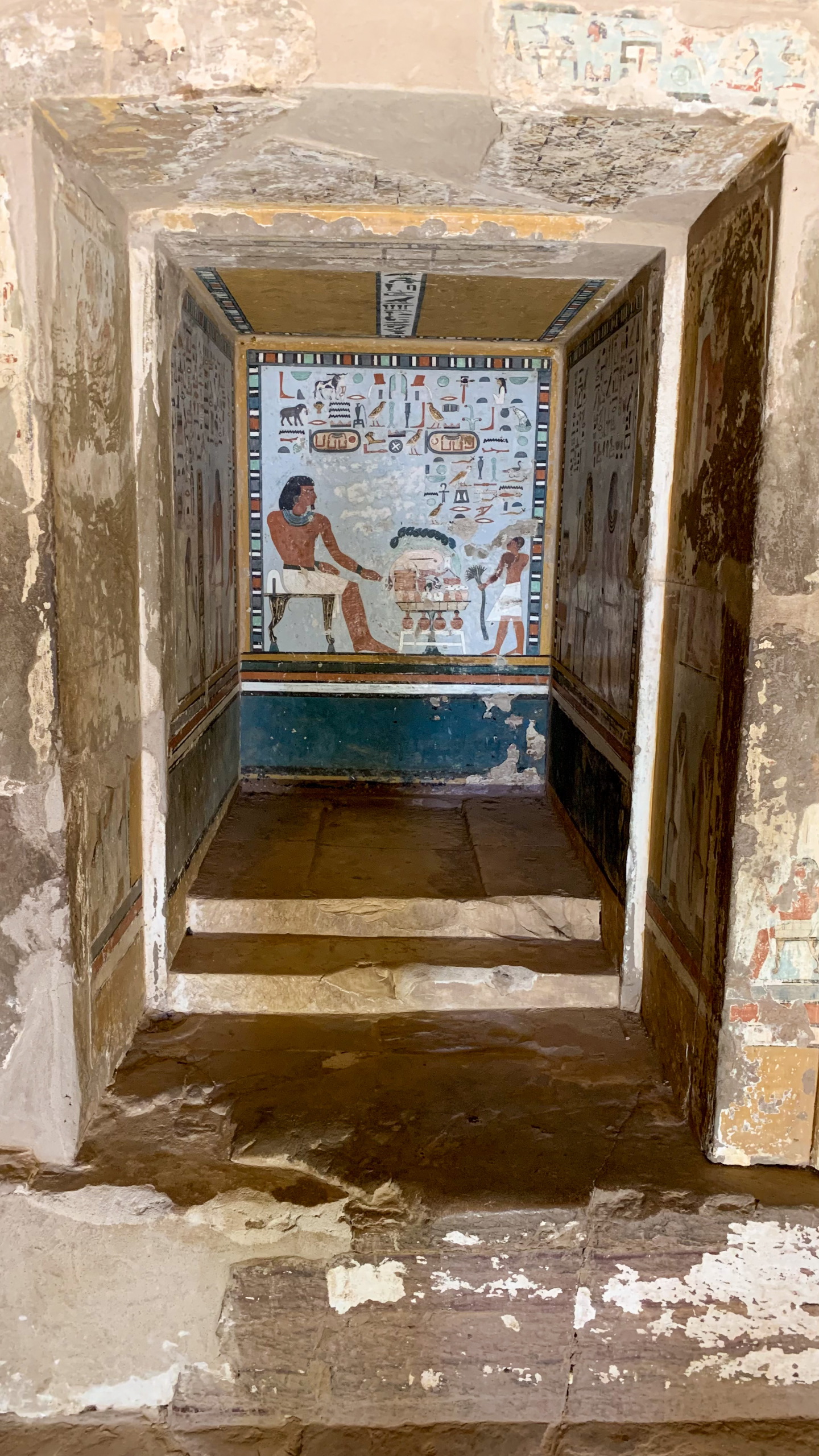 Vom Aussichtspunkt hat man einen tollen Überblick über den Nil, auf dem einiges los ist. Viele kleine Fährschiffe, von denen ja bekanntlich am Nachmittag keine mehr fahren. Jajaja, bla bla. Außerdem sind sehr viele Kreuzfahrtschiffe unterwegs. Das muss ja voll das mega Geschäft sein. Vorbei an einigen Grabkammern und den Resten einer Kirche geht es wieder die Stufen runter, wo ich wieder einmal Fotograf spielen darf. Klar, dass ich dann auch noch aufs Foto soll. 😃