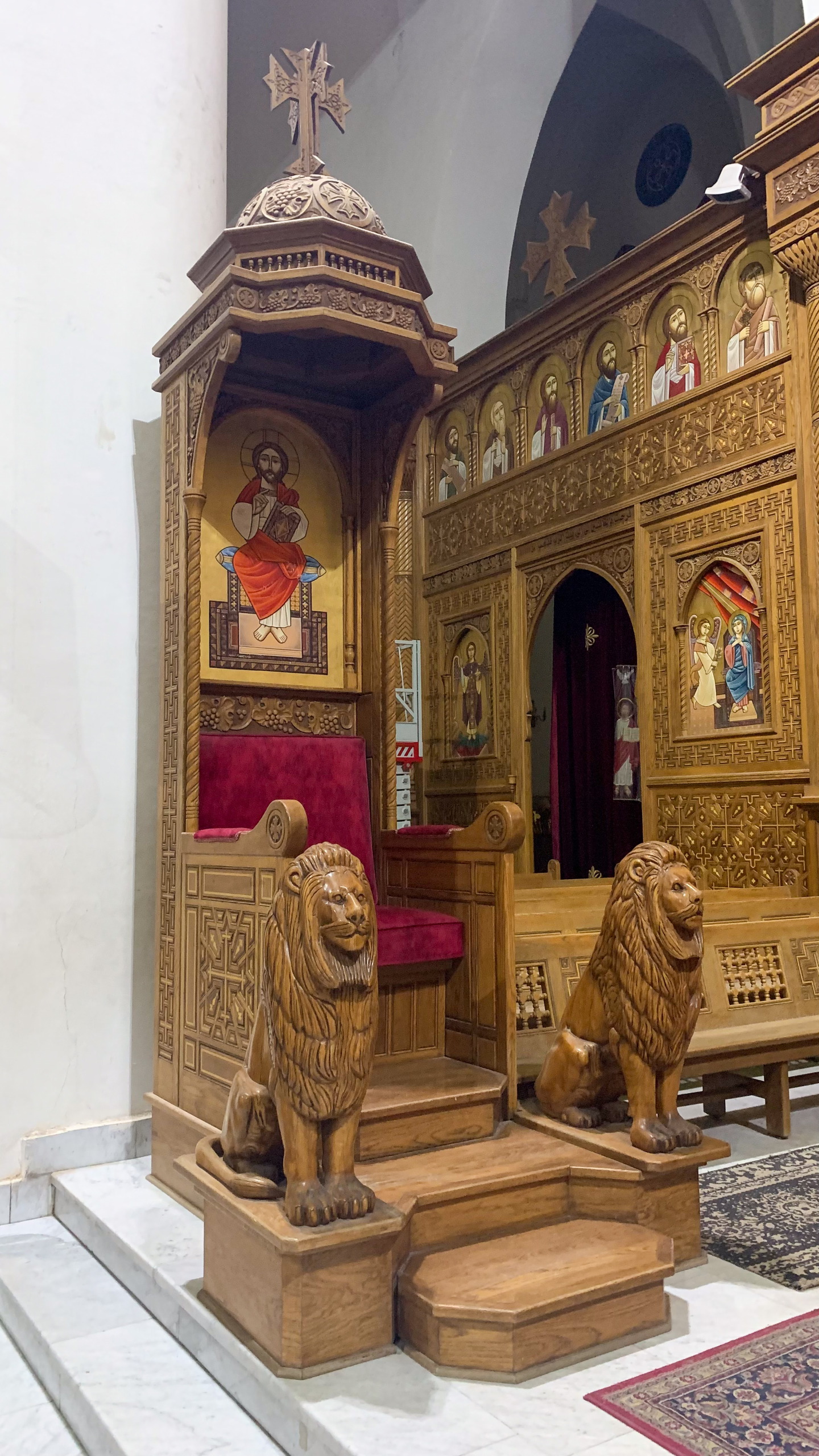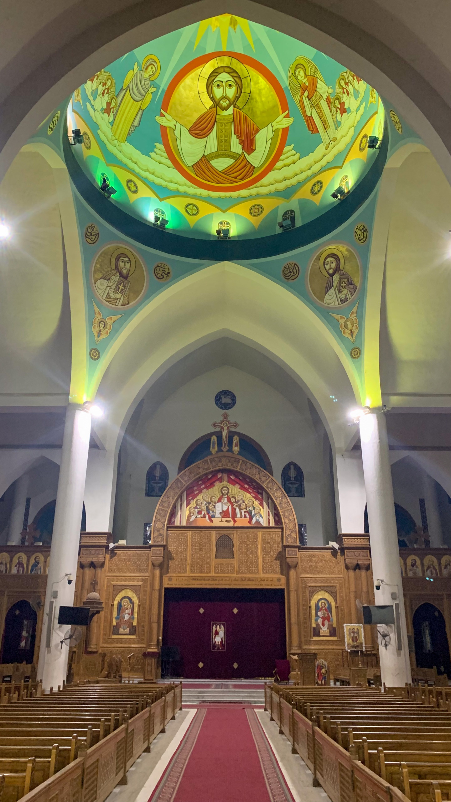 Ein großes Gebäude weckt mein Interesse. Sieht wie eine Moschee aus. Hmmm, Kreuze auf den Türmen, also eine Kirche. Ich frage die Wachmänner, ob man sie besichtigen kann. Klar. Der Name der Kirche: Coptic Orthodox Cathedral of the Archangel Michael. Pfuh, langer Name. In einem Raum ganz hinten quatscht mich eine Frau an. Sie arbeitet freiwillig in der Kirche und kann mich herumführen, wenn ich will. Klar will ich das. Sie zeigt mir alles und wenn ich will, können wir auch in den 2. Stock rauf gehen. Wie? Zweiter Stock? Ja, beim koptischen Baustil haben Kathedralen immer 2 Stockwerke mit Sitzbänken. Cool. Sie führt mich herum und gibt mir viele Informationen über die koptische Kirche. Zum Schluss geht es noch in den Shop, wo ich Lesezeichen aus Papyrus kaufe.