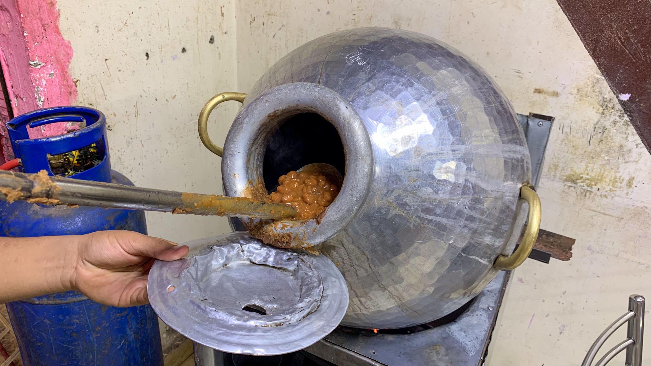 Durch fast verlassene Straßen spaziere ich Richtung Hostel, entdecke aber einen kleinen Imbiss, in dem zwei junge Burschen arbeiten. Ich bestelle ein Ful Falafel und Melanzanigatsch. Alles schmeckt sehr gut, also gönne ich mir noch einen mehr. In einem riesigen Topf, der wie eine Kanone aussieht, wird Foul zubereitet. Dabei handelt es sich um sehr langsam gegarte Fava Bohnen, die es hier schon zum Frühstück gibt. Kurz vor der Unterkunft besorge ich noch Wasser und kaufe ein kleines Dattelgebäck, das auch sehr gut schmeckt. Das Abendprogramm unterscheidet sich kaum von dem der anderen Tage. Licht aus um ein Uhr.