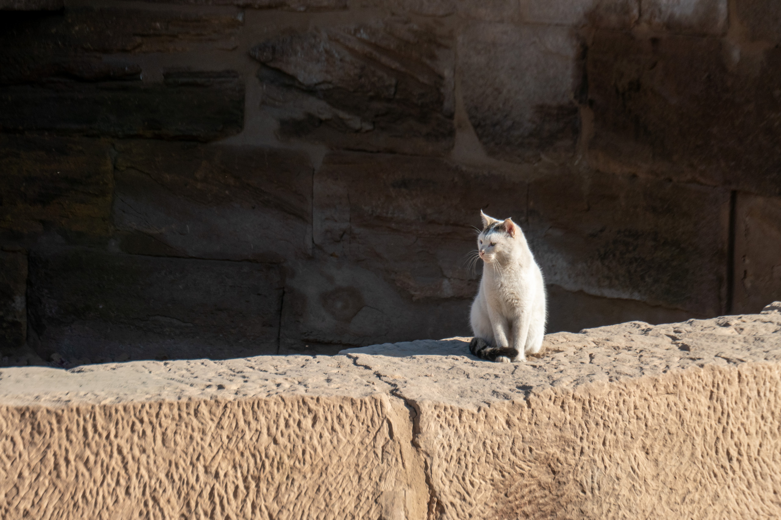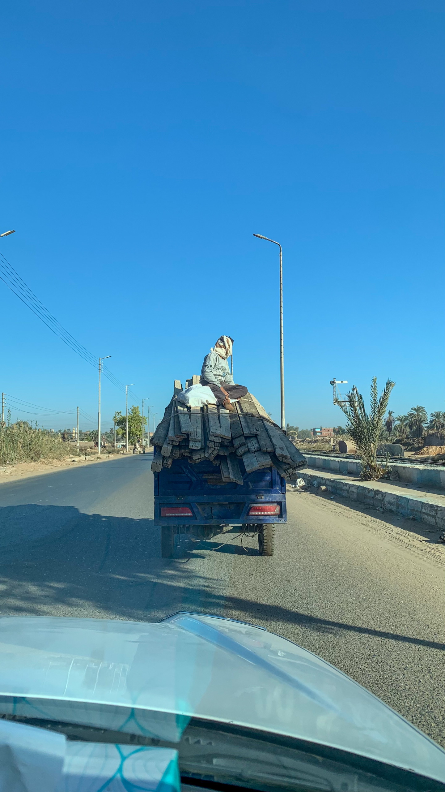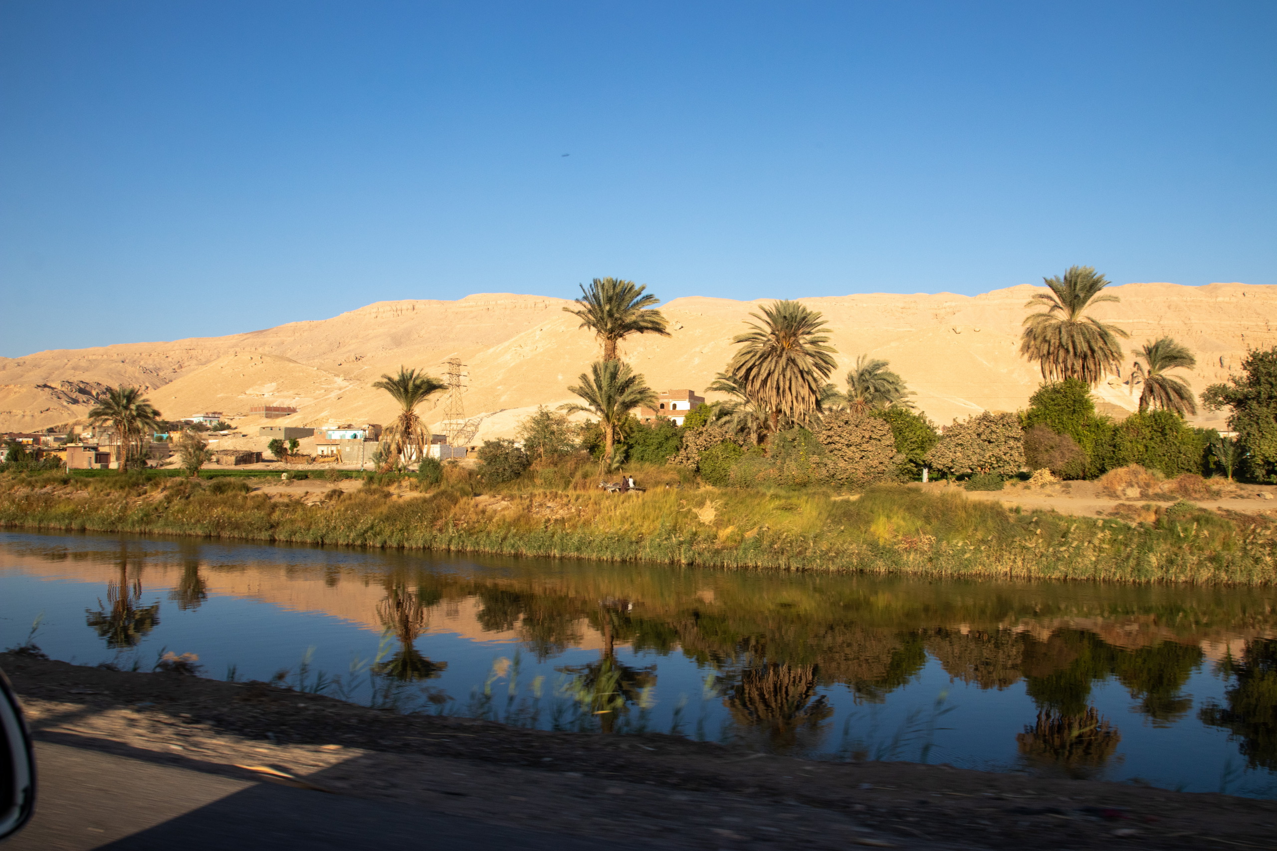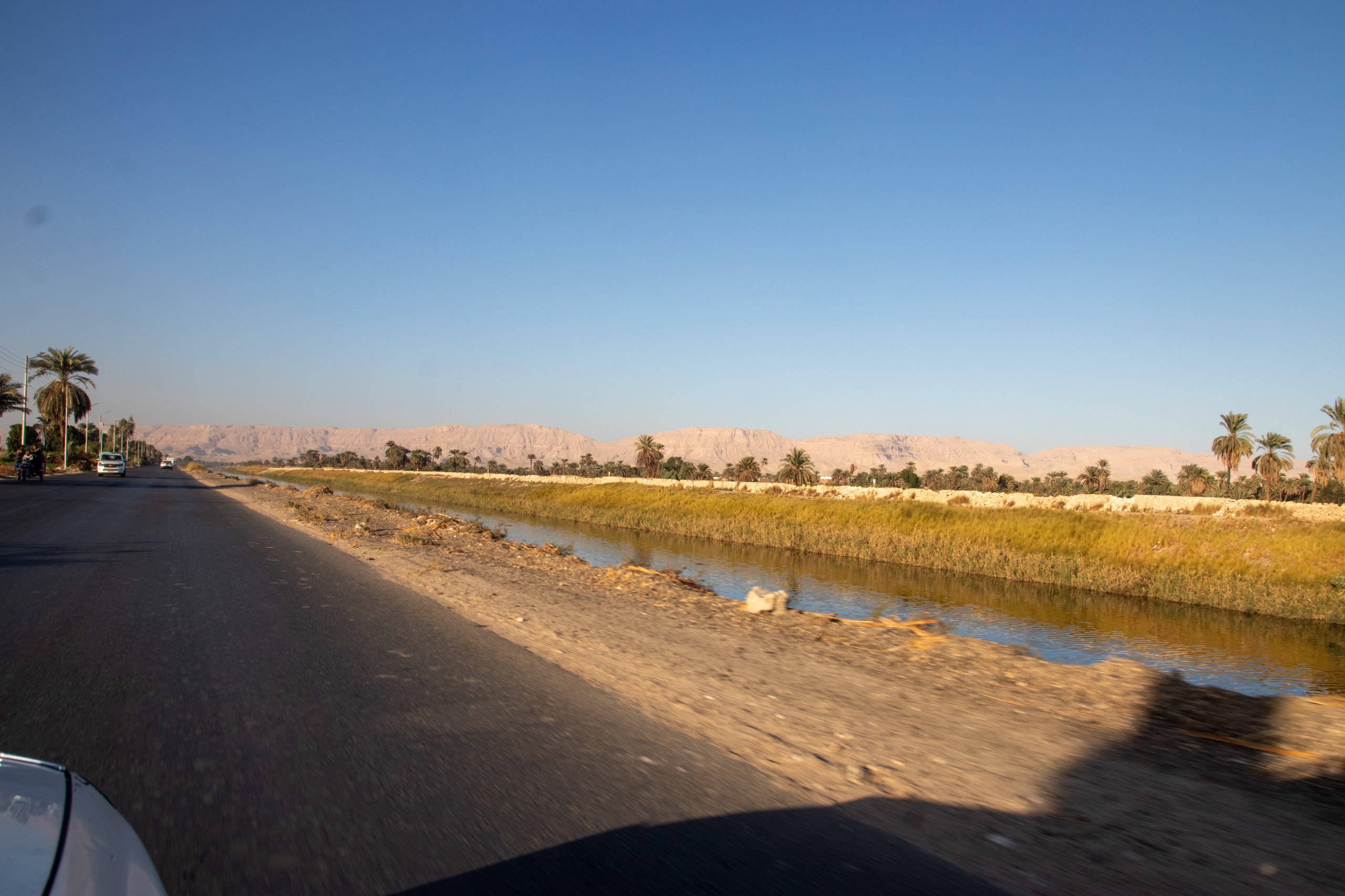 Am frühen Nachmittag geht es weiter. Nach etwas mehr als einer Stunde stoppt uns ein Polizist bei einem Checkpoint und kassiert Fares’ Führerschein. Fares meint, er will vermutlich Geld und ich soll im Auto warten. Einen Augenblick später kommt er zurück. Ich soll mit meinem Reisepass kommen. Der Polizist hat noch nie etwas von Österreich gehört und wollte einfach nur meinen Reisepass sehen. Alles in Ordnung. Also fast, denn ein aufgebrachter Mann schimpft mit uns, da wir direkt vor seinem Cafe gehalten haben. “Da können ja keine Kunden mehr parken!”. Äh ja, ist recht. Weg hier.