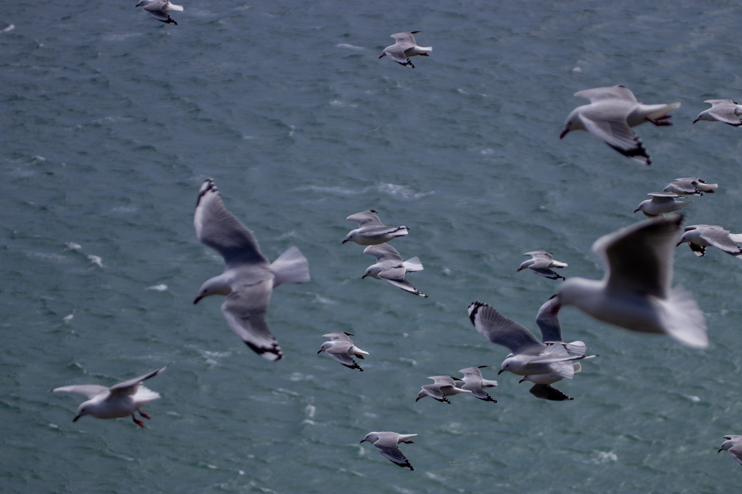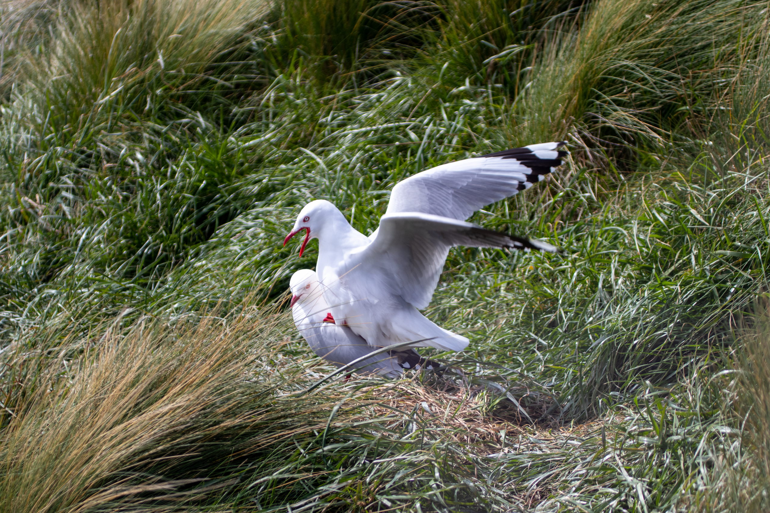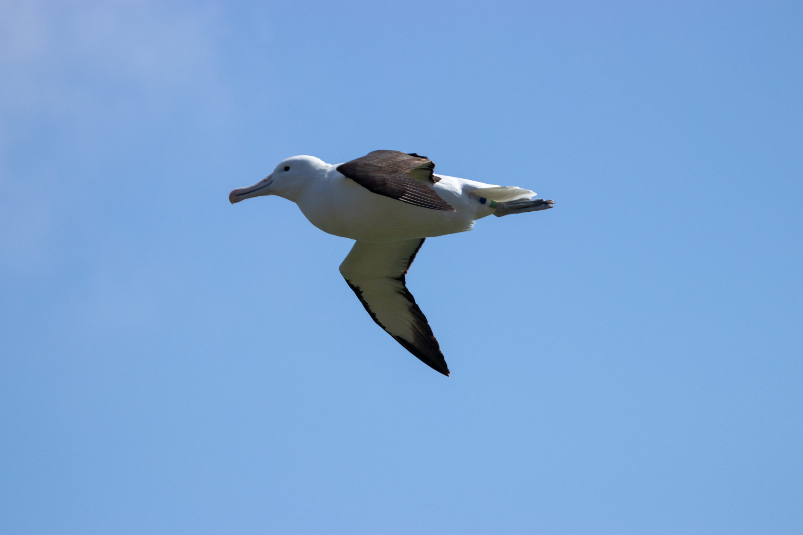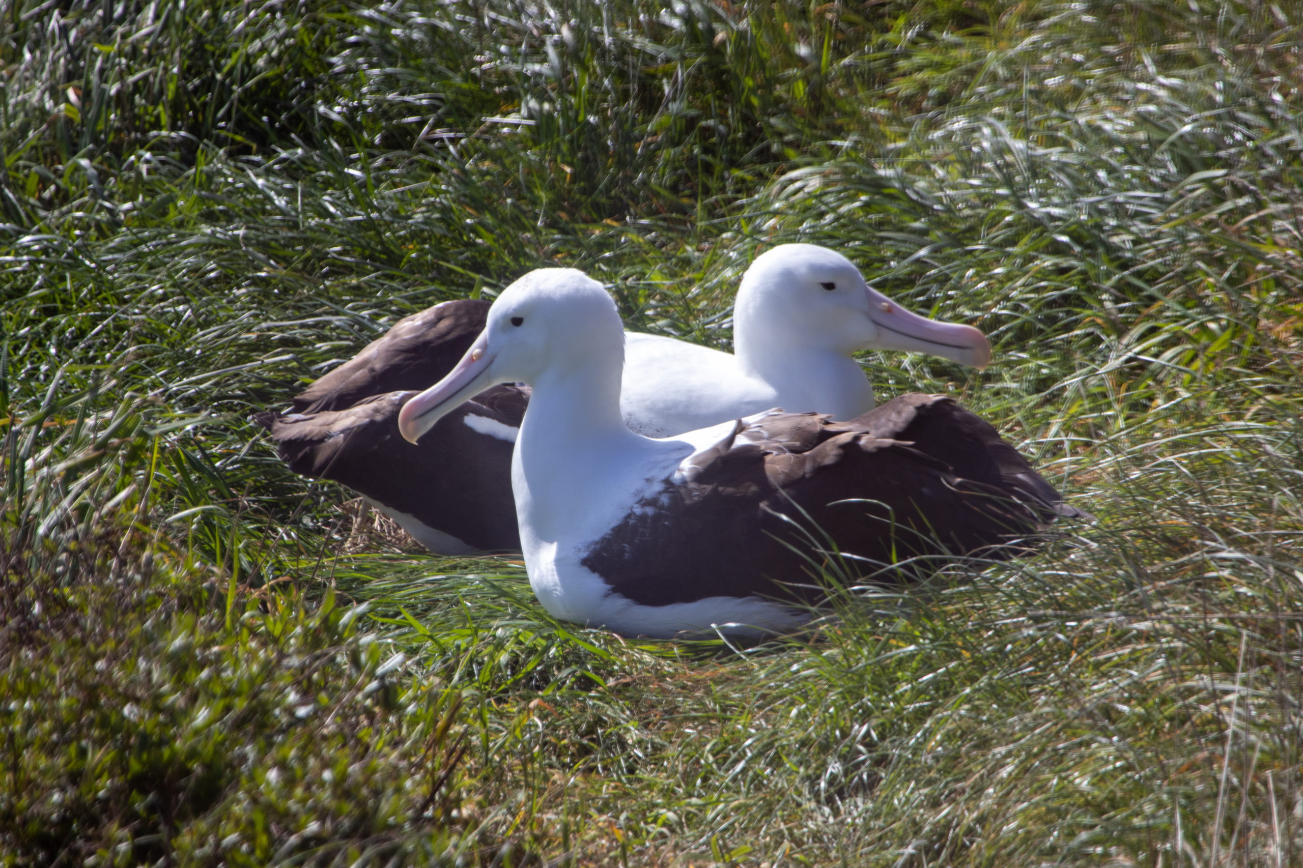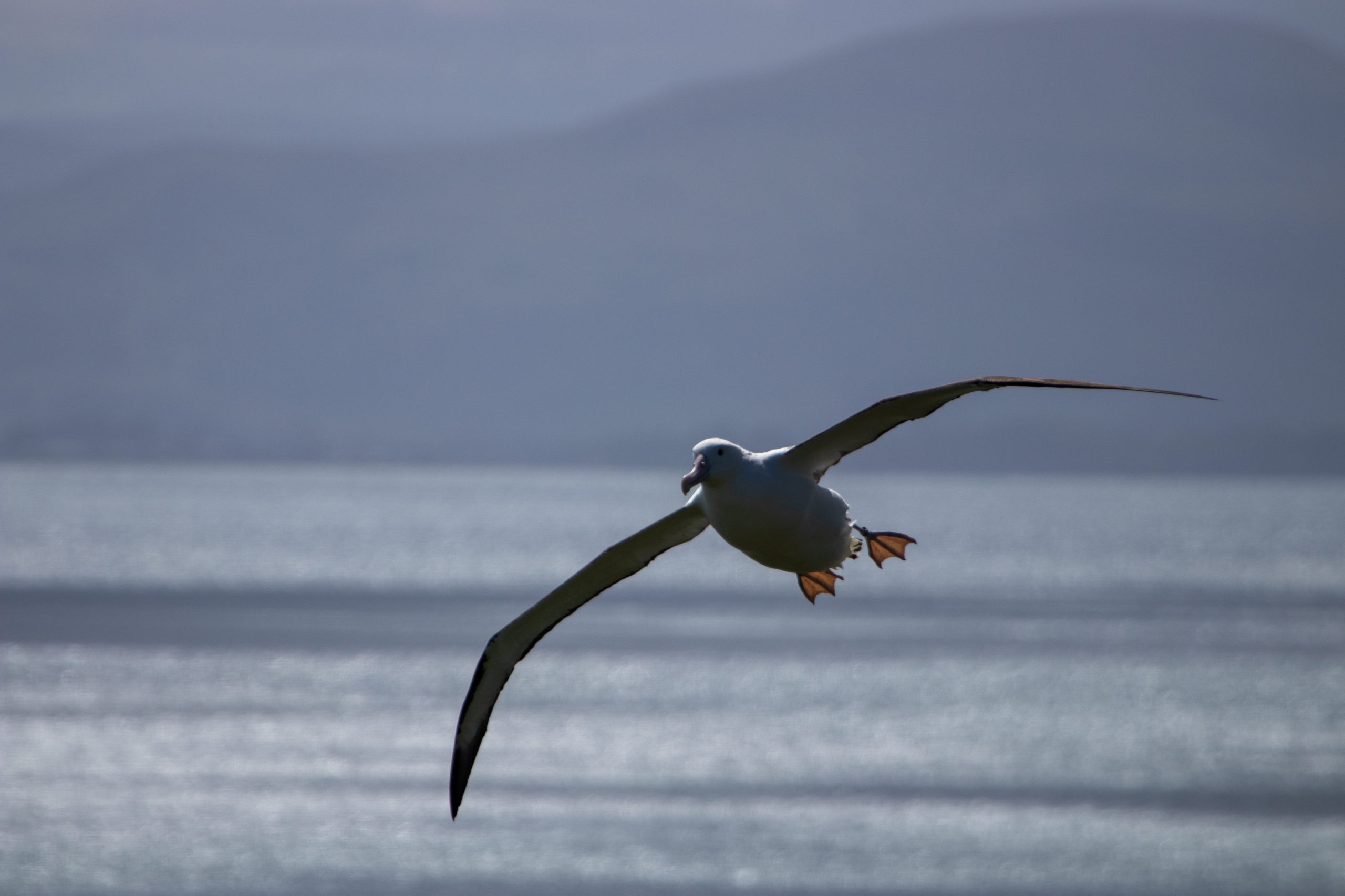 Als ich am Royal Albatross Centre am Ende der Otago Peninsula ankomme, regnet es immer noch, am offenen Meer ist es aber schon etwas heller. Also erst einmal etwas essen und abwarten. Und tatsächlich kommt die Sonne raus. Die Dame am Schalter sagt mir, dass der starke Wind ideal ist, da dann viele Albatrosse in der Luft sind. Sie lieben starken Wind, da brauchen sie nur die Flügel ausstrecken und schon schweben sie durch die Lüfte. Ich bin der einzige Besucher und bekomme eine private Führung. Cool. Zuerst erklärt mir die nette Frau allerhand über die Albatrosse, wie sie trinken, dass sie die Flügel einhaken können und noch vieles mehr. Mit einer Größe von 140 Zentimeter und einer Flügelspannweite von bis zu 330 Zentimeter, sind das echt riesige Tiere. Nach einem kurzen Video geht es den Hügel hoch in den Beobachtungsturm. Etwas mehr als zehn Albatrosse sind bereits eingetroffen und bereiten sich auf die Paarung vor oder sind schon mitten dabei. Die Sonne scheint. Perfekt.