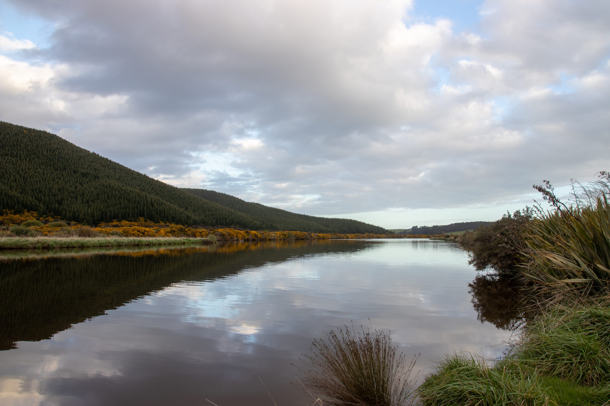 Es ist noch ca. zwei Stunden hell und ich könnte noch etwas Strecke machen. Nur wo schlafen? In einer App entdecke ich einen gratis Campingplatz. Perfekt, der wird angesteuert. Es geht über eine ziemlich abgelegene Schotterstraße, die einen idyllischen Fluss entlang bis nach Toko Mouth führt. Als einziges Auto stehe ich am Campingplatz und esse zu Abend. Es dauert lange, bis es komplett finster ist. Mir kommt Patagonien in den Sinn, da es dort ähnlich war. Mit 4G-Empfang und Bierbegleitung arbeite ich bis halb zwei Uhr am Laptop.