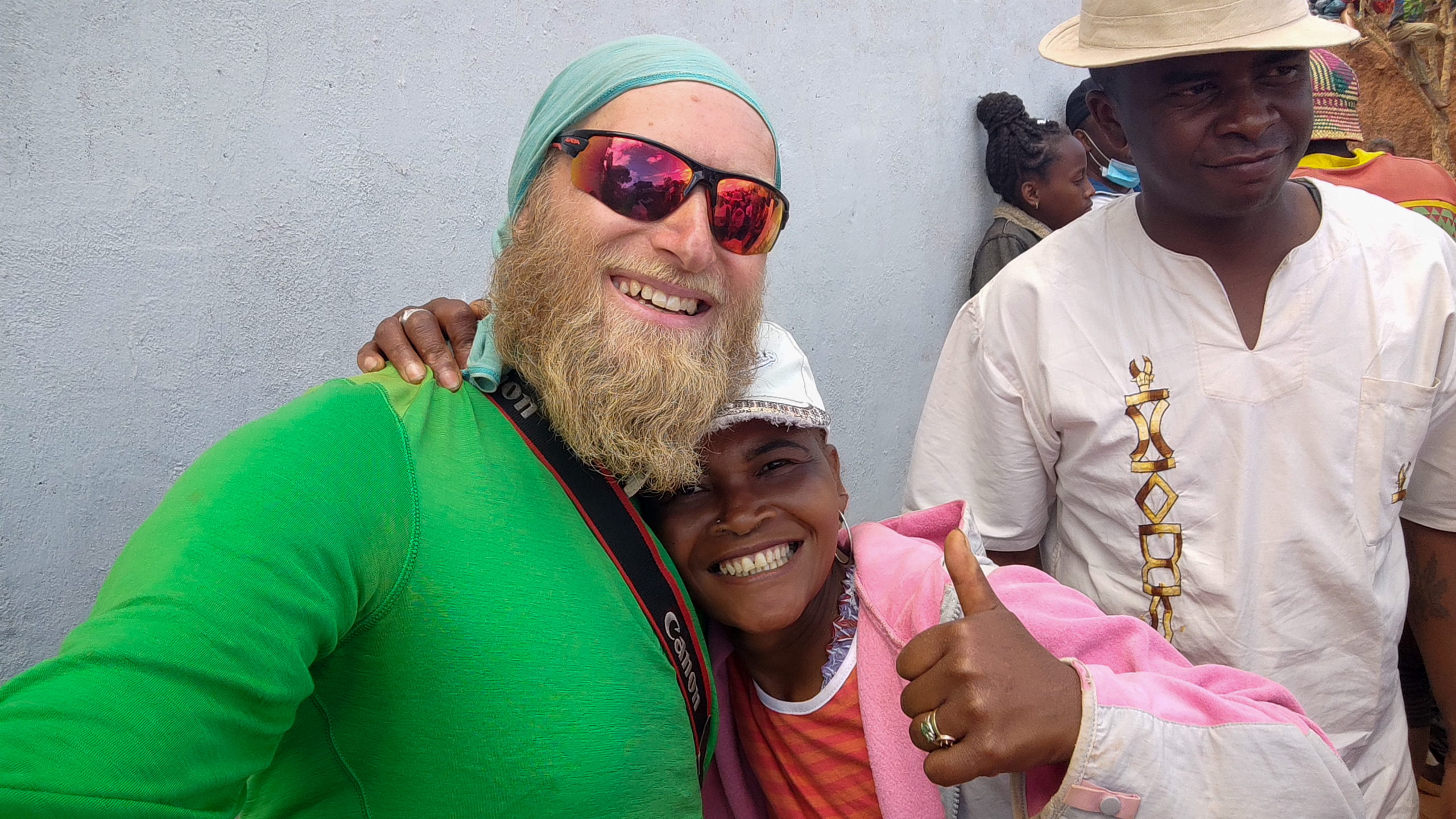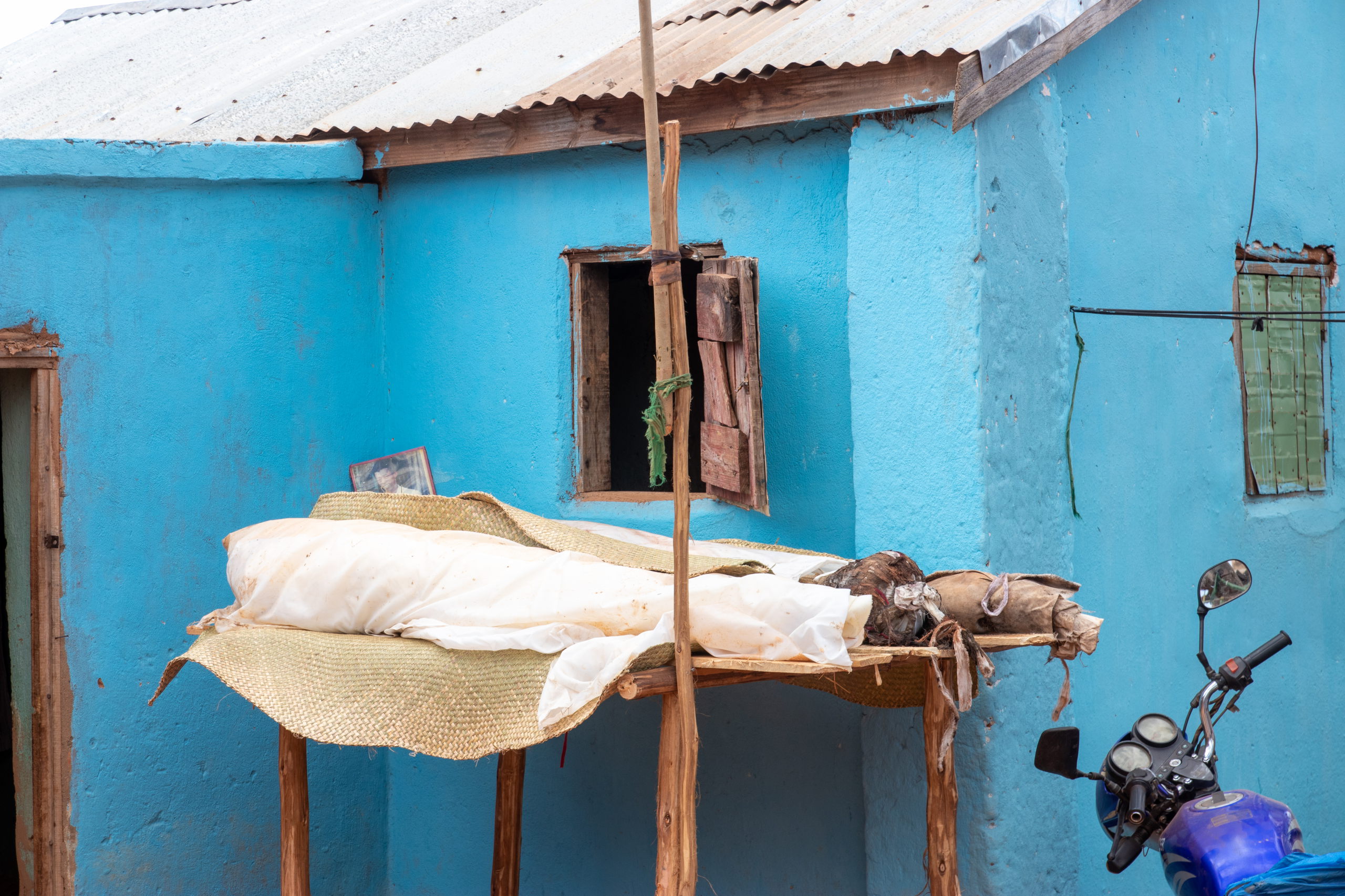 Und auf genau so einer Feier geht es jetzt. Bari bringt mich zur Familie, die das Fest veranstaltet, und ich zahle in die Gemeinschaftskasse ein. Neben dem Haus sind bereits drei Gebeine aufgebahrt. Das müssen die Leute auf den Fotos sein. Zeit, sich unauffällig unter die Gäste zu mischen. Das ist allerdings schwierig, da ich als einziger Weißer auffalle, wie ein bunter Hund. Und so dauert es keine fünf Minuten, bis mich eine Frau auf die Tanzfläche holt und ich mit den Gästen zu sehr eigenwilliger Musik tanze. Immer wieder kommen ziemlich betrunkene Männer und quatschen mich an. Leider verstehe ich kein Wort, da ich kein Französisch und sie kein Englisch sprechen, falls sie überhaupt noch in der Lage sind zu sprechen. 😁