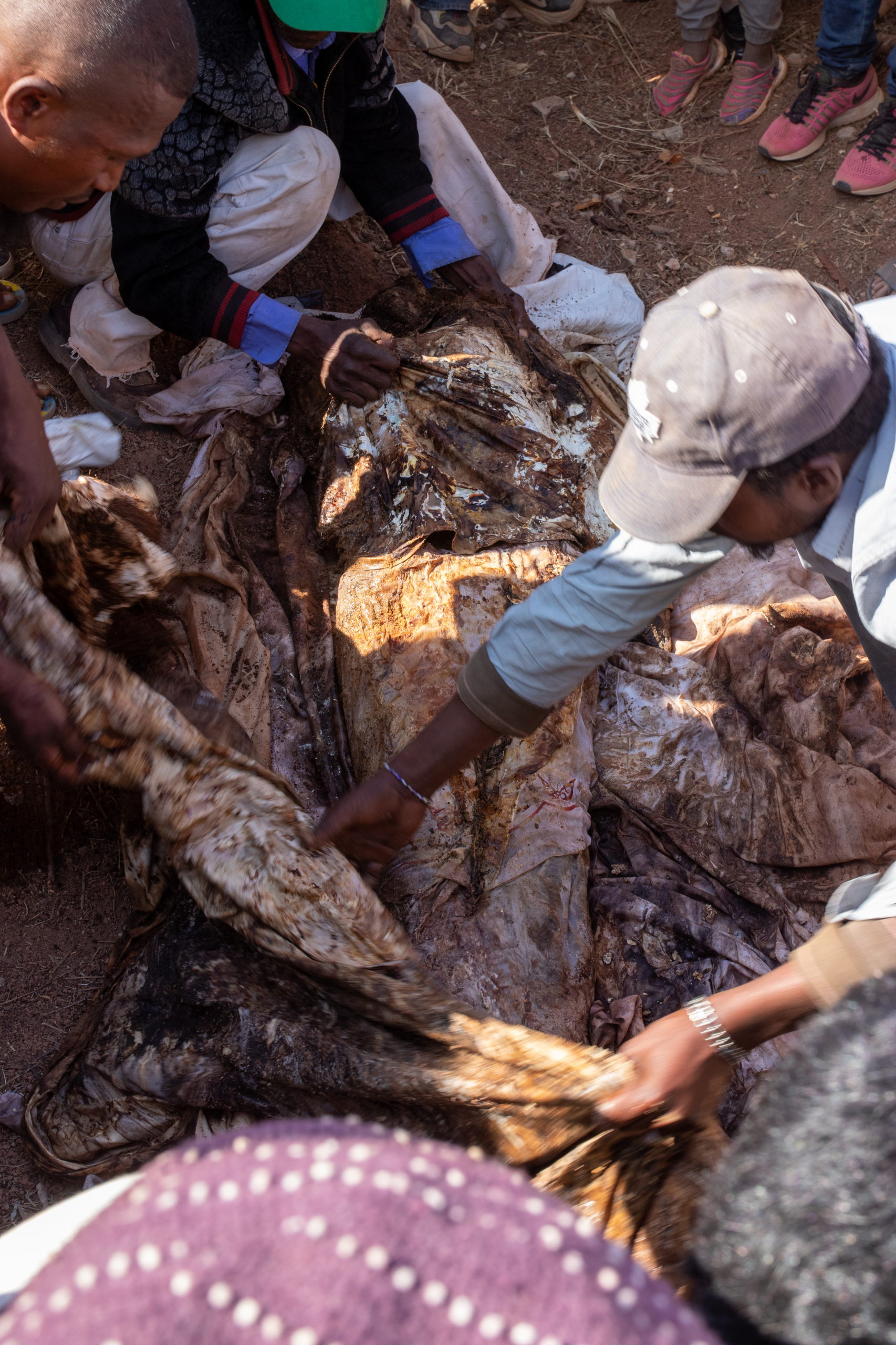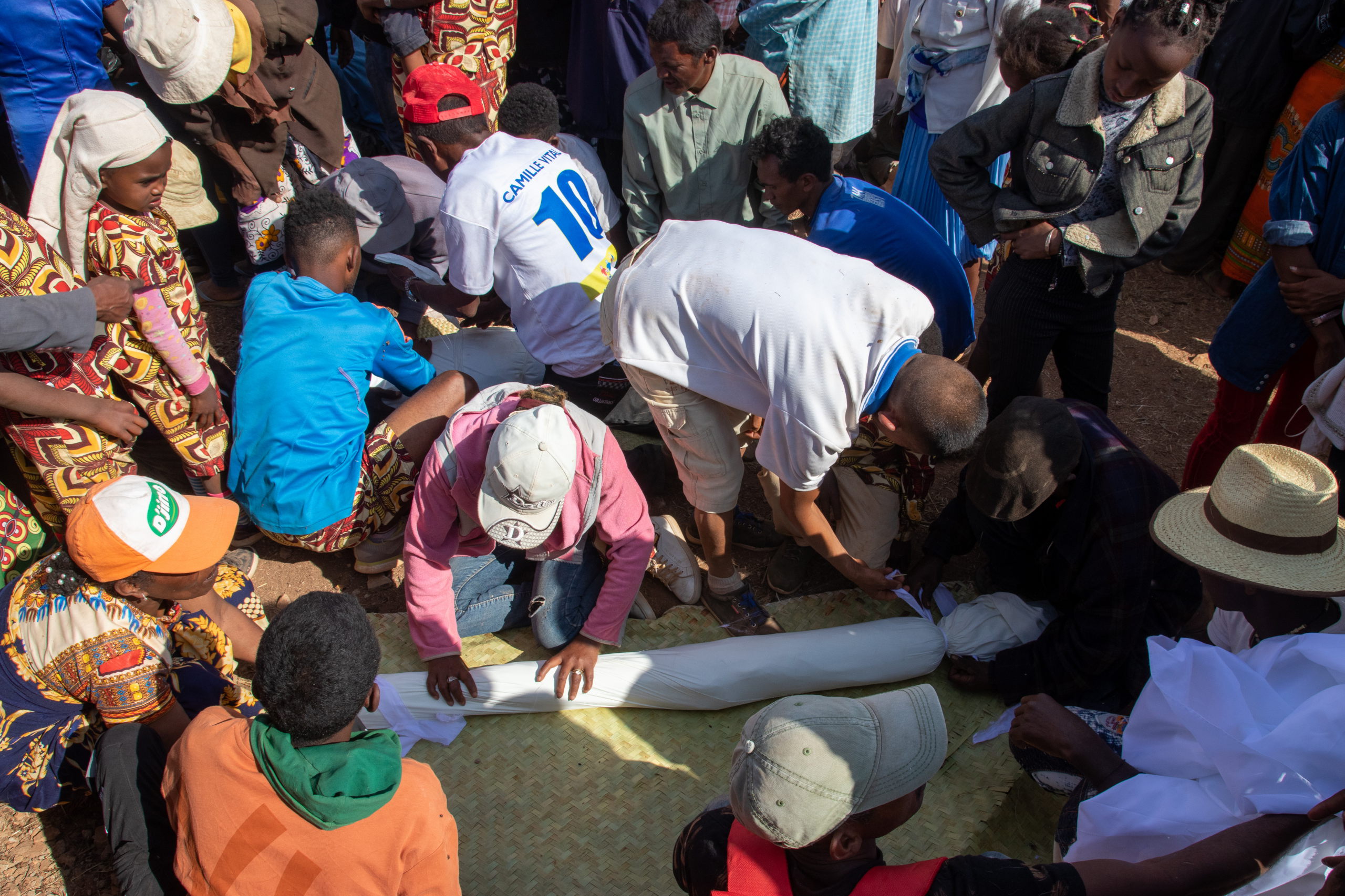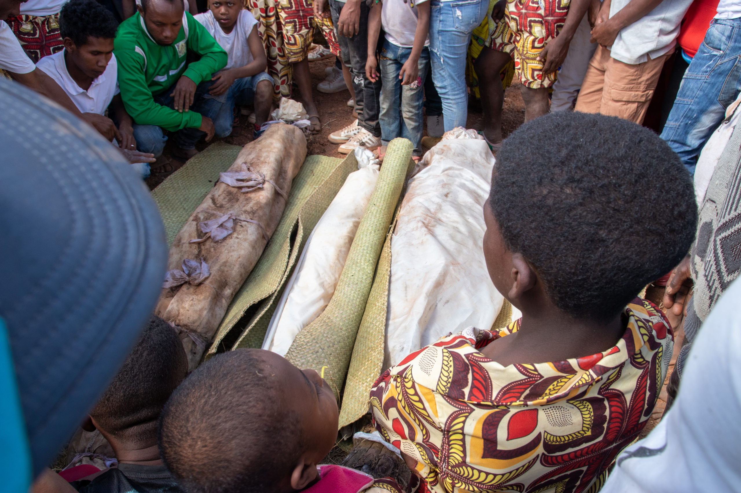 Tja, und was ist nun so eine Famadihana eigentlich? In Madagaskar ist der Tod nicht für die Ewigkeit. Die Toten werden zu Geistern, die in Bäumen, Tieren und in der Luft Leben. Darum sollte man auch nicht mit ausgestrecktem Finger auf etwas zeigen, da man damit die Geister beleidigen könnte. In den Gruften ist es dunkel und kalt und die Toten sind gelangweilt und vermissen ihre Familien, weshalb sie von Zeit zu Zeit zurückkehren möchten. Bei einer Famadihana werden die Gräber geöffnet, die in Tücher gewickelten Toten zum Sonnenbaden aufgebahrt, während die Familie feiert und dann mit ihnen tanzt.
