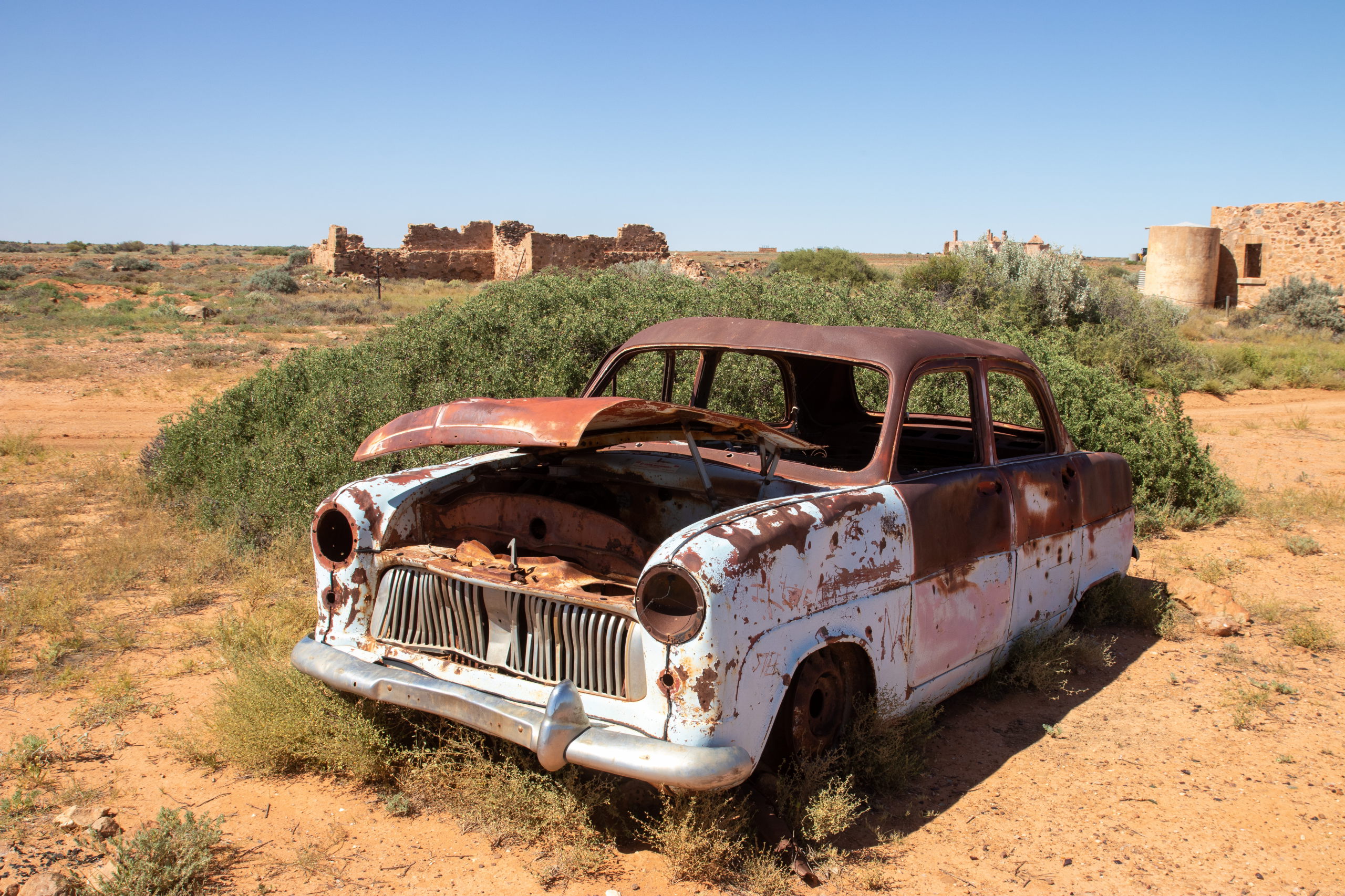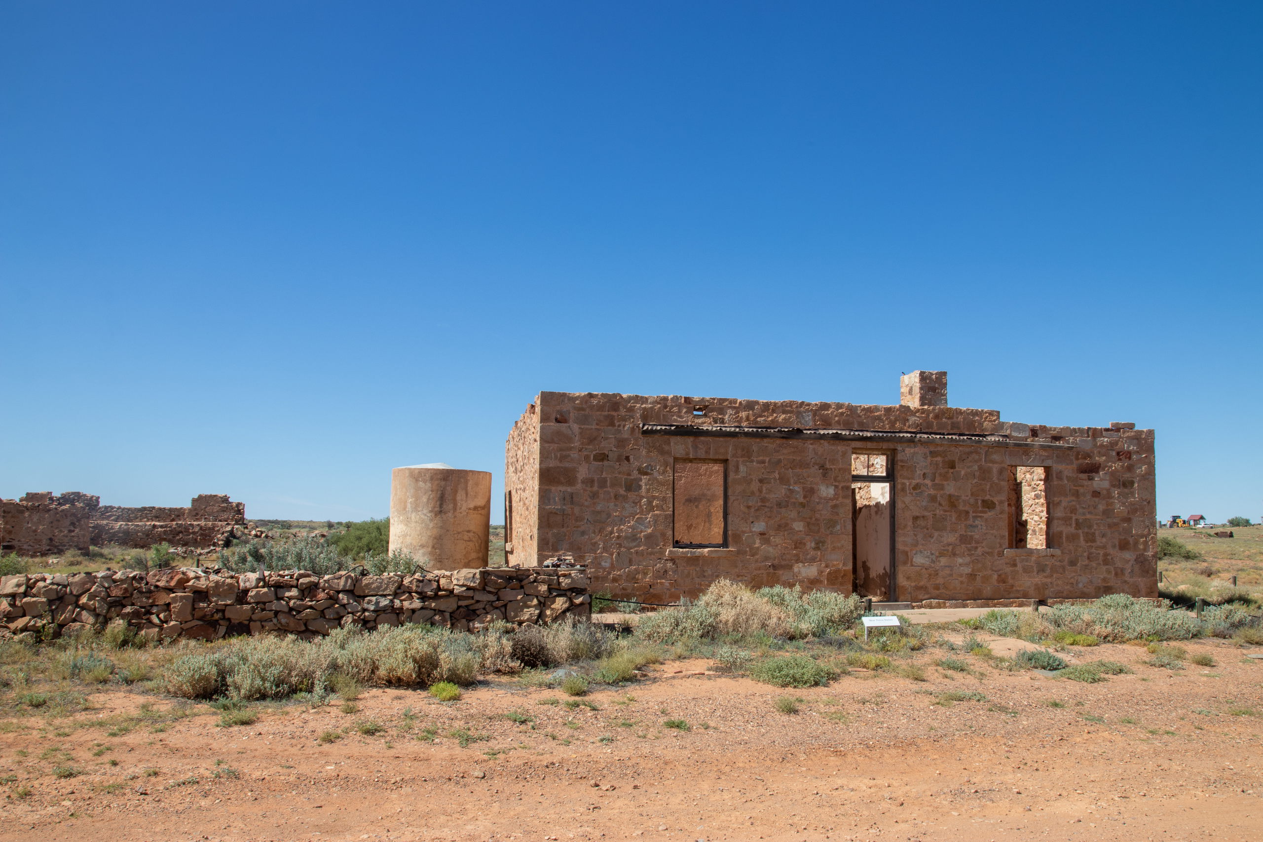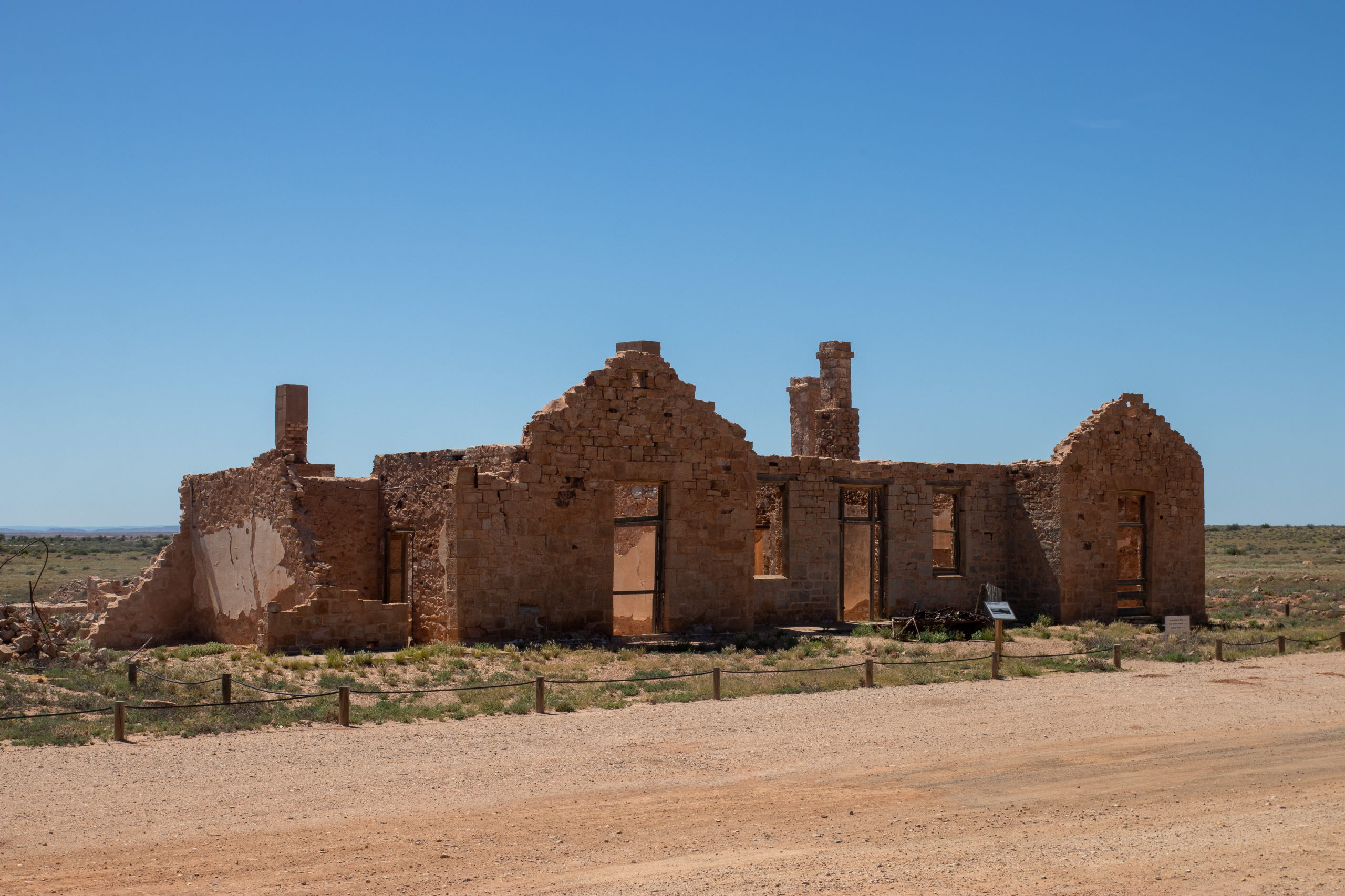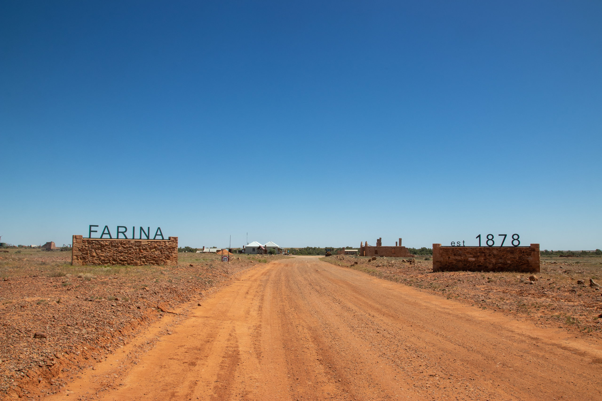 Mein erster Halt ist in Farina, einer Geisterstadt, die früher eine Versorgungsstation für Züge war. Heute stehen hier nur noch ein paar verfallene Gebäude und eine alte Bäckerei, in der sogar noch einmal in der Woche gebacken wird.