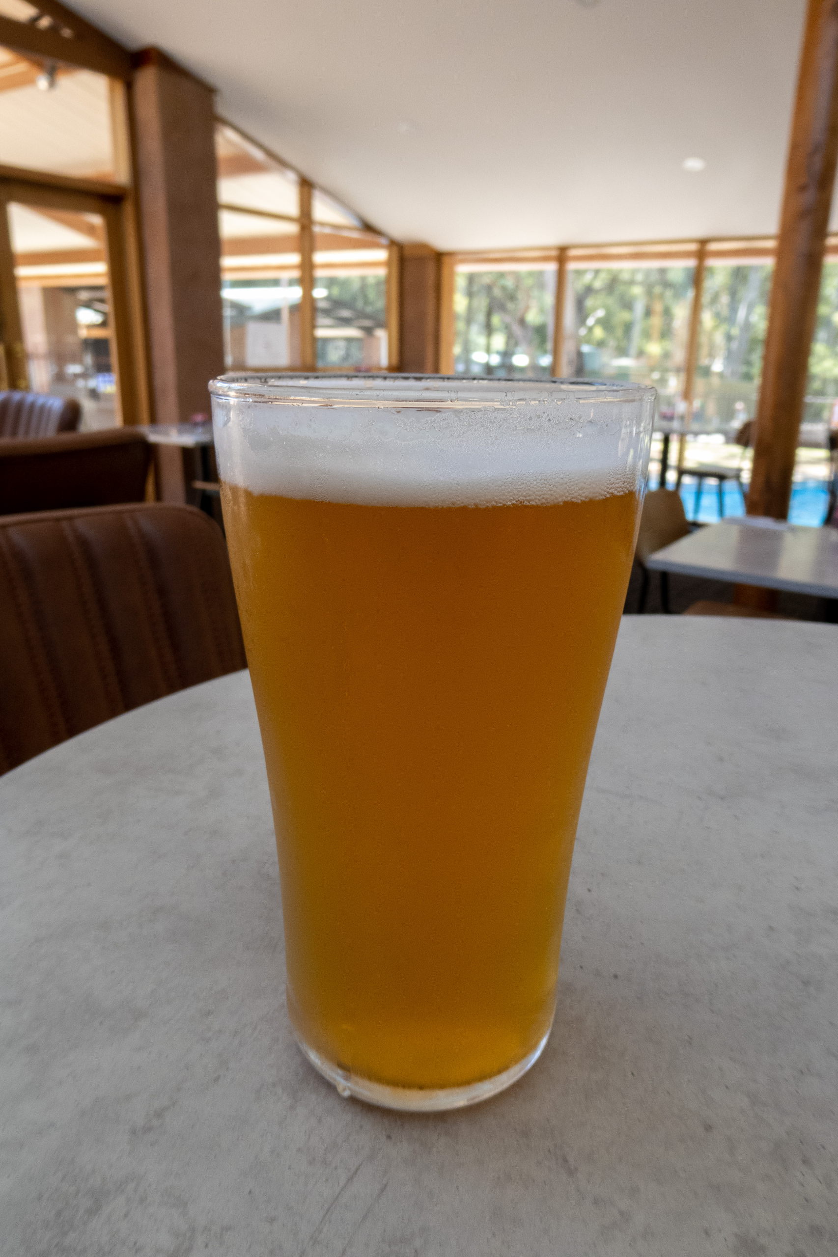 Im Visitor Center checke ich einen Platz an der Campsite und erhalte im Anschluss die Info, dass aufgrund der hohen Temperaturen fast alle Wanderungen für die nächsten Tage geschlossen sind. Gerade einmal zwei Wege sind geöffnet und die führen über einen Großteil entlang der gleichen Strecke. Grrr. OK, dann mache ich die Wanderung eben morgen und gehe gleich zur Bar. 😀 Ich zische ein Bier und arbeite am Laptop, bis ich Hunger bekomme und ins Camp fahre. Nach dem Abendessen geht es wieder zurück zum Ressort, wo mir jemand winkt. Cool, es ist Margaux, die ich gestern kennengelernt habe. Sie sitzt mit zwei Burschen auf der Terrasse. Ich geselle mich zu ihnen und wir unterhalten uns prächtig. Da es sich schon abzeichnet, dass die zwei Bier der letzten Runde nicht reichen werden, kühlen wir noch die restlichen Flaschen aus meinem Kofferraum im Pool ein.