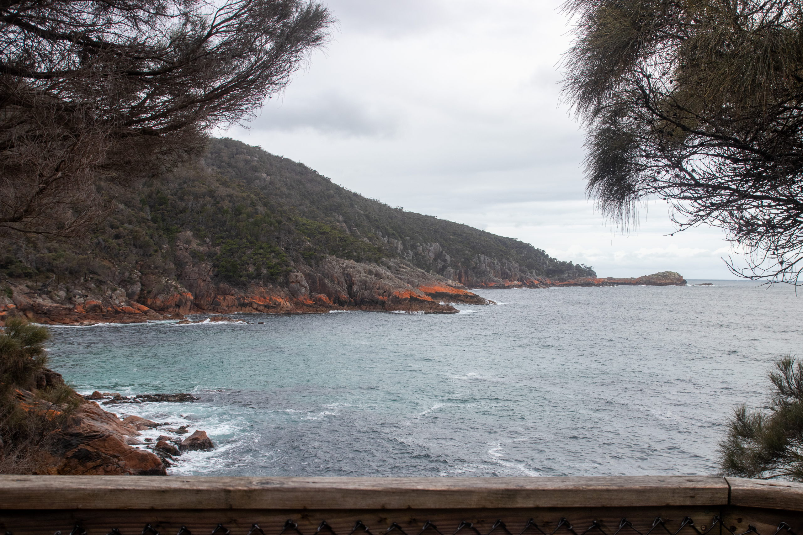 Beim bewährten Stand hole ich Squid & Chips. Nach dem köstlichen Steak Sandwich von gestern ist die Erwartung groß, die Enttäuschung leider auch, denn sie schmecken extrem fade. Auf der Weiterfahrt halte ich an der Mayfield Bay, der Spiky Bridge und Devil’s Corner, bevor ich den Freycinet Nationalpark erreiche.