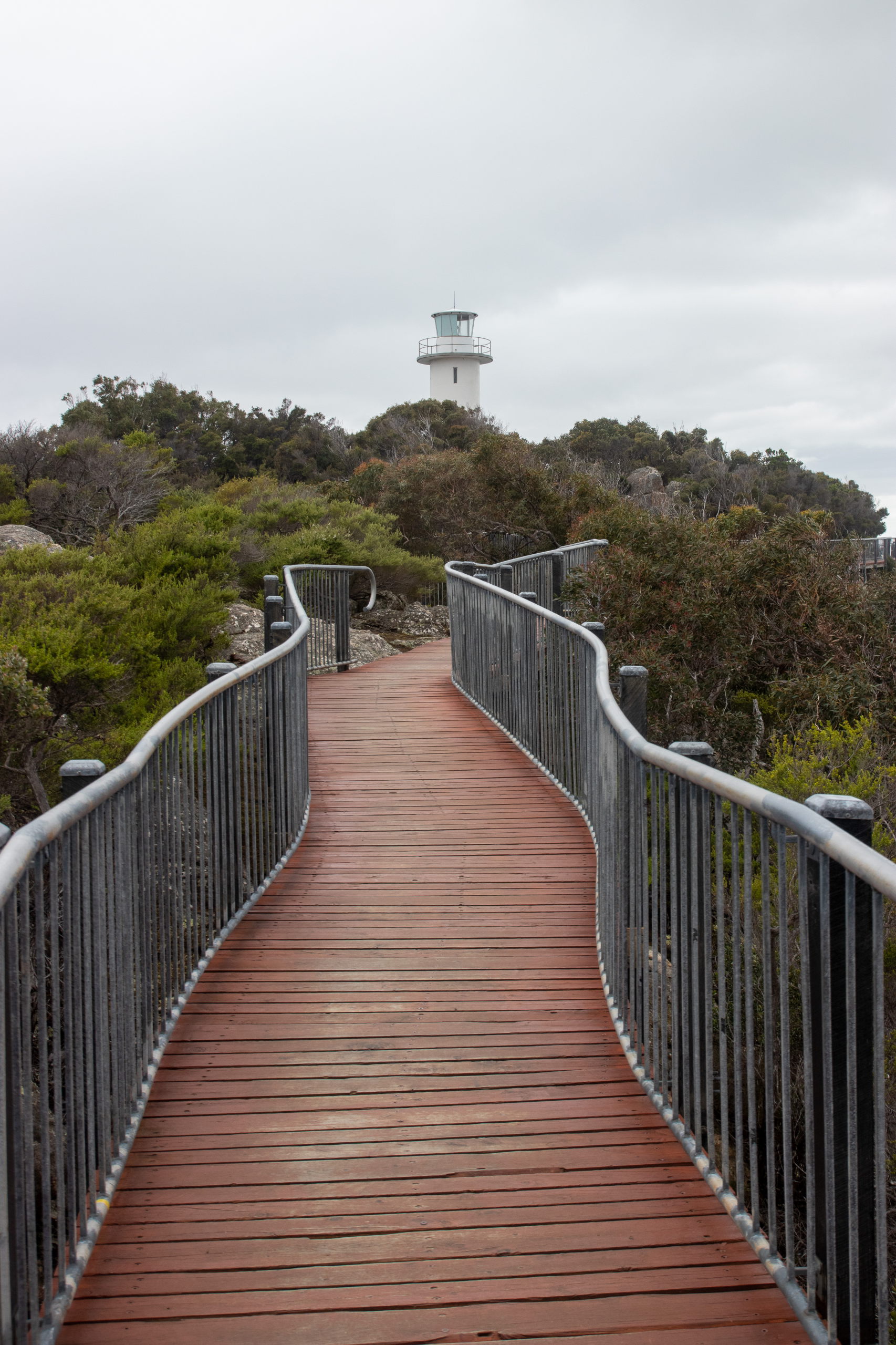Auf einem Schild ist der Cape Tourville Leuchtturm angeschrieben. Das hört sich interessant an. Am Weg hinauf, halte ich aber noch an der Sleepy Bay. Beim Leuchtturm angekommen, beginnt es wieder zu regnen und eine steife Brise weht mir um die Nase.