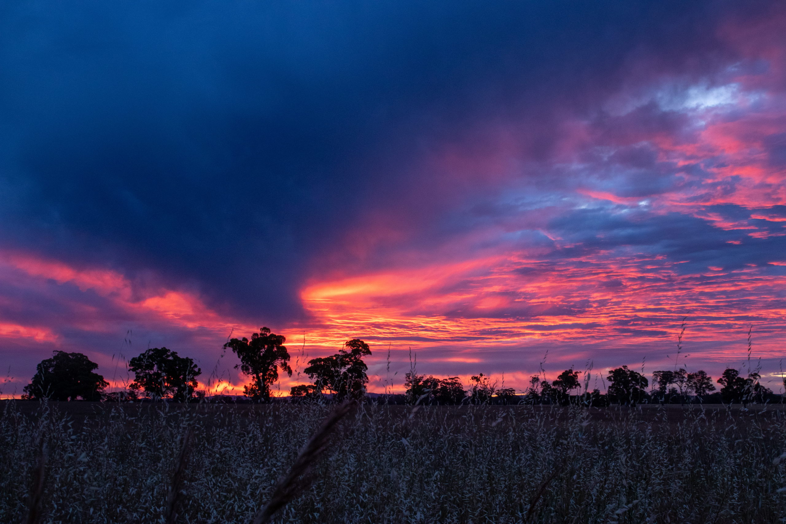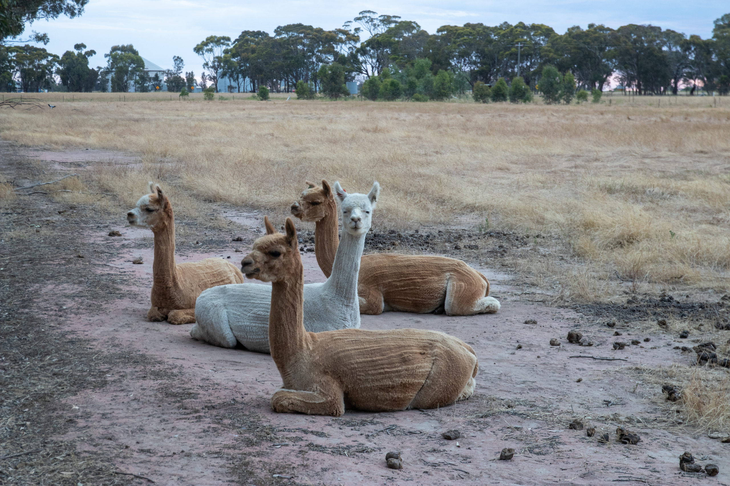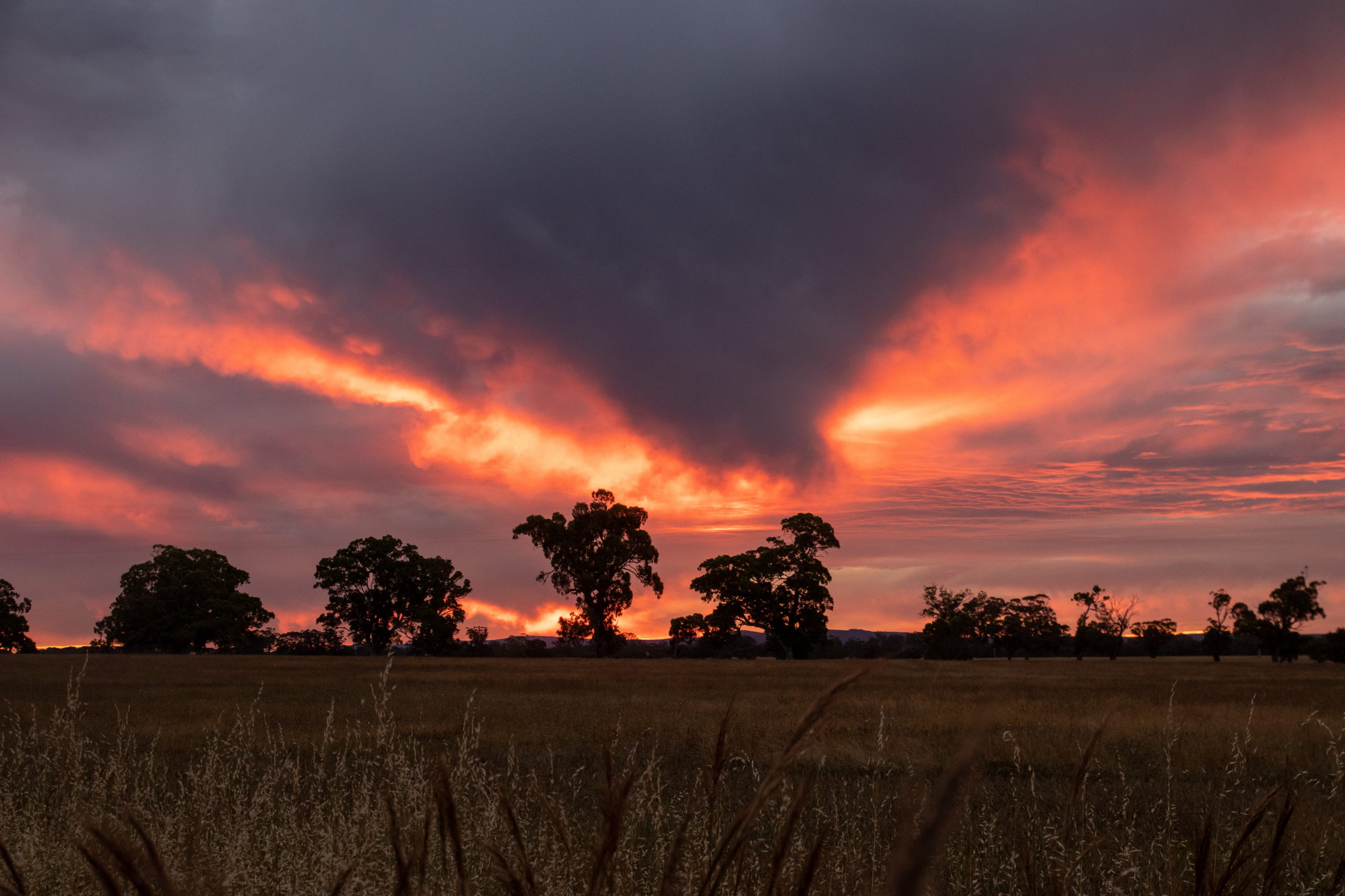 Am Weg in die Nähe des Grampians National Park sehe ich frisch geschorene Alpakas, die mich neugierig ansehen. Mit Fell wäre es ihnen hier sicher viel zu heiß. Ein Stück weiter sieht es nach einem vielversprechenden Sonnenuntergang aus, weshalb ich mich etwas neben der Straße platziere. Und tatsächlich sieht der Himmel nach einer Weile aus, als stünde er in Flammen. Wahnsinn. Ein paar Kilometer weiter biege ich in den Wartook State Forest ab und folge einem kaum sichtbaren Weg zu einer Lichtung, meinem heutigen Schlafplatz, den ich ganz für mich alleine habe.