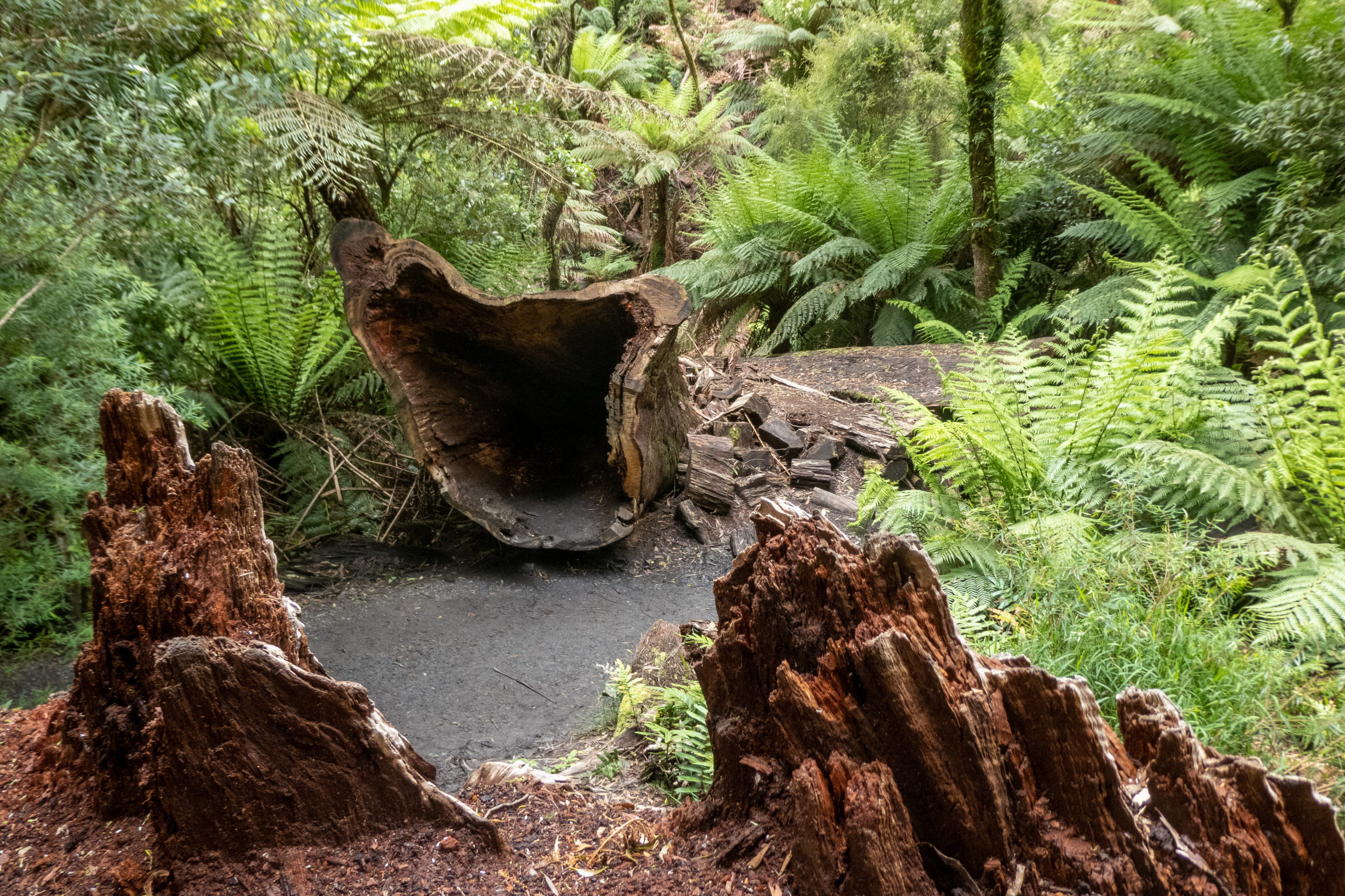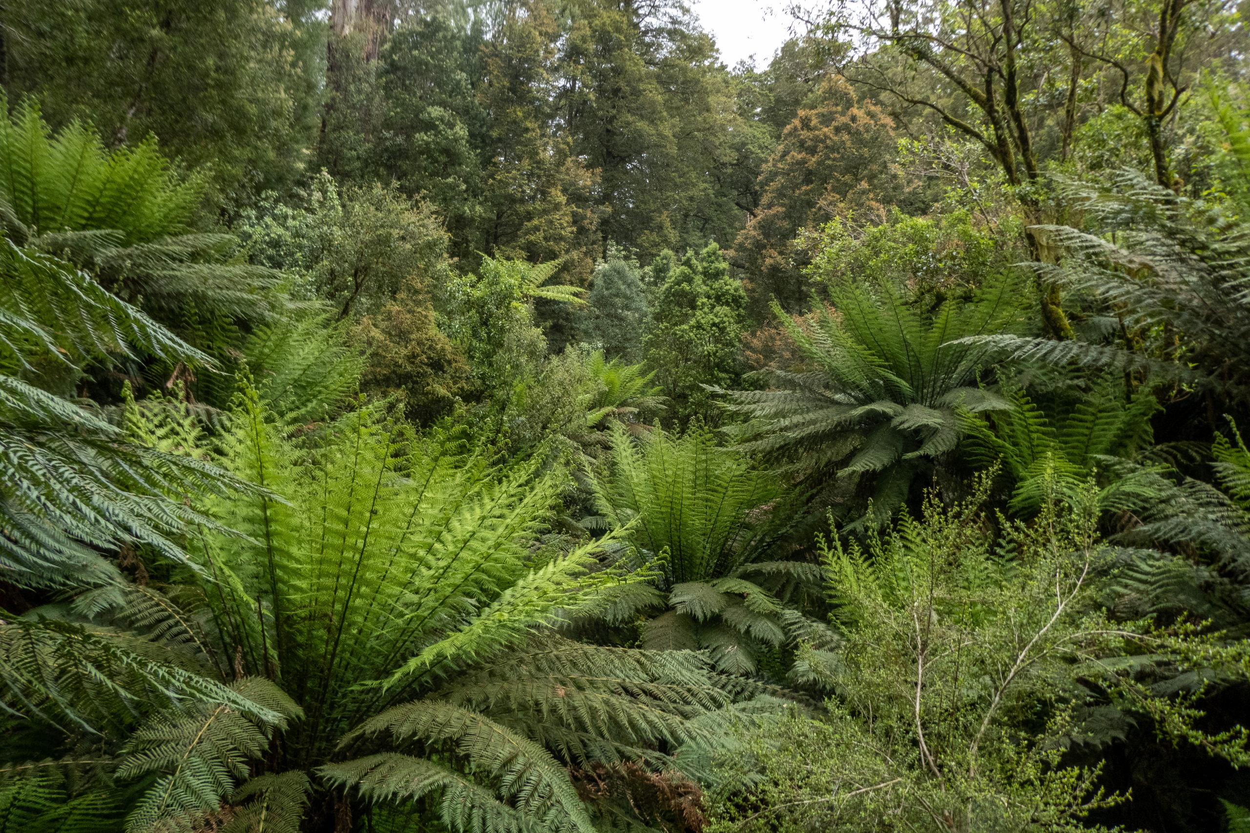 Am weiteren Weg komme ich zum Maits Rest Rainforest Walk. Auf der kurzen Runde ist jede Menge vom imposanten Baumfarn zu sehen. Der Ausflug zum Cape Otway Lighthouse ist leider für’n Hugo, da geschlossen. Man kommt nicht einmal in die Nähe und der Ausblick vom Lookout ist nicht gerade sehenswert. Eigentlich sollten im Wald viele Koalas zu sehen sein, aber die haben vermutlich heute auch frei.